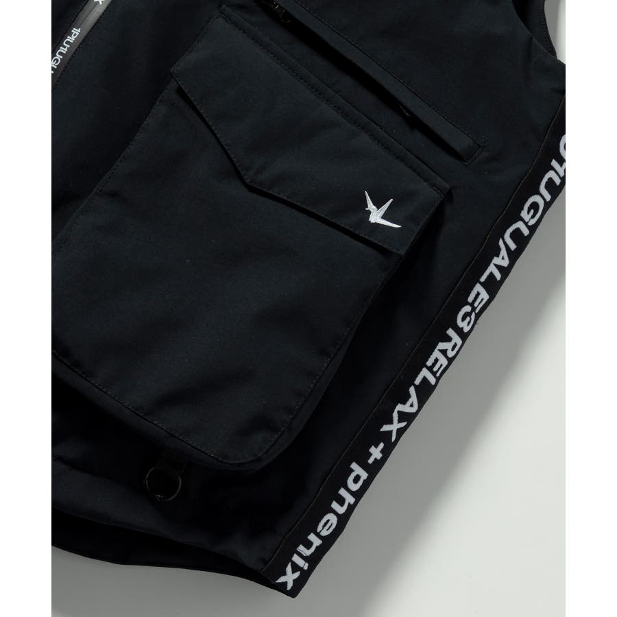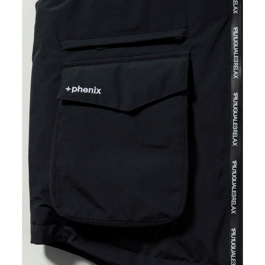 両サイドのポケットにそれぞれ1PIU1GUALE3 RELAXのブランドアイコンである折り鶴と+phenixのロゴを配置。