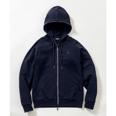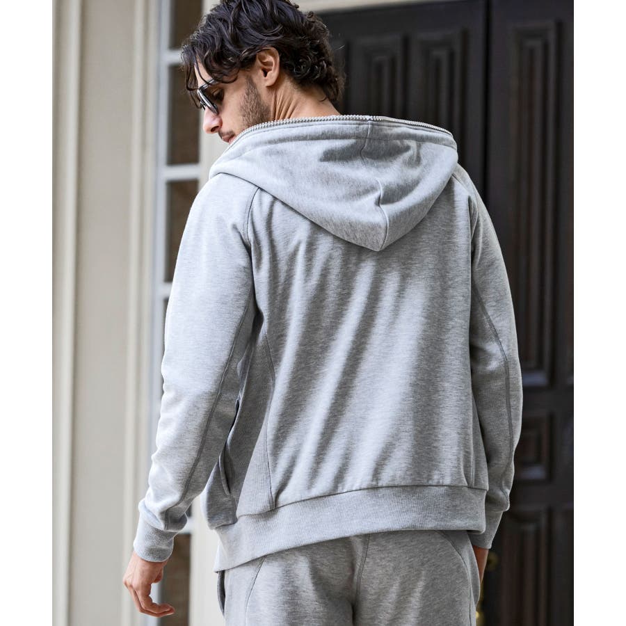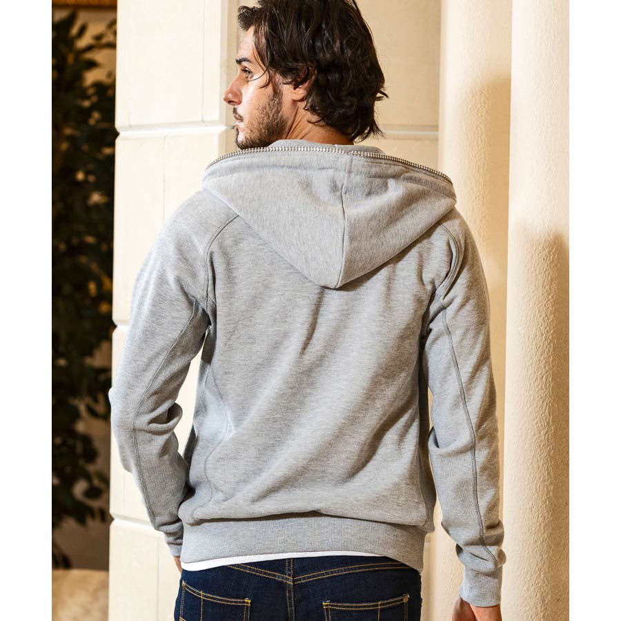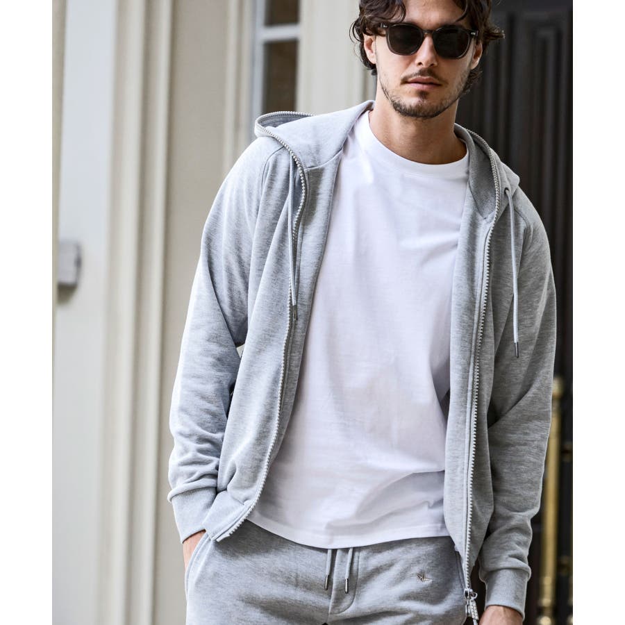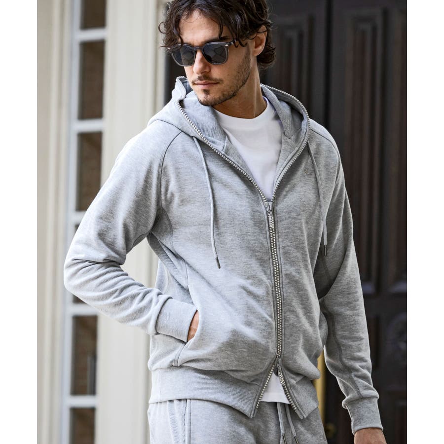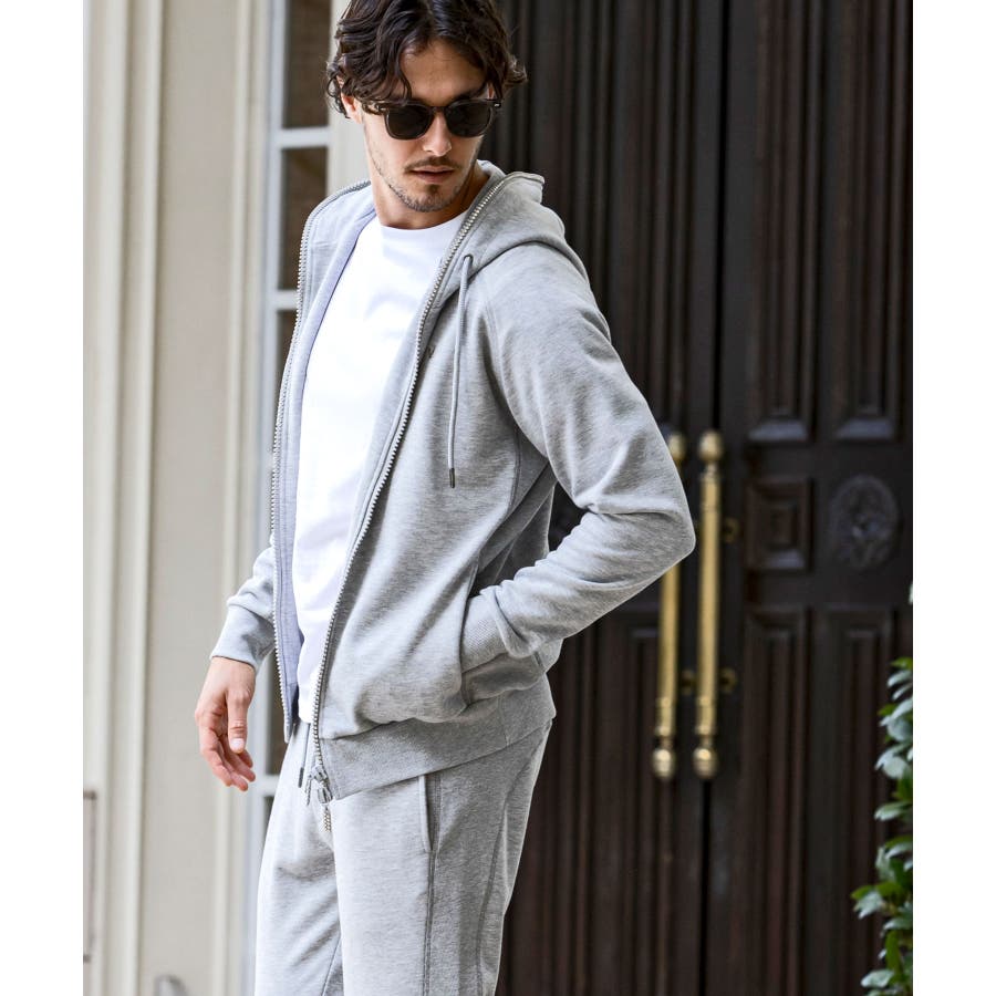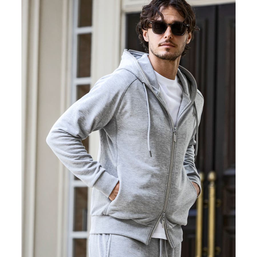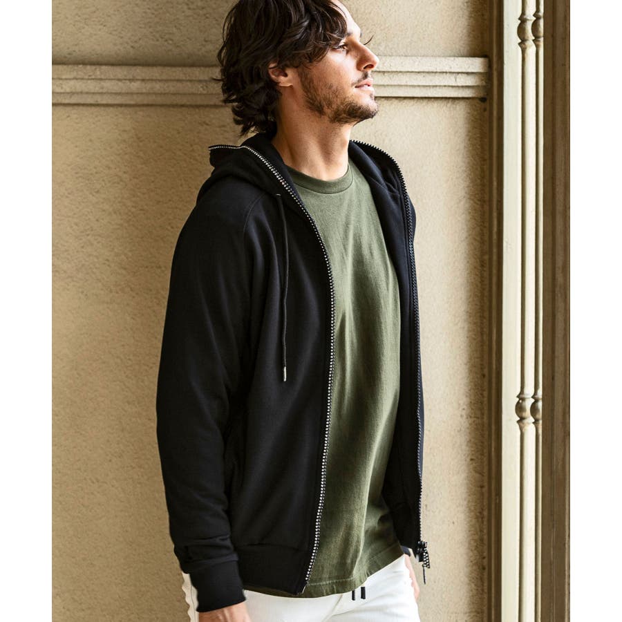 柔らかなスウェット素材で仕立てたジップアップパーカー。