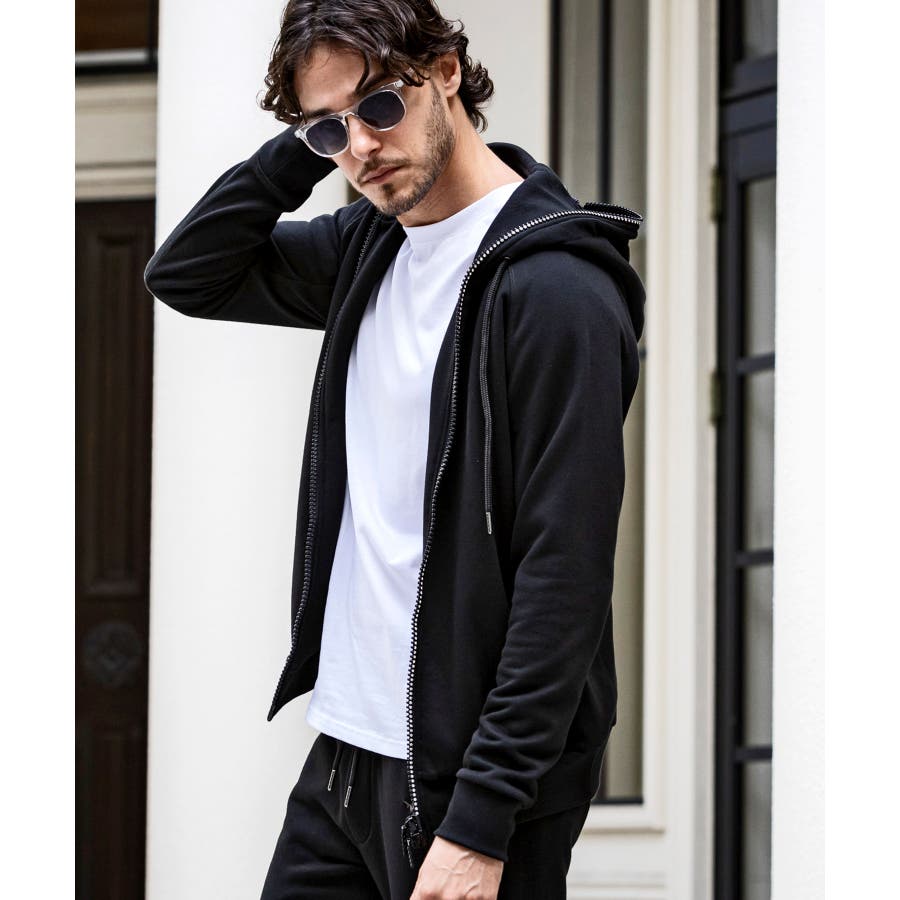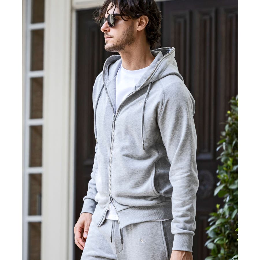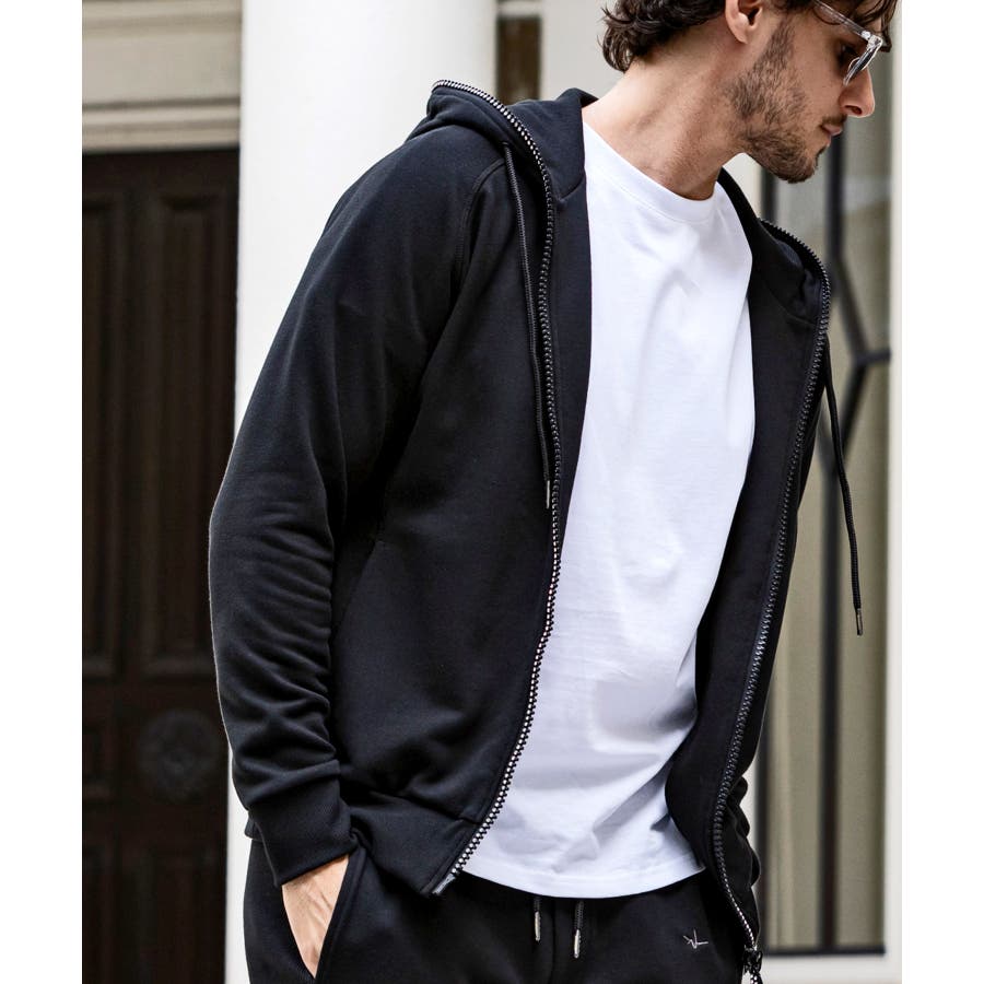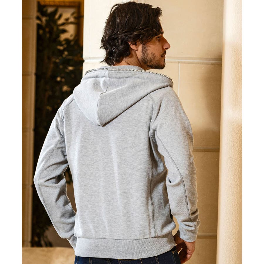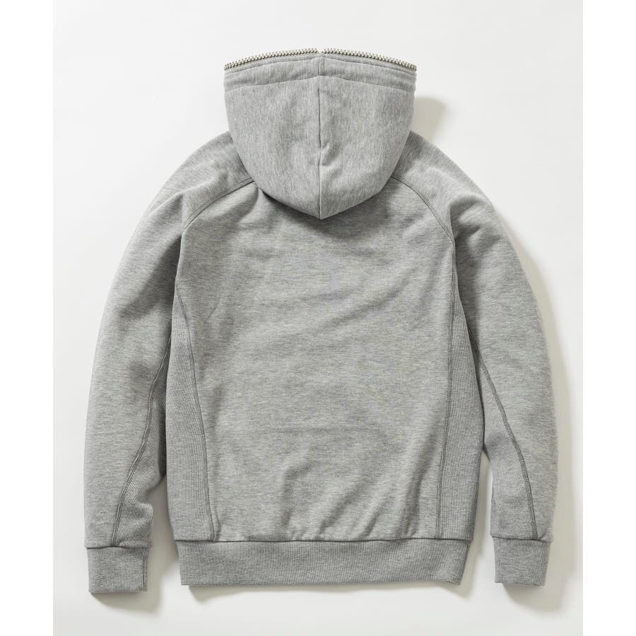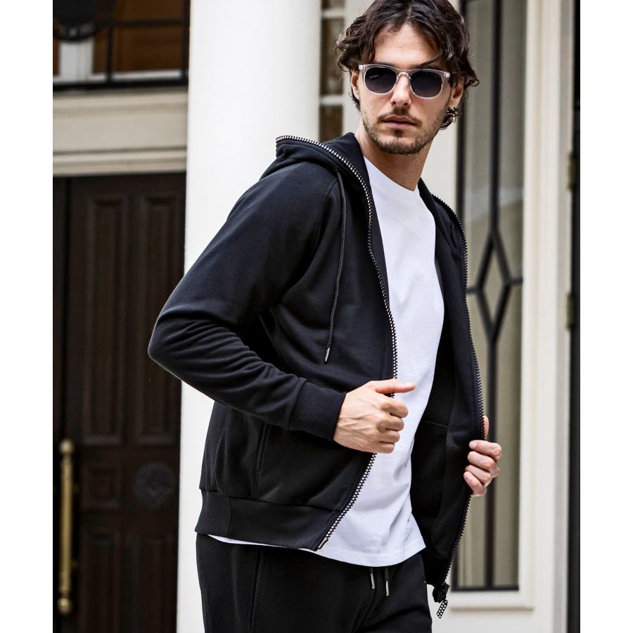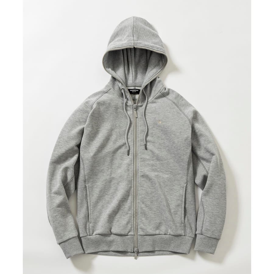 柔らかなスウェット素材で仕立てたジップアップパーカー。