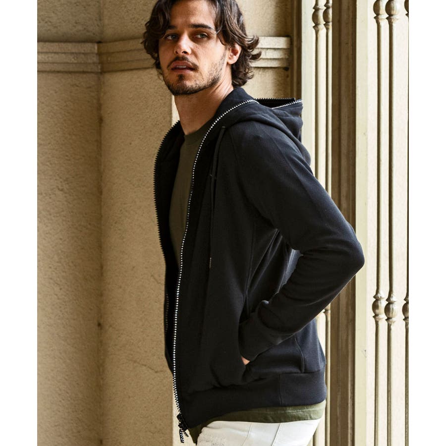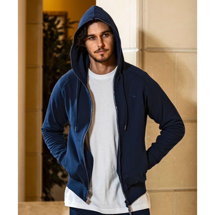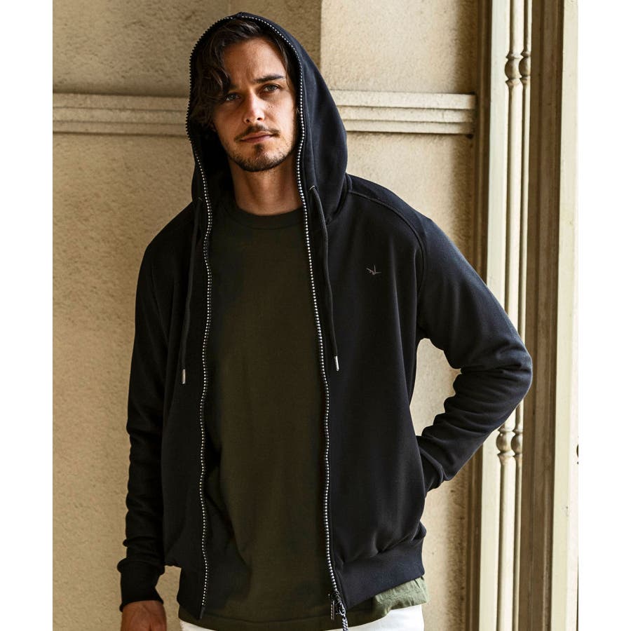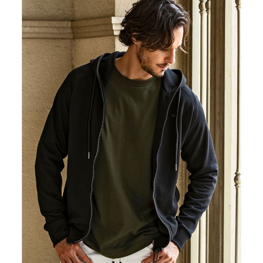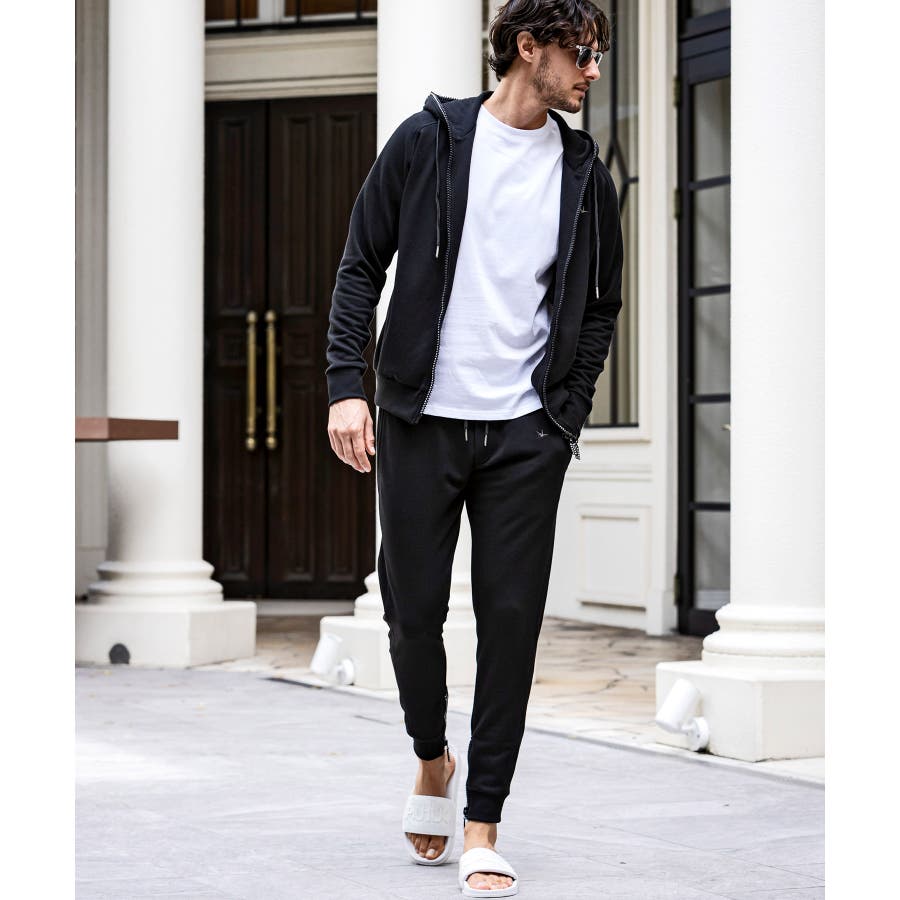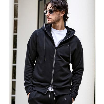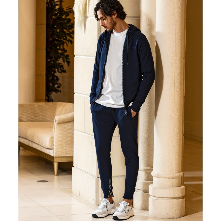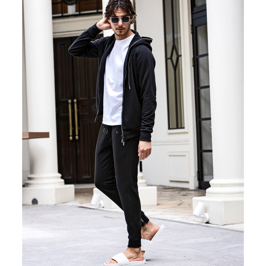 柔らかなスウェット素材で仕立てたジップアップパーカー。