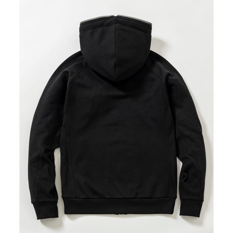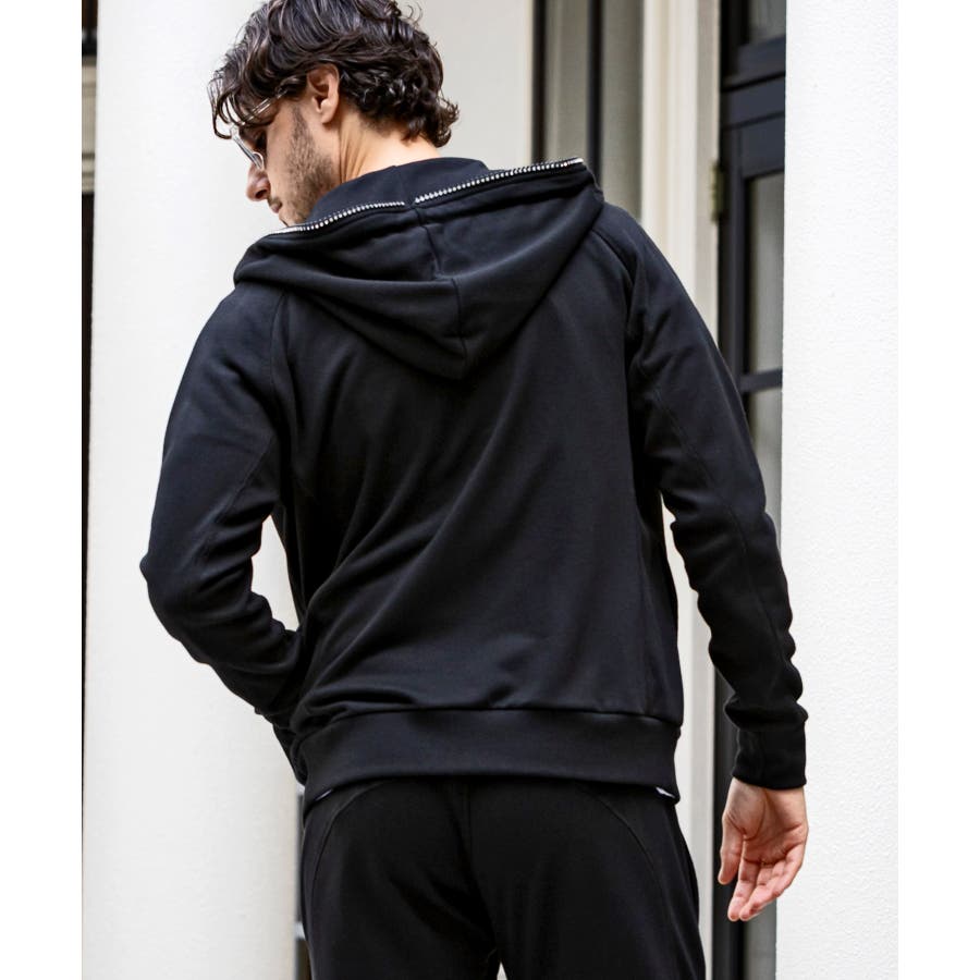 フロントからフードまでぐるりと囲んだファスナーにはラインストーンを配置。