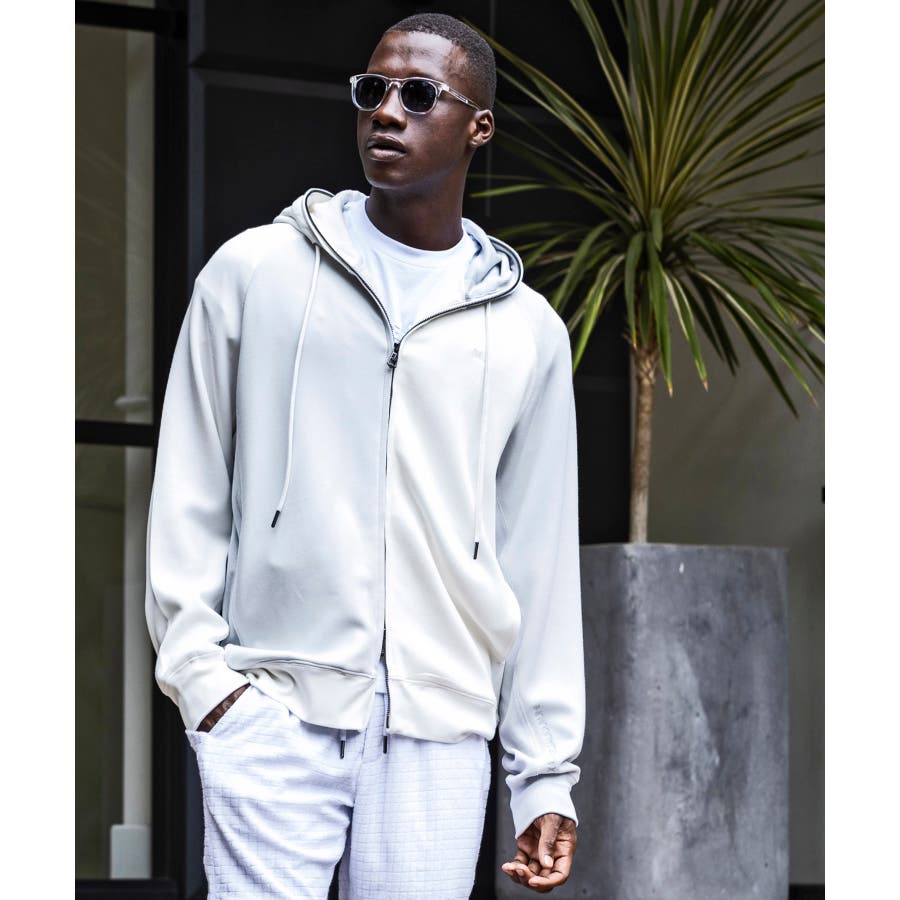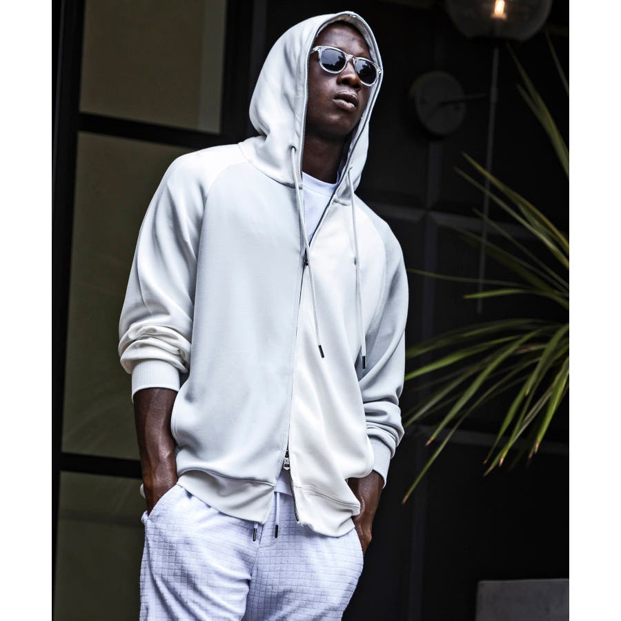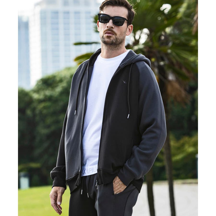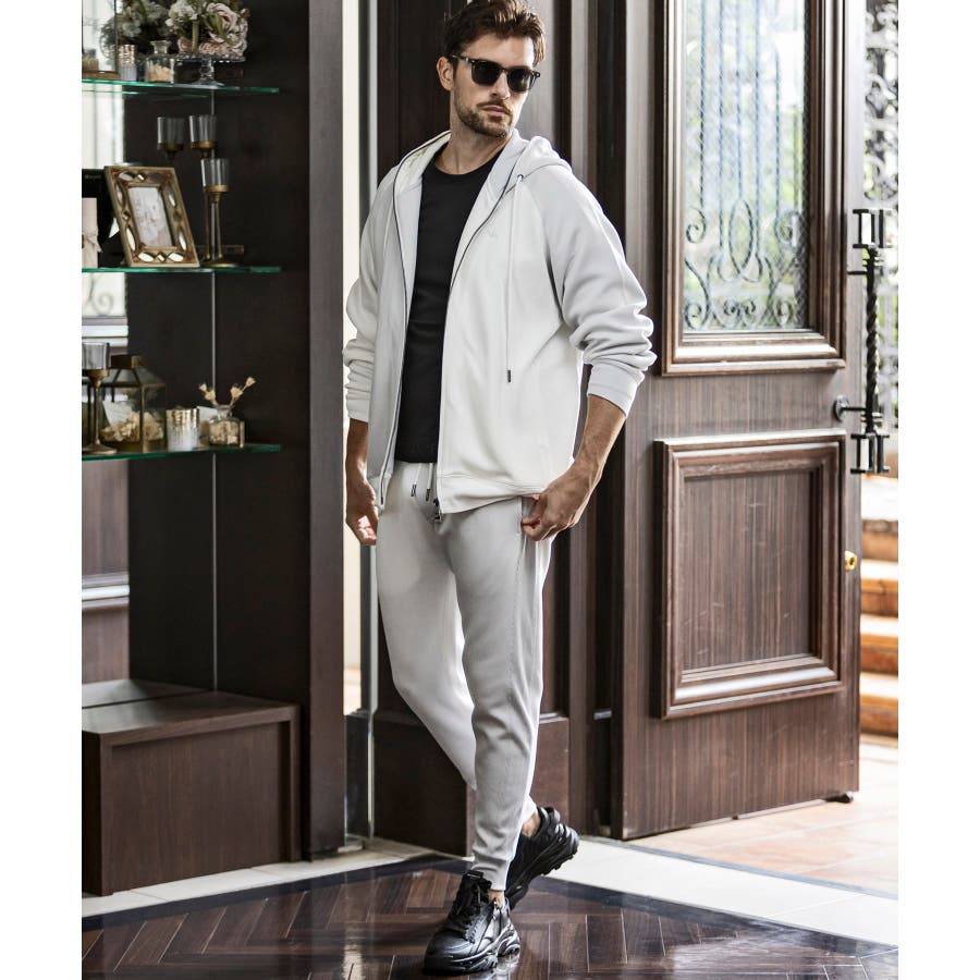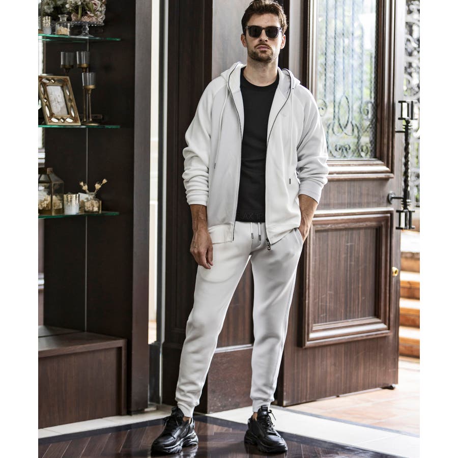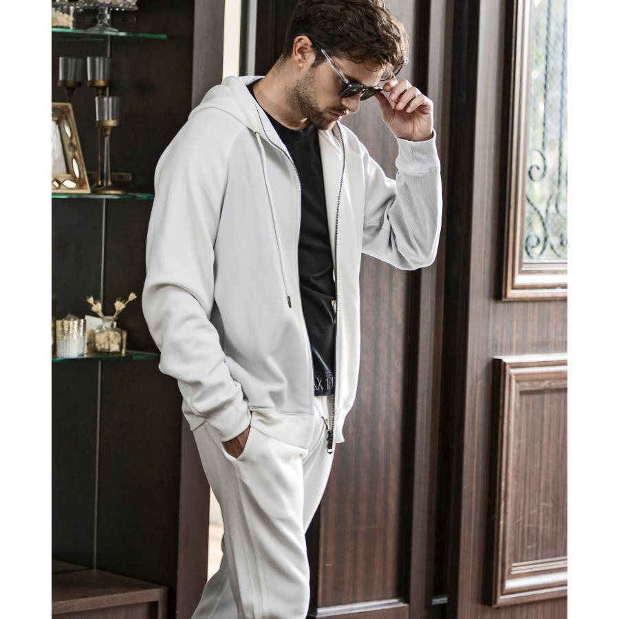 1piu代表格のパーカーセットアップもラグジュアリーなセットアップに仕上げています。