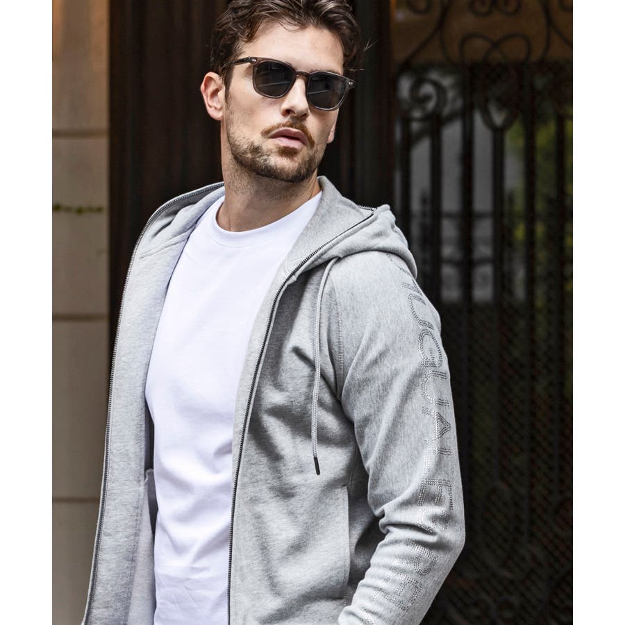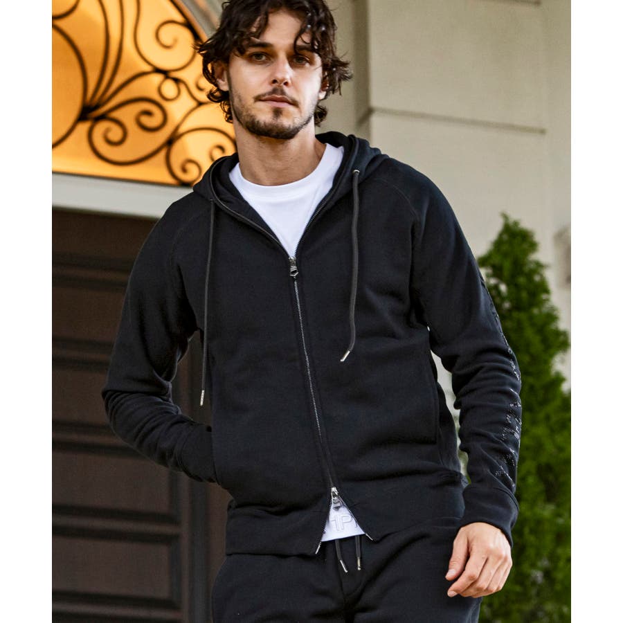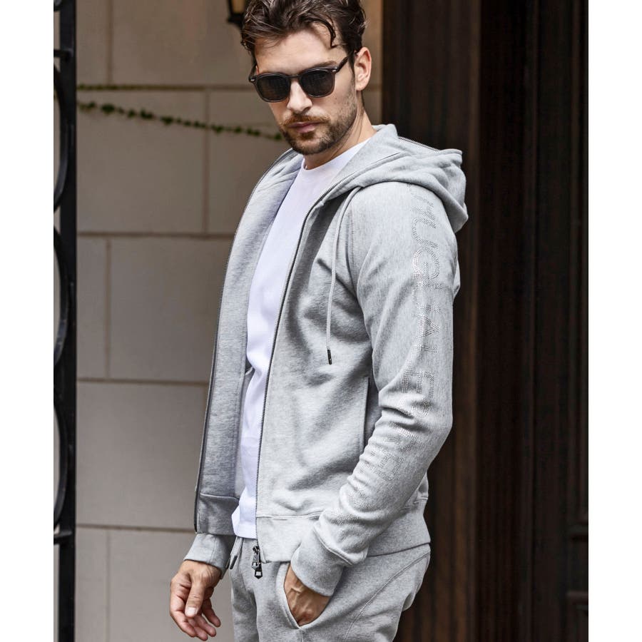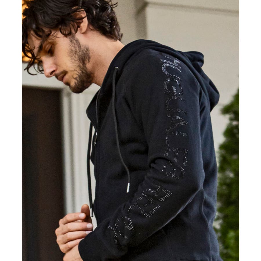 左袖に大胆かつ曲線的にラインストーンロゴを配置しており、上品なきらめきを纏っています。