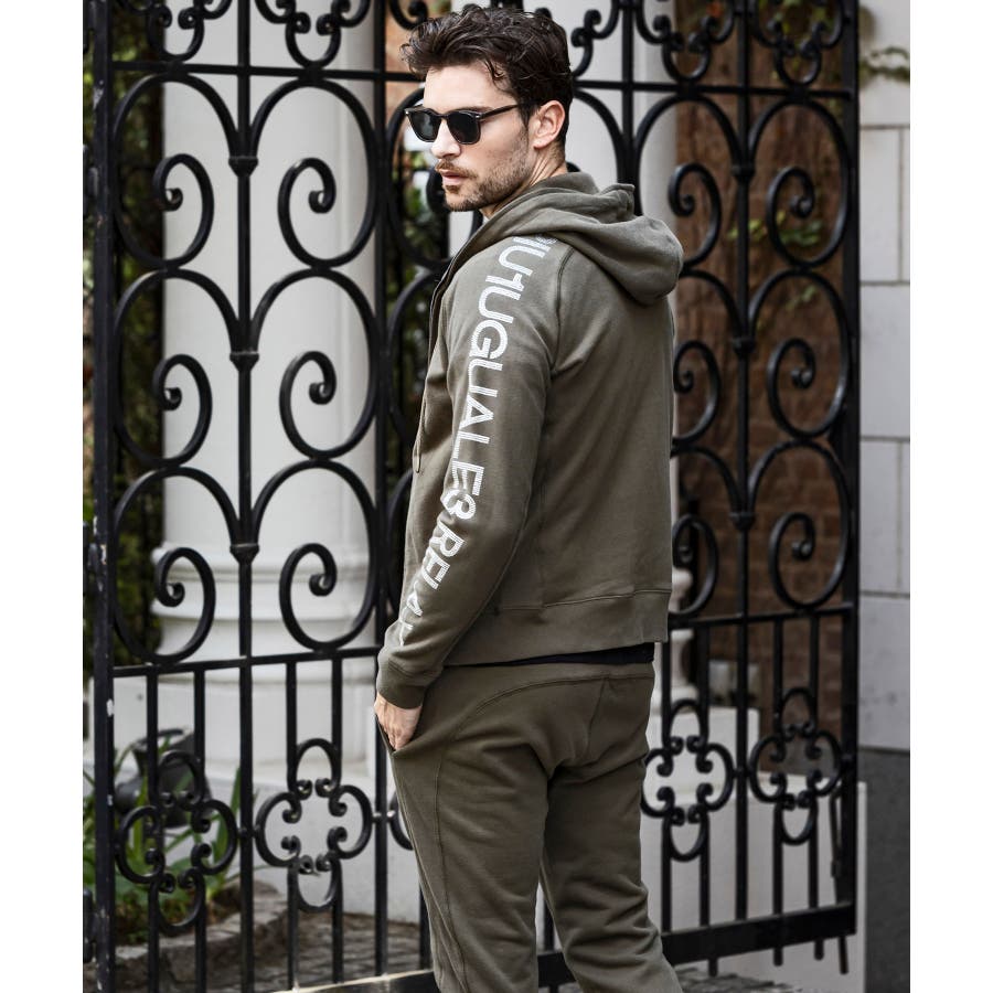 1PIU1UGUALE3 RELAX定番のヘビー裏毛を使用したフーディーの登場です。