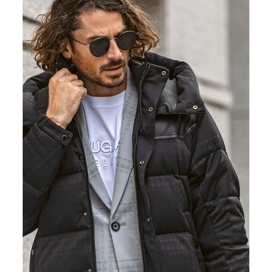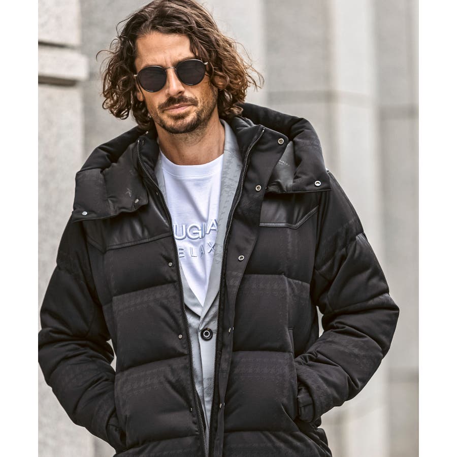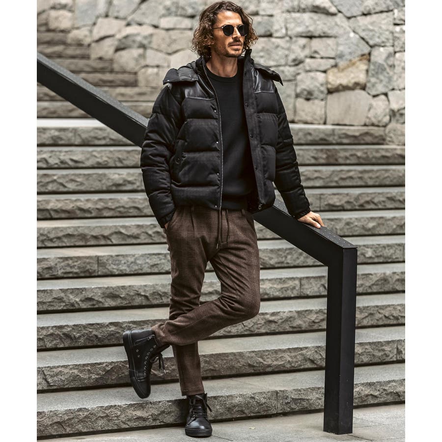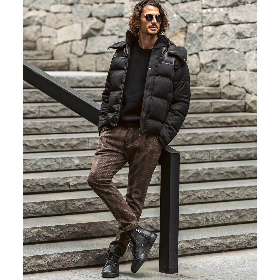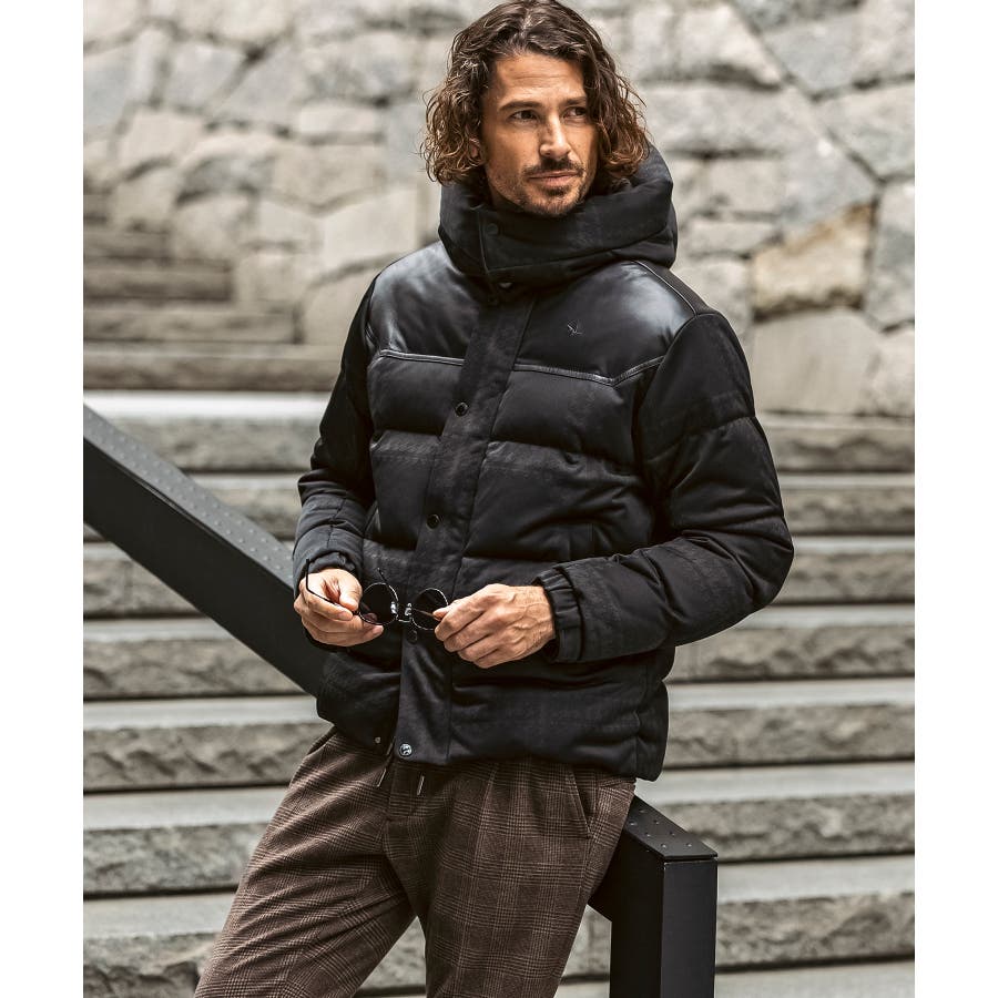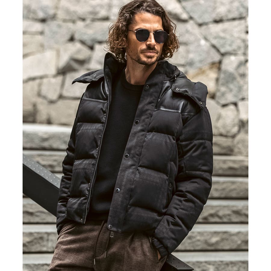 着脱可能なフードにより、取り外してスタンドネックとしての着こなしも。