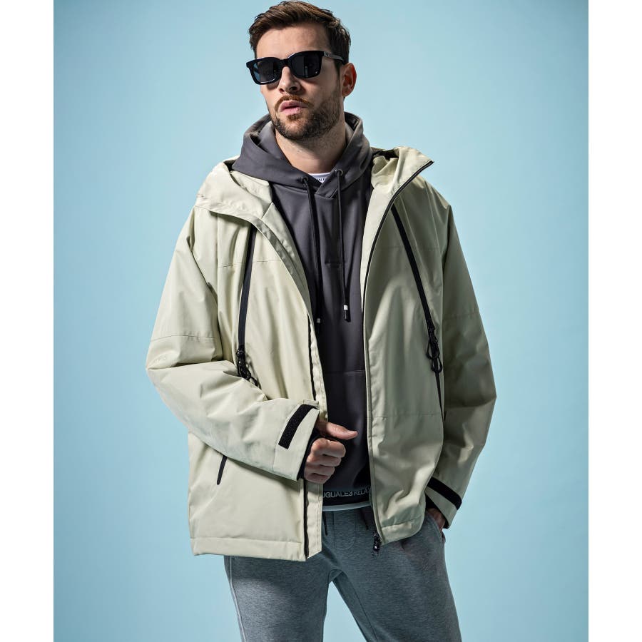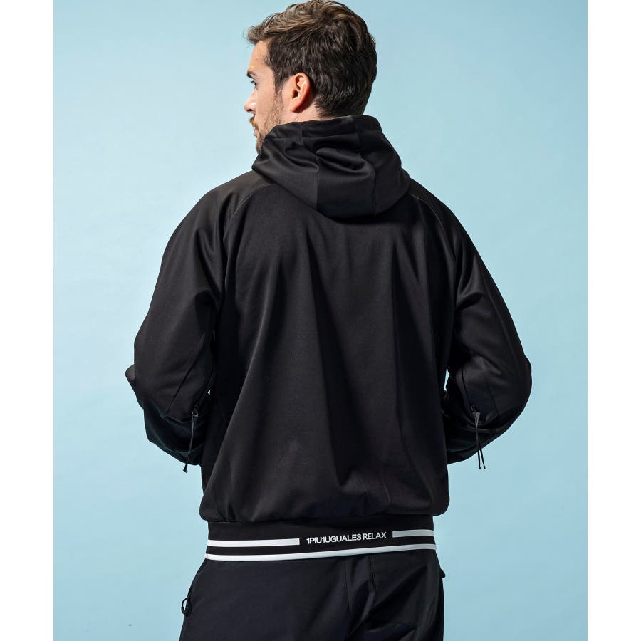 両脇にはファスナー付きベンチレーションを搭載し、衣服内の蒸れを軽減可能。