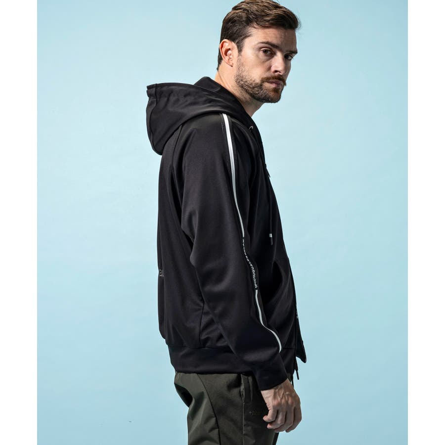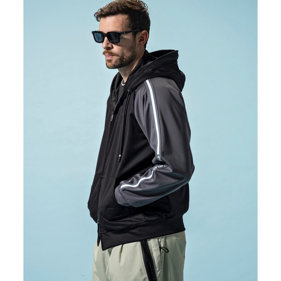 両脇にはファスナー付きベンチレーションを搭載し、衣服内の蒸れを軽減可能。