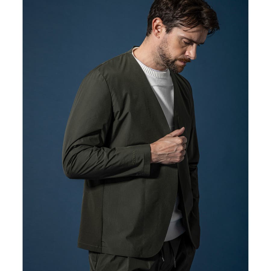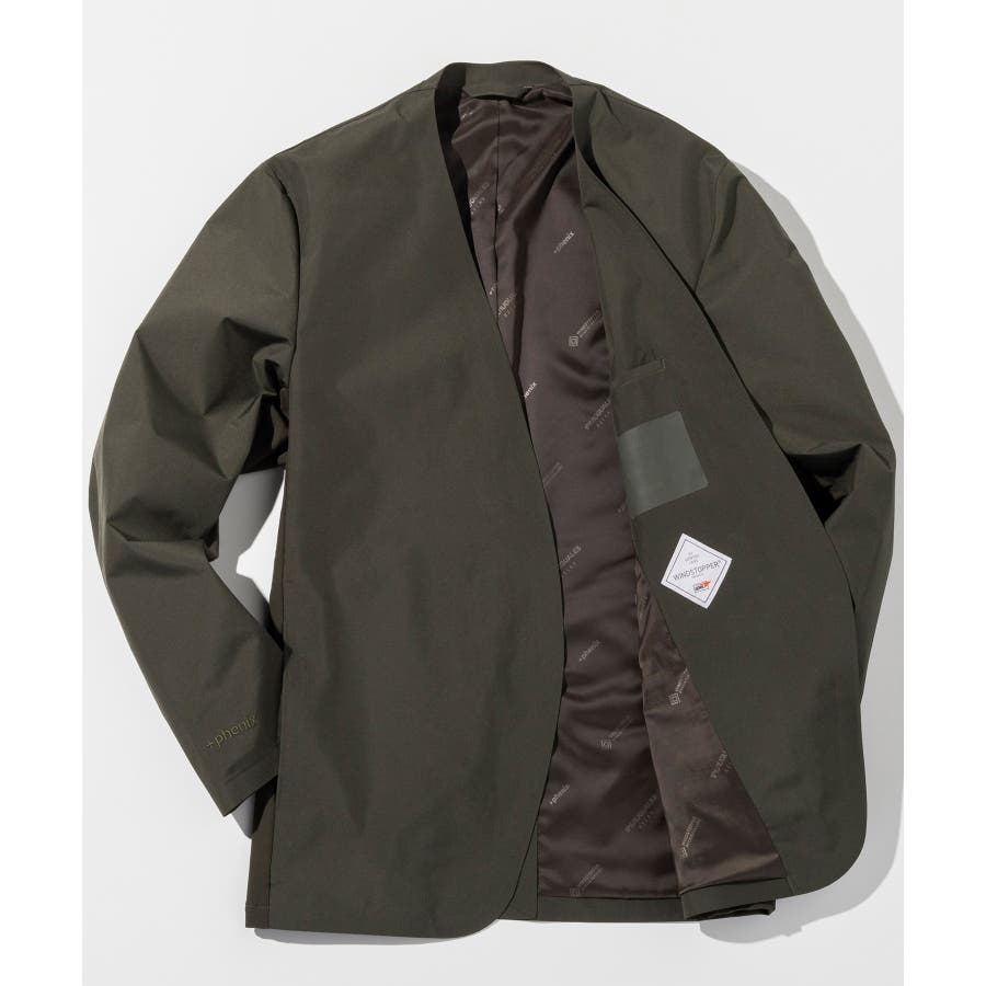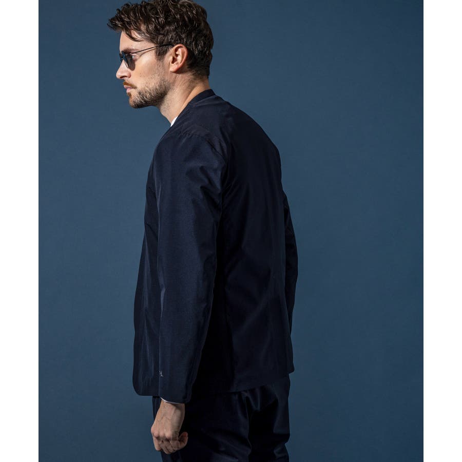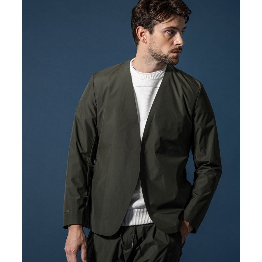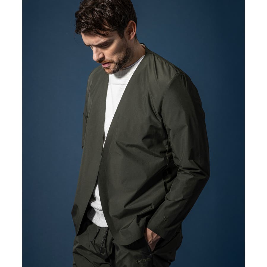 防風・透湿・撥水性に優れた〈WINDSTOPPER PRODUCTS BY GORE-TEX LABS〉を採用したノーカラージャケット。