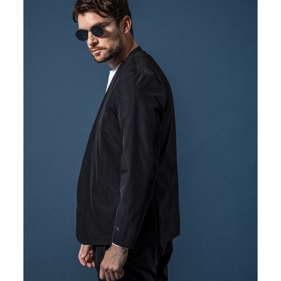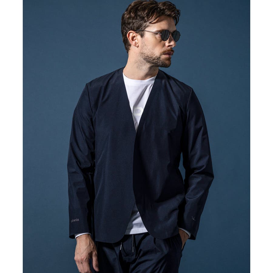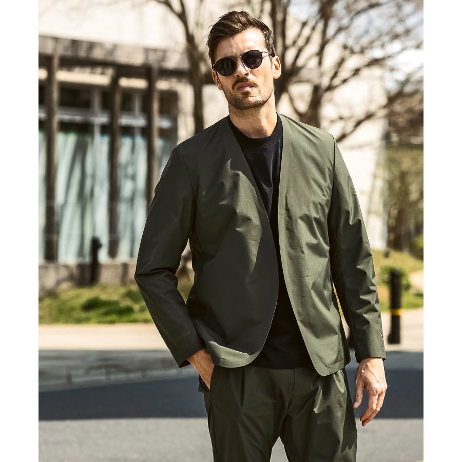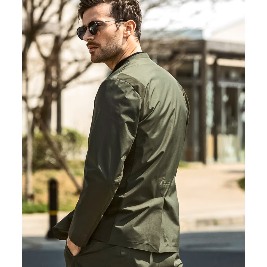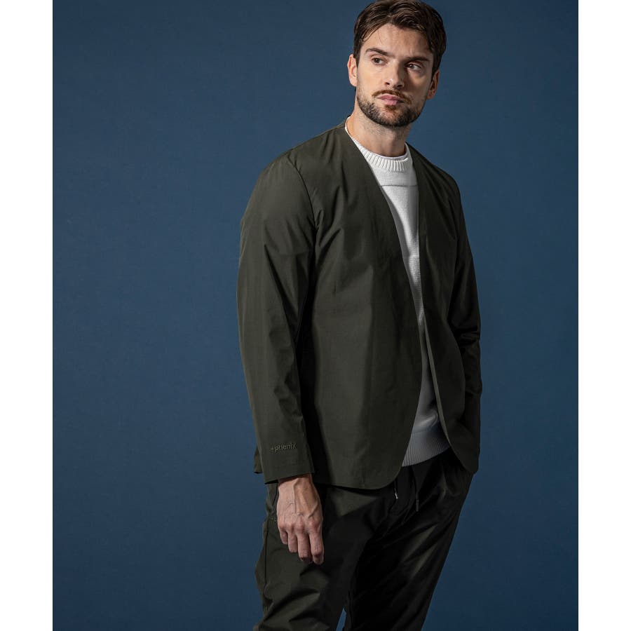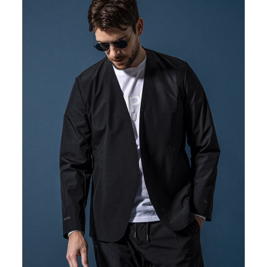 防風・透湿・撥水性に優れた〈WINDSTOPPER PRODUCTS BY GORE-TEX LABS〉を採用したノーカラージャケット。
