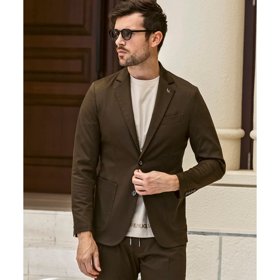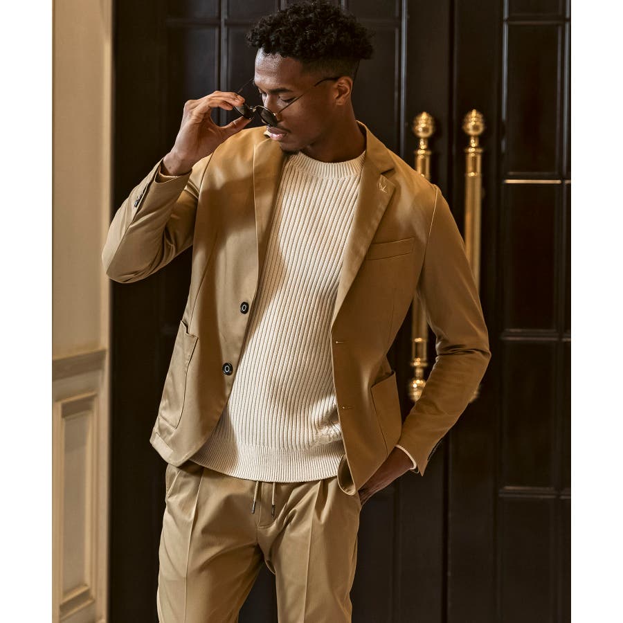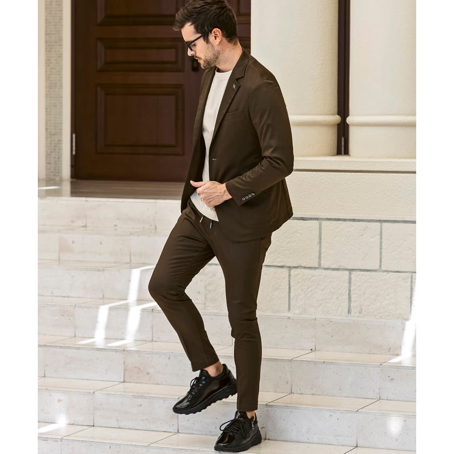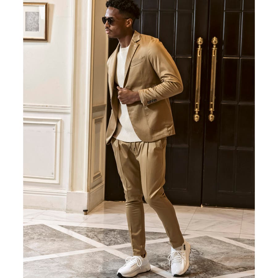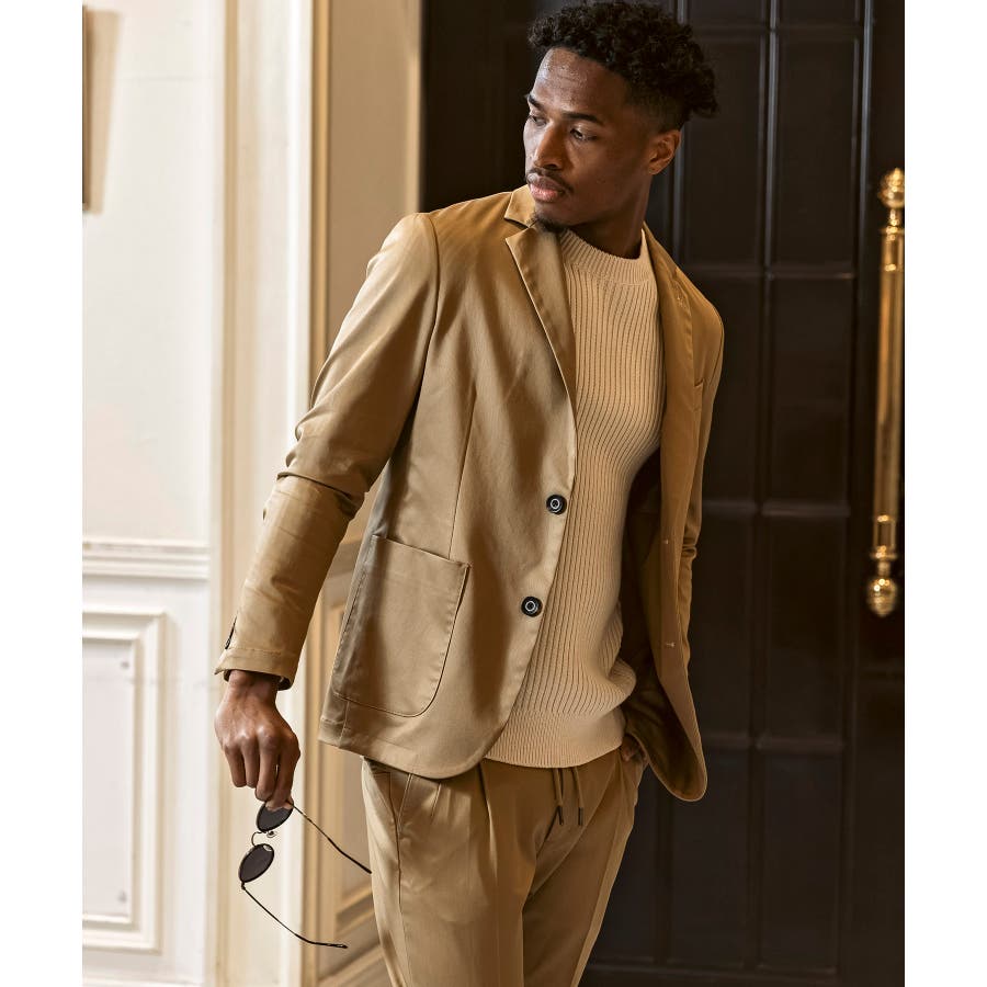 同素材のスラックス(usb-25149)と合わせれば、統一感のあるモダンなセットアップスタイルに。