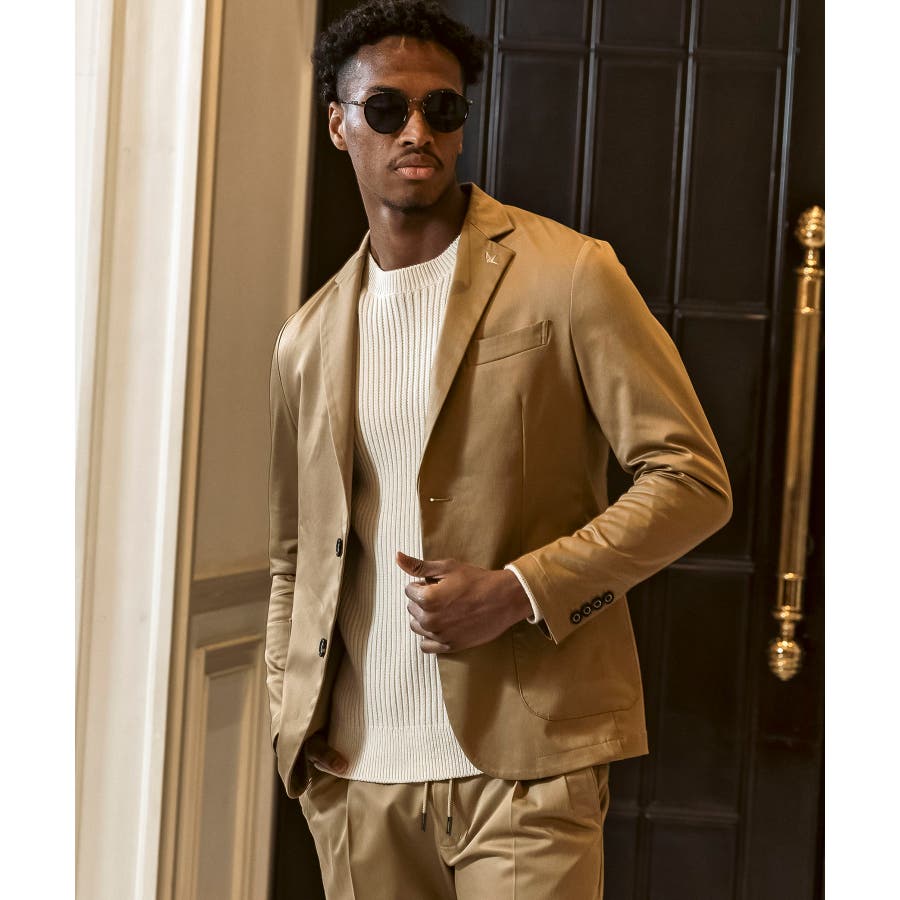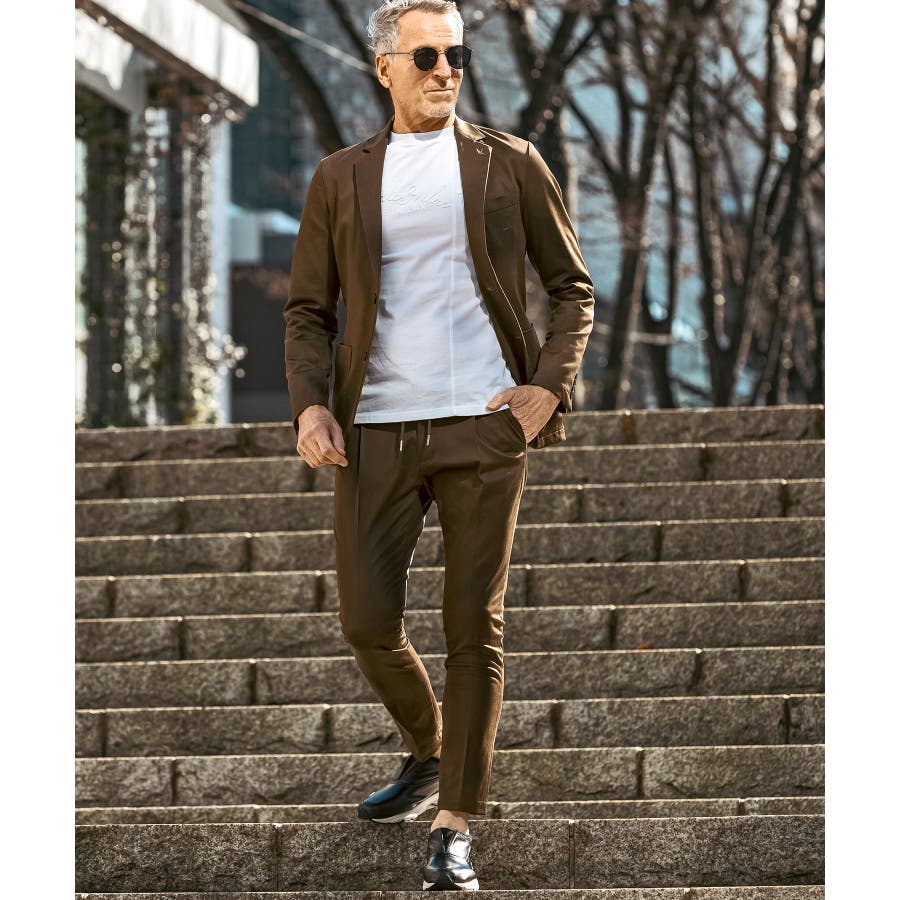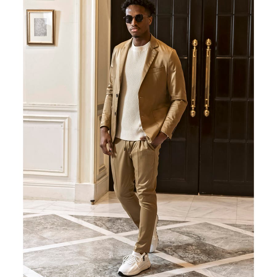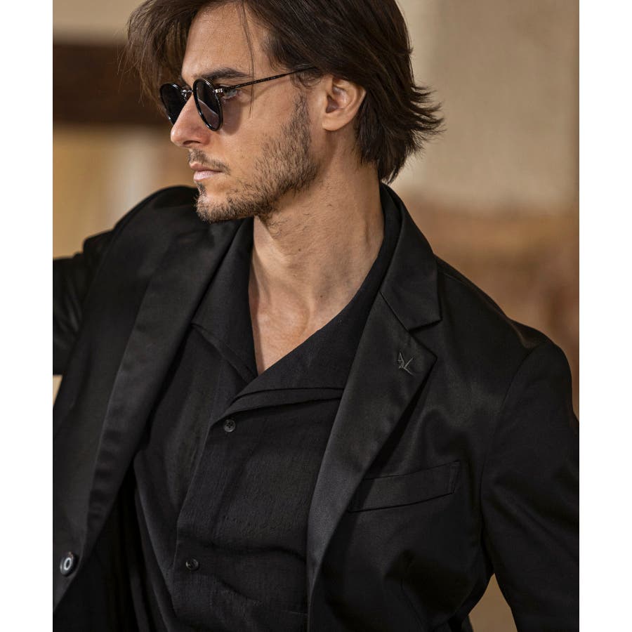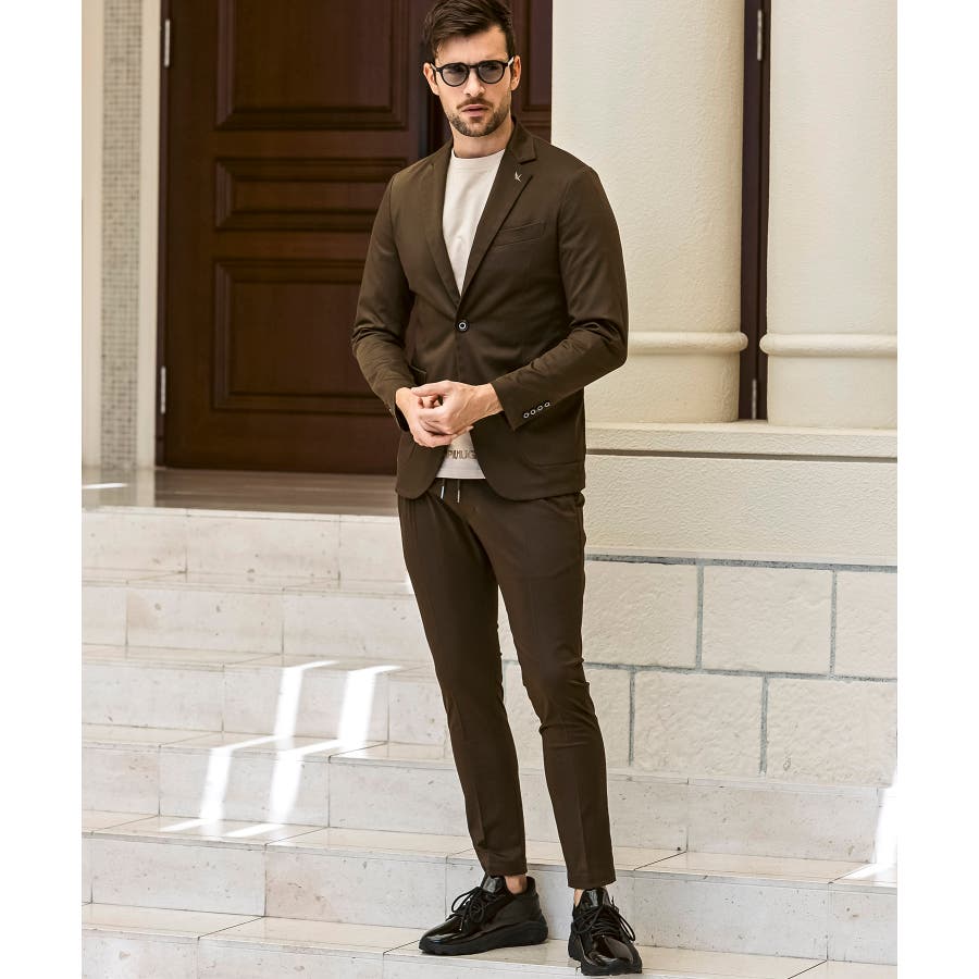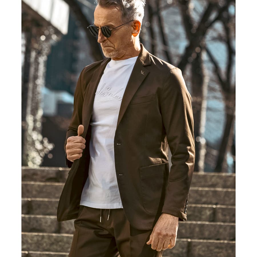 同素材のスラックス(usb-25149)と合わせれば、統一感のあるモダンなセットアップスタイルに。