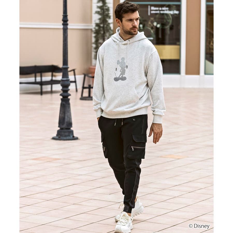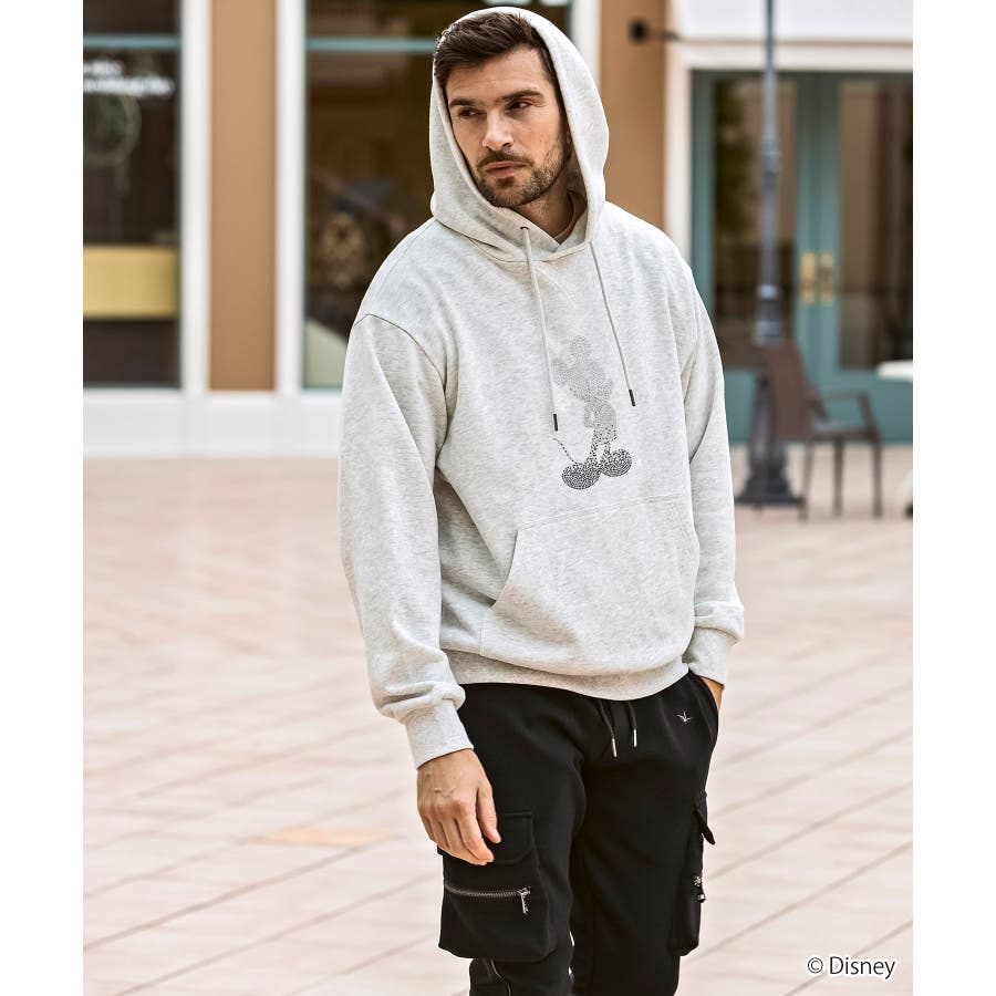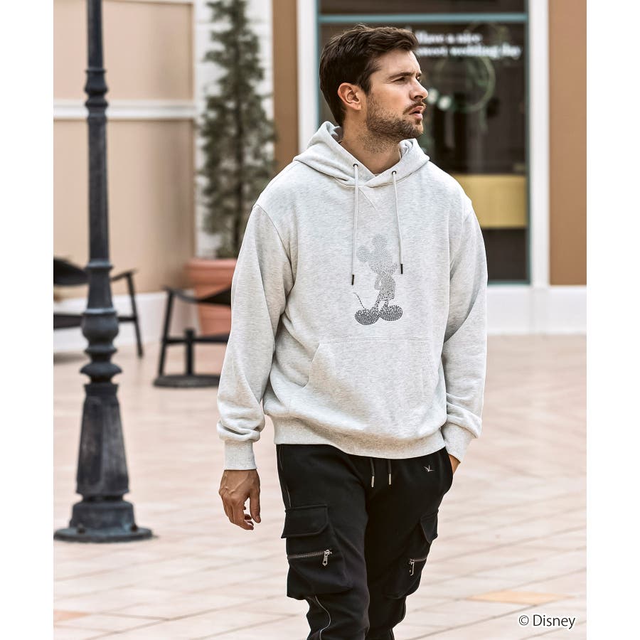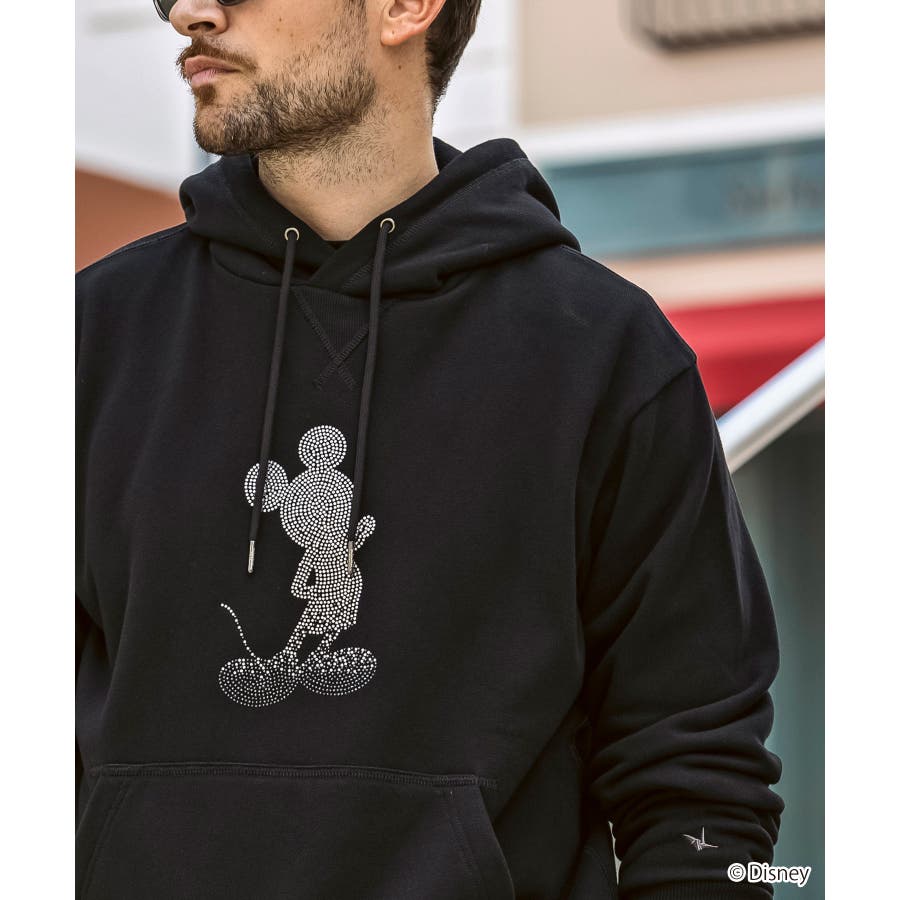 世界中で愛されるディズニーの人気キャラクター、ミッキーマウスをあしらったプルオーバーフーディー。