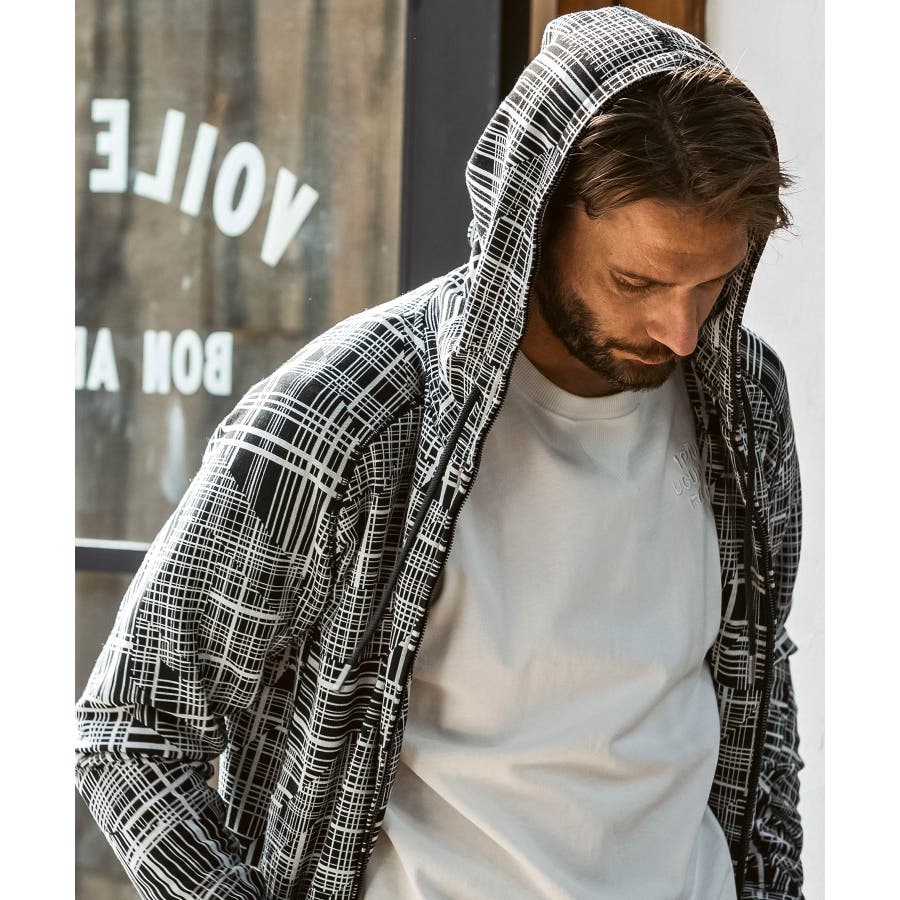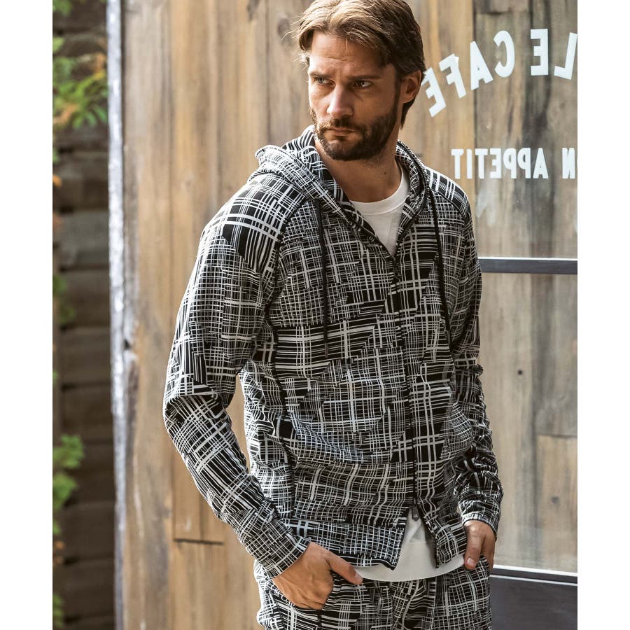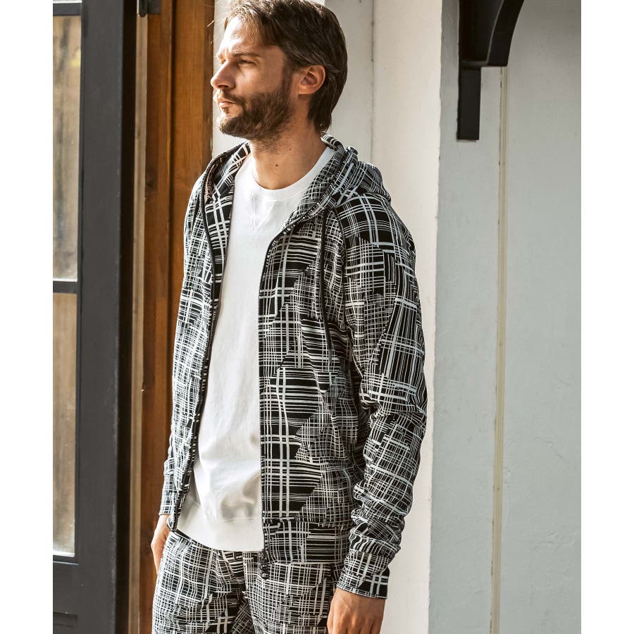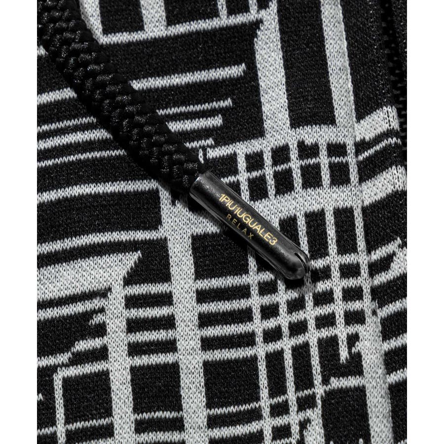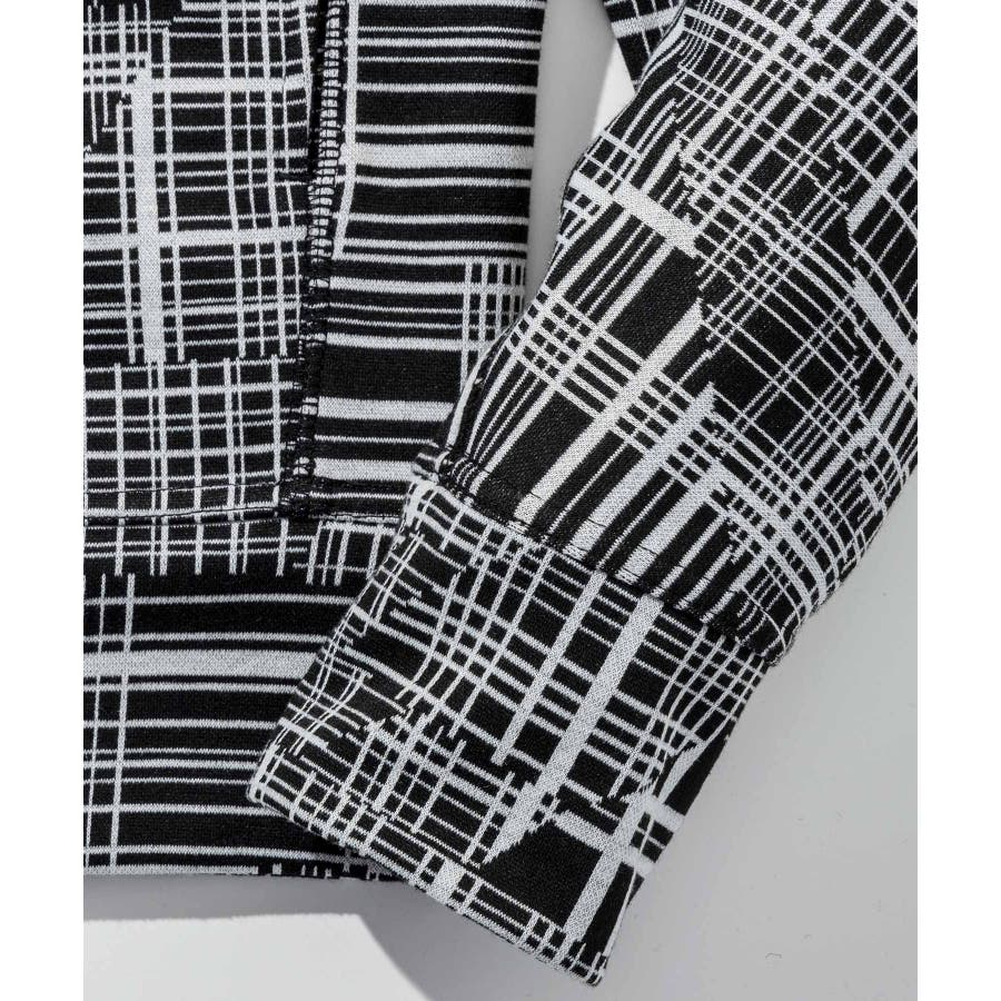 幾何学柄をジャガードで表現したニュアンス豊かなジップアップフーディー。