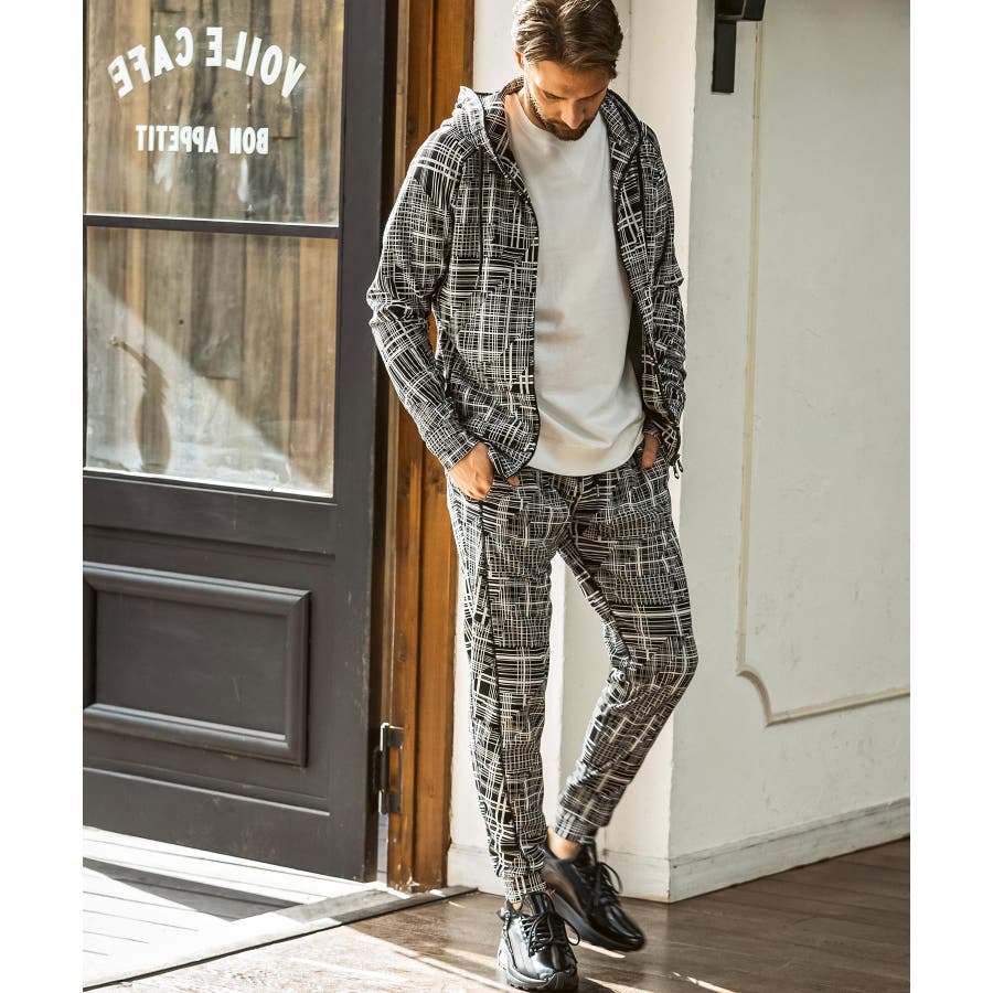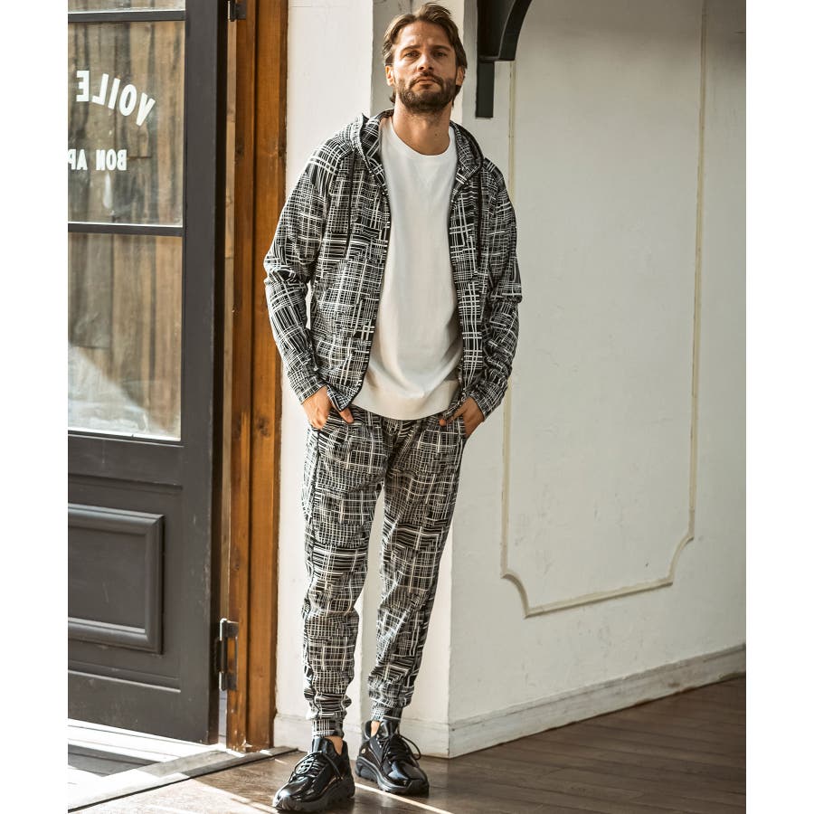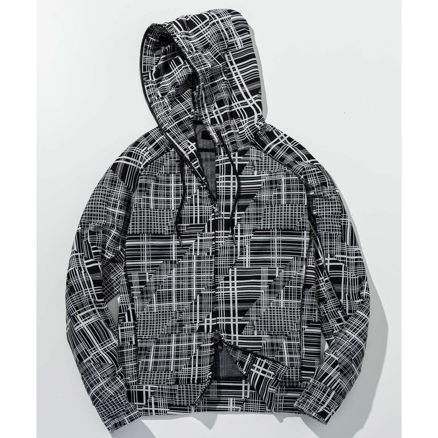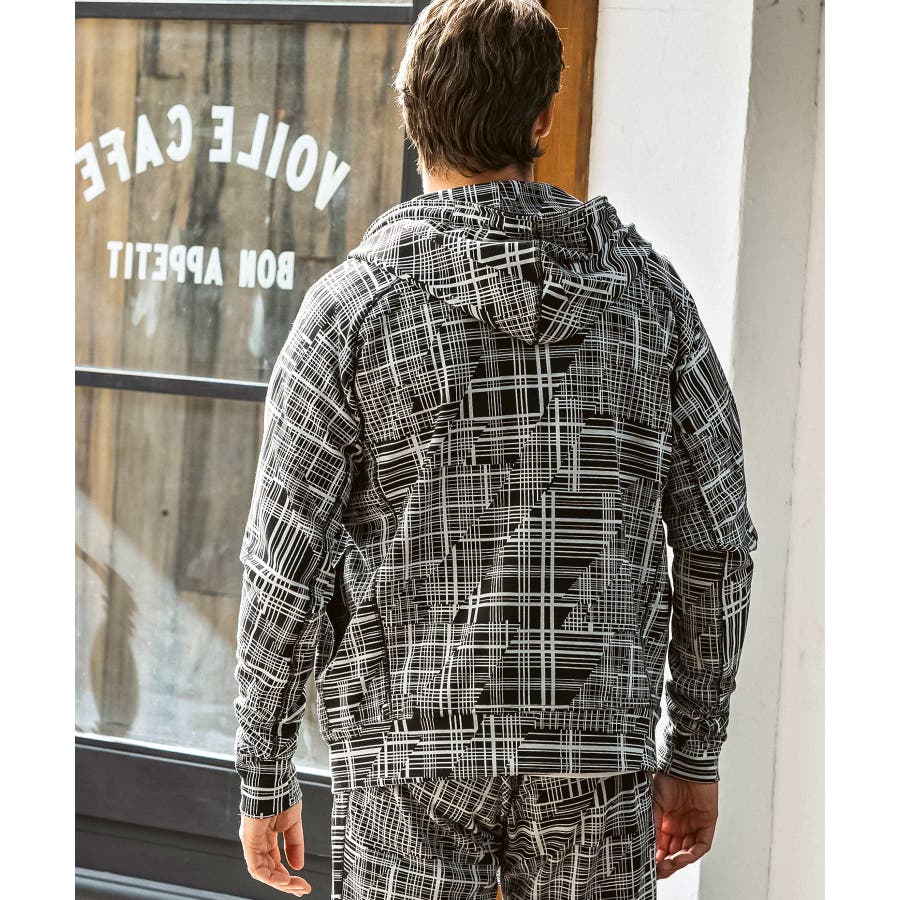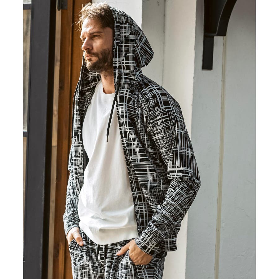幾何学柄をジャガードで表現したニュアンス豊かなジップアップフーディー。