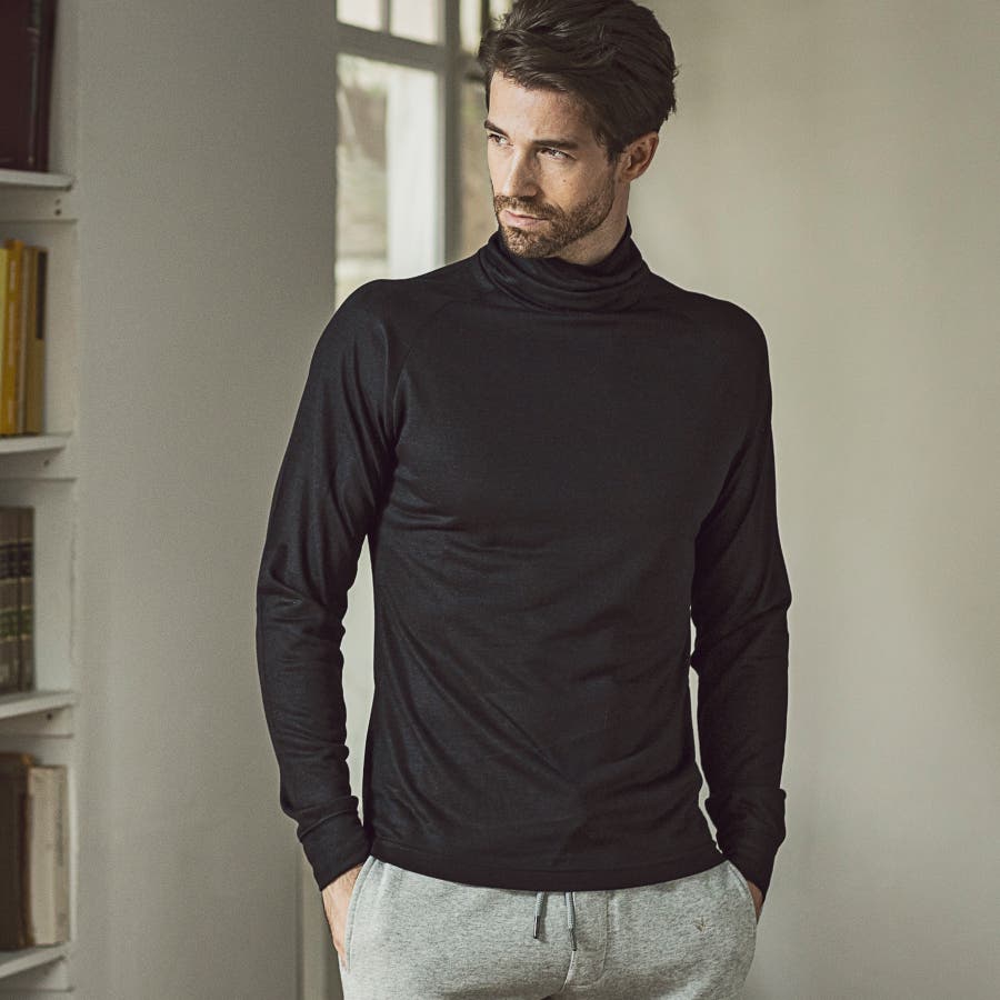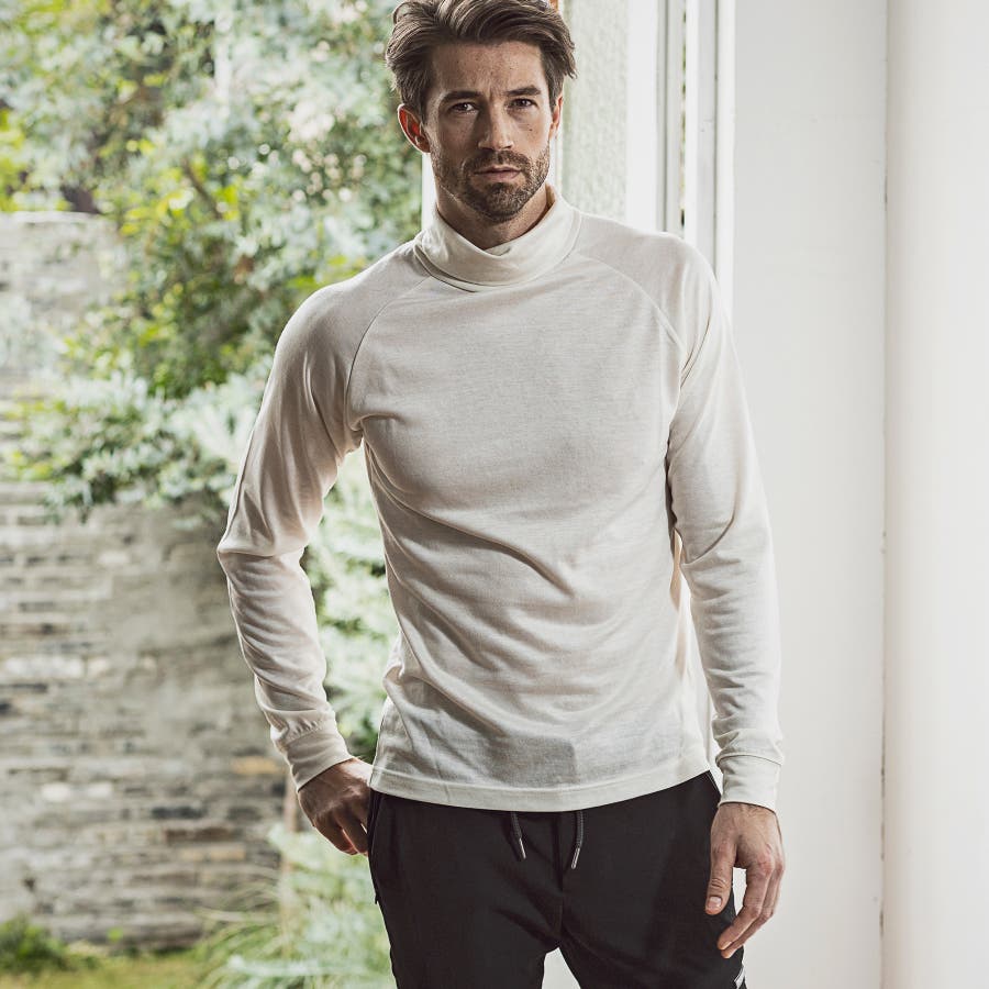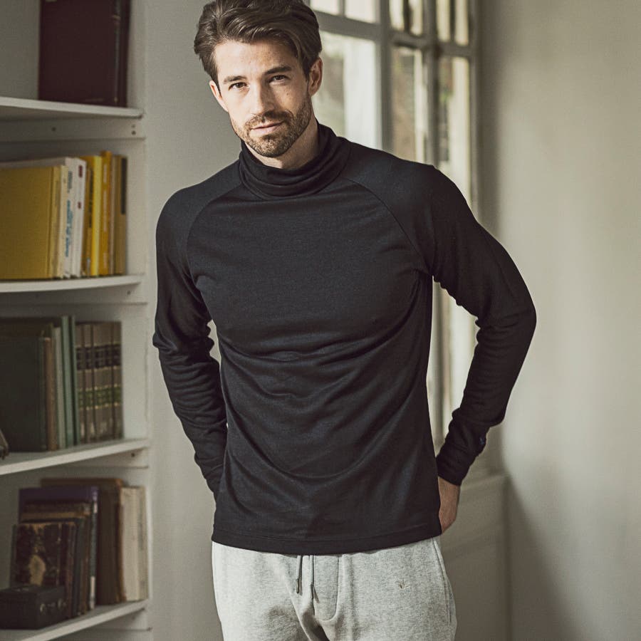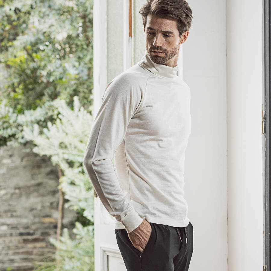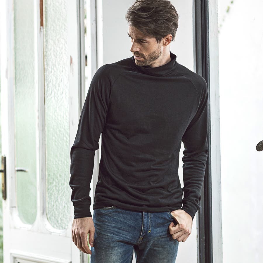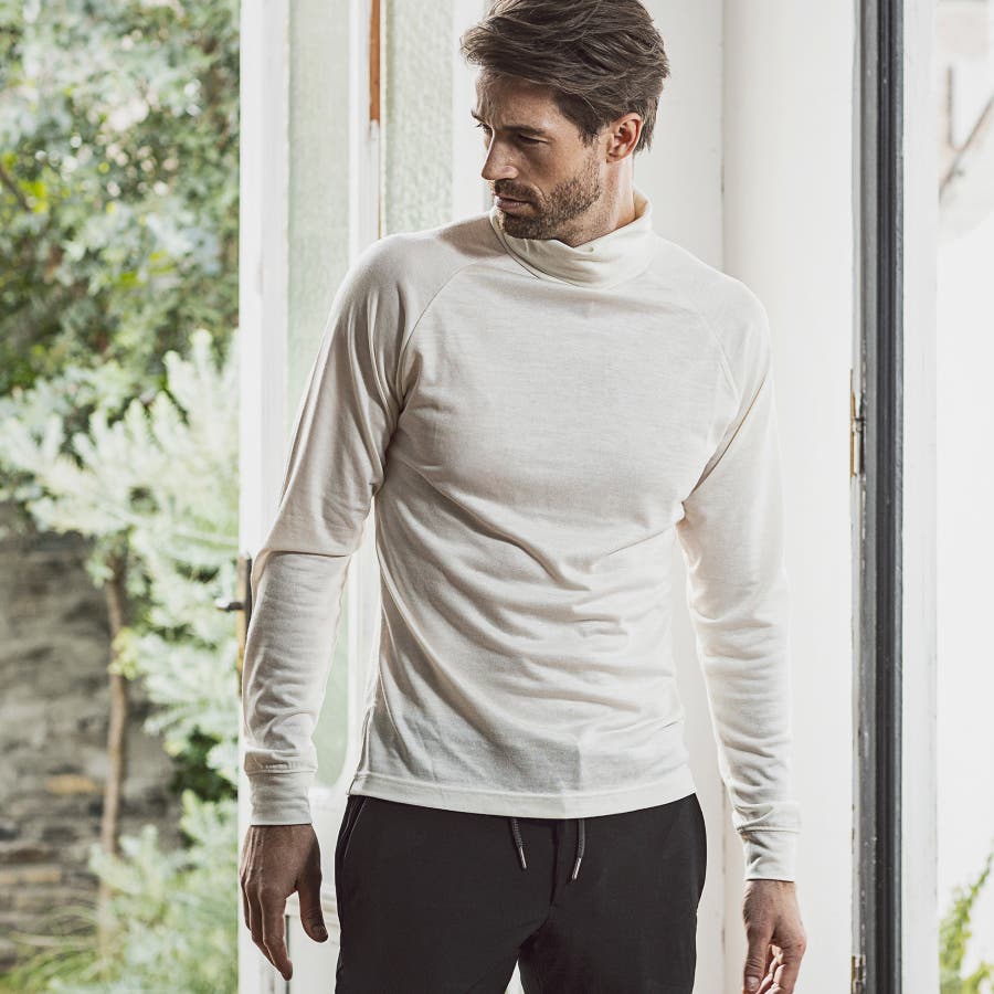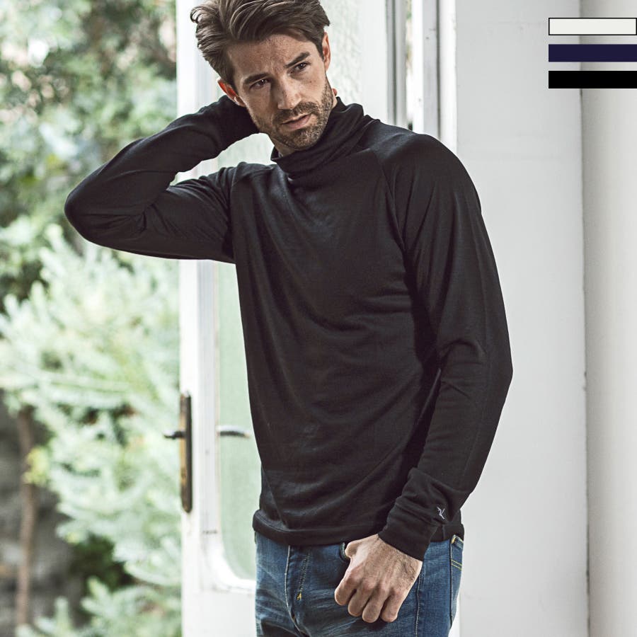 保温性に優れたウール天竺を使用したハイネックTシャツ。