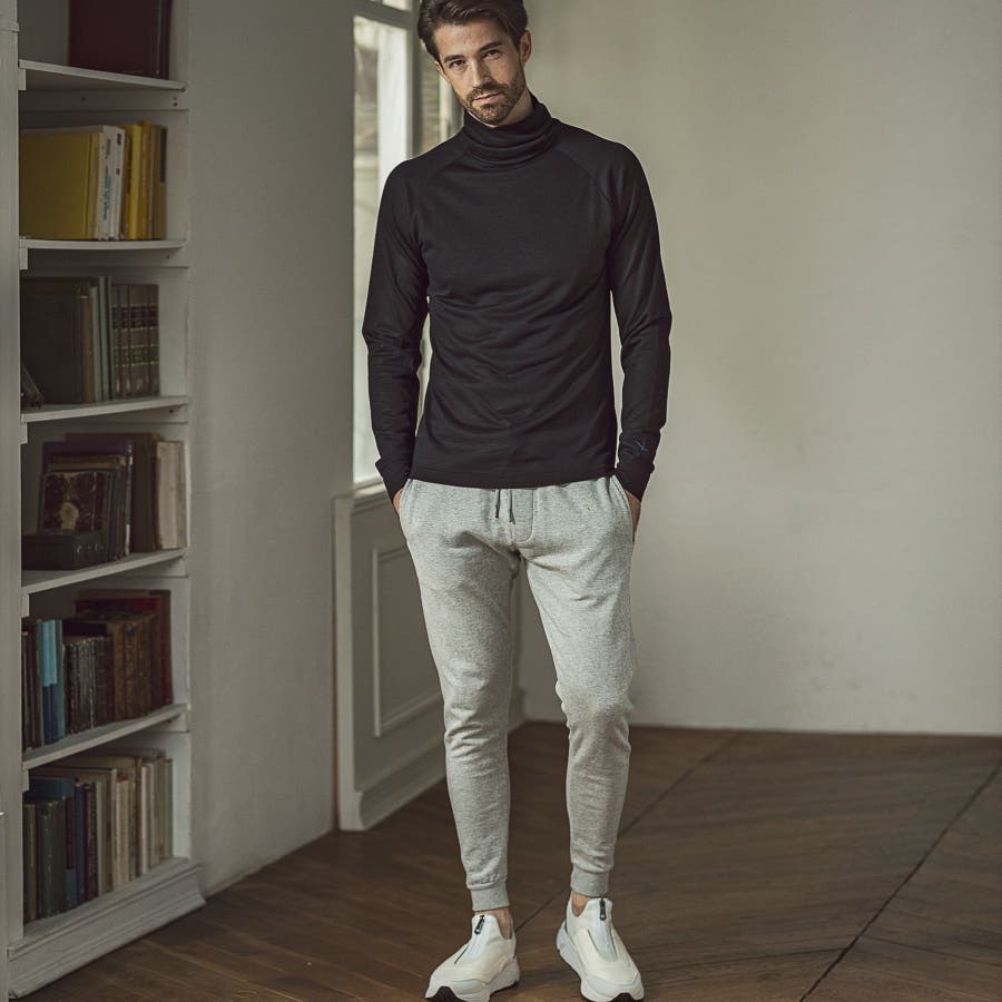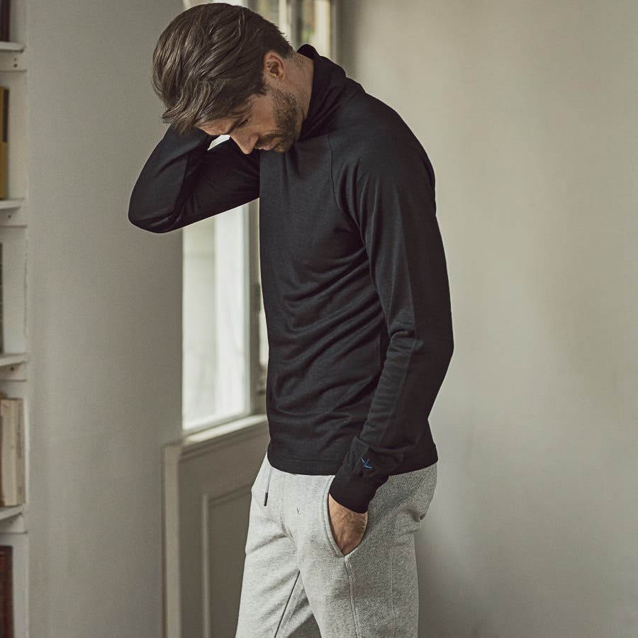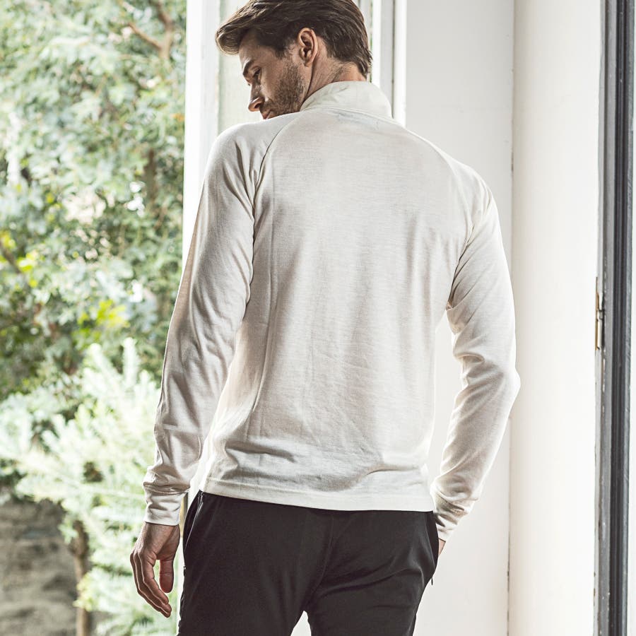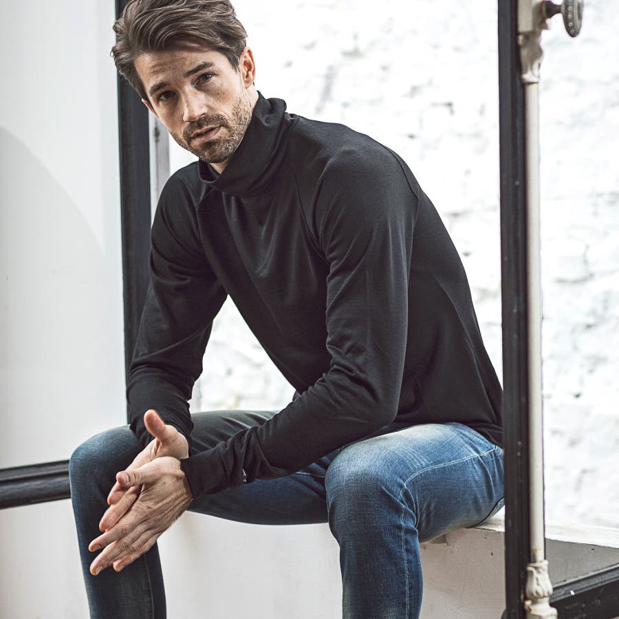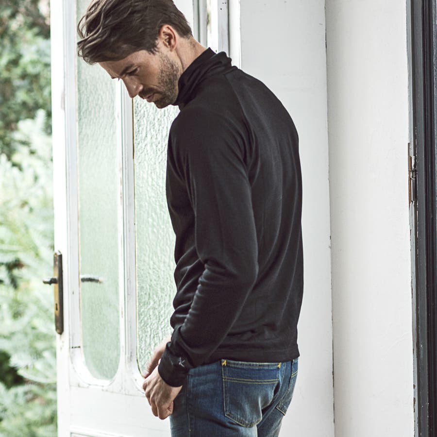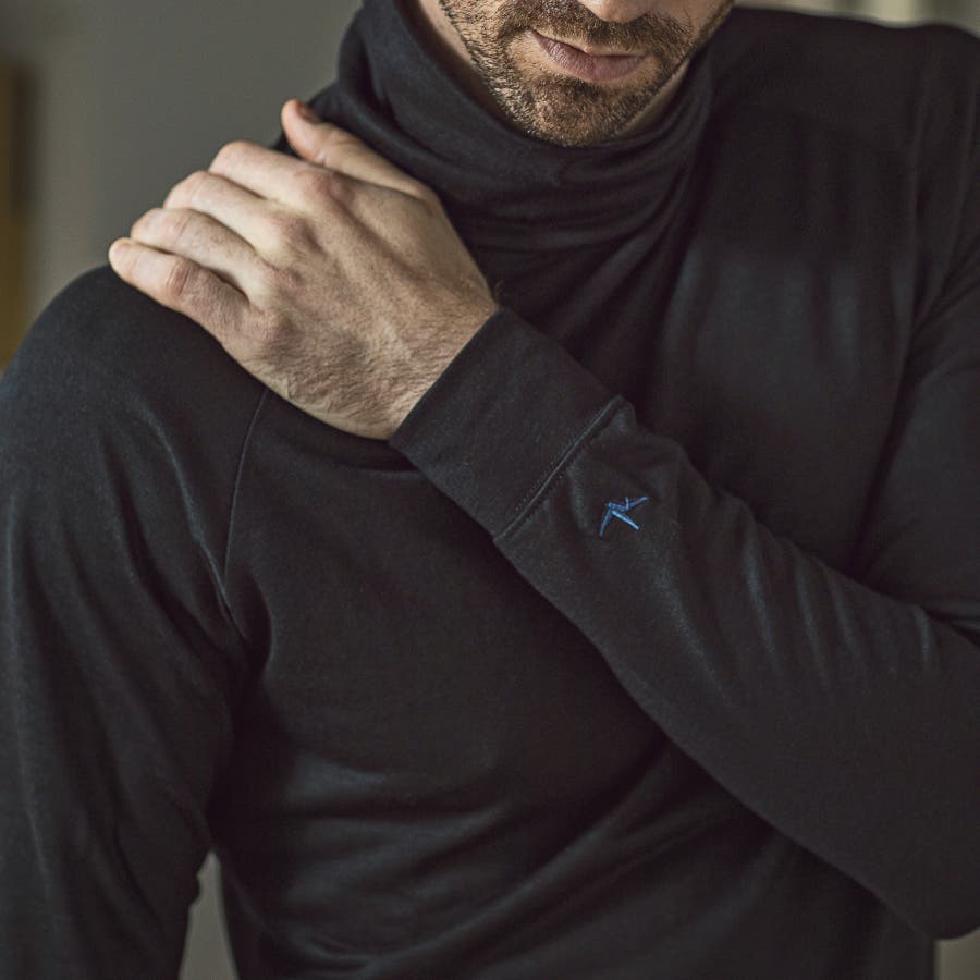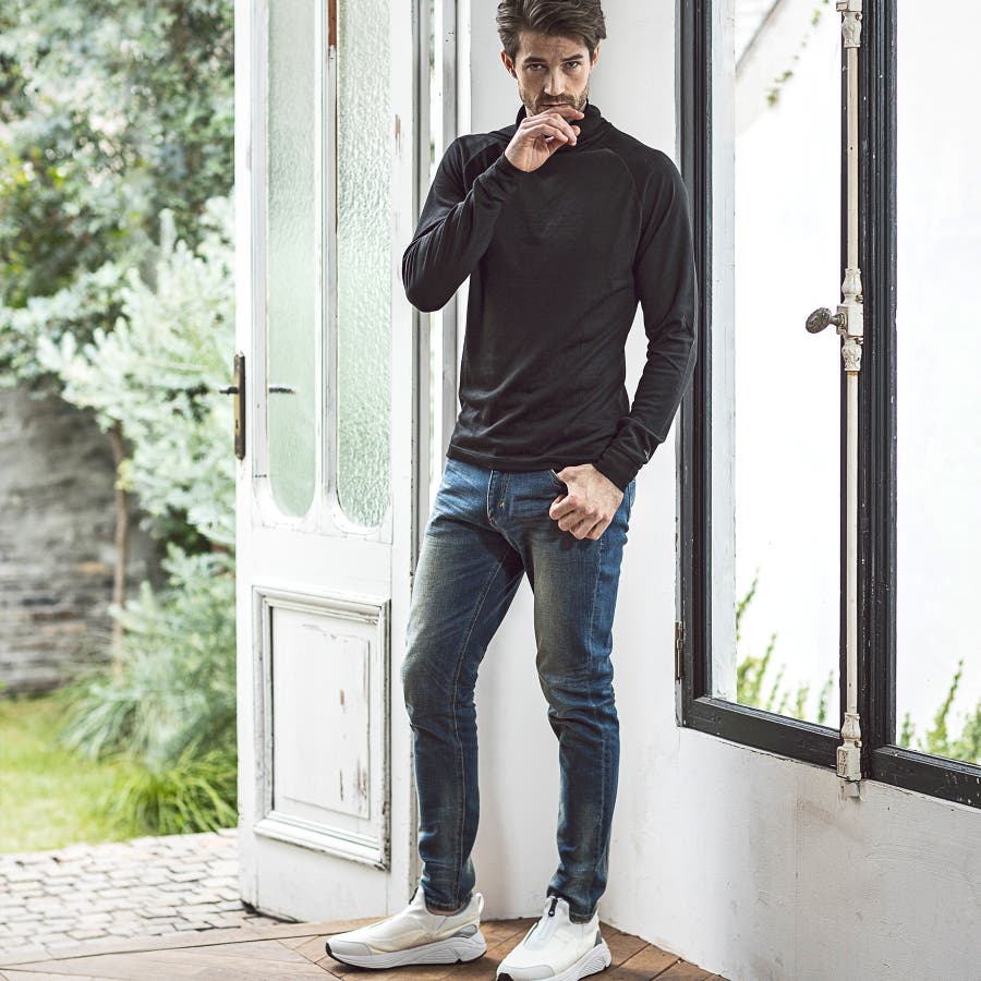 保温性に優れたウール天竺を使用したハイネックTシャツ。