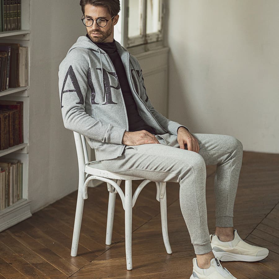 スウェットやニットなどに合わせても首回りにアクセントを加えてくれます。