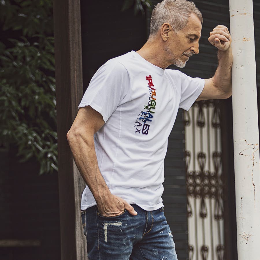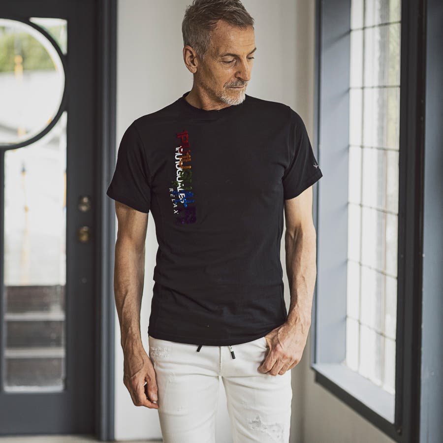 1PIU1UGUALE3 RELAX レインボー3Dダブルロゴ半袖Tシャツ