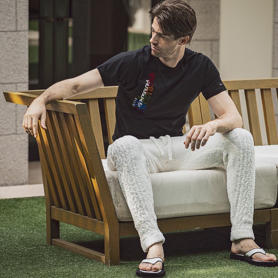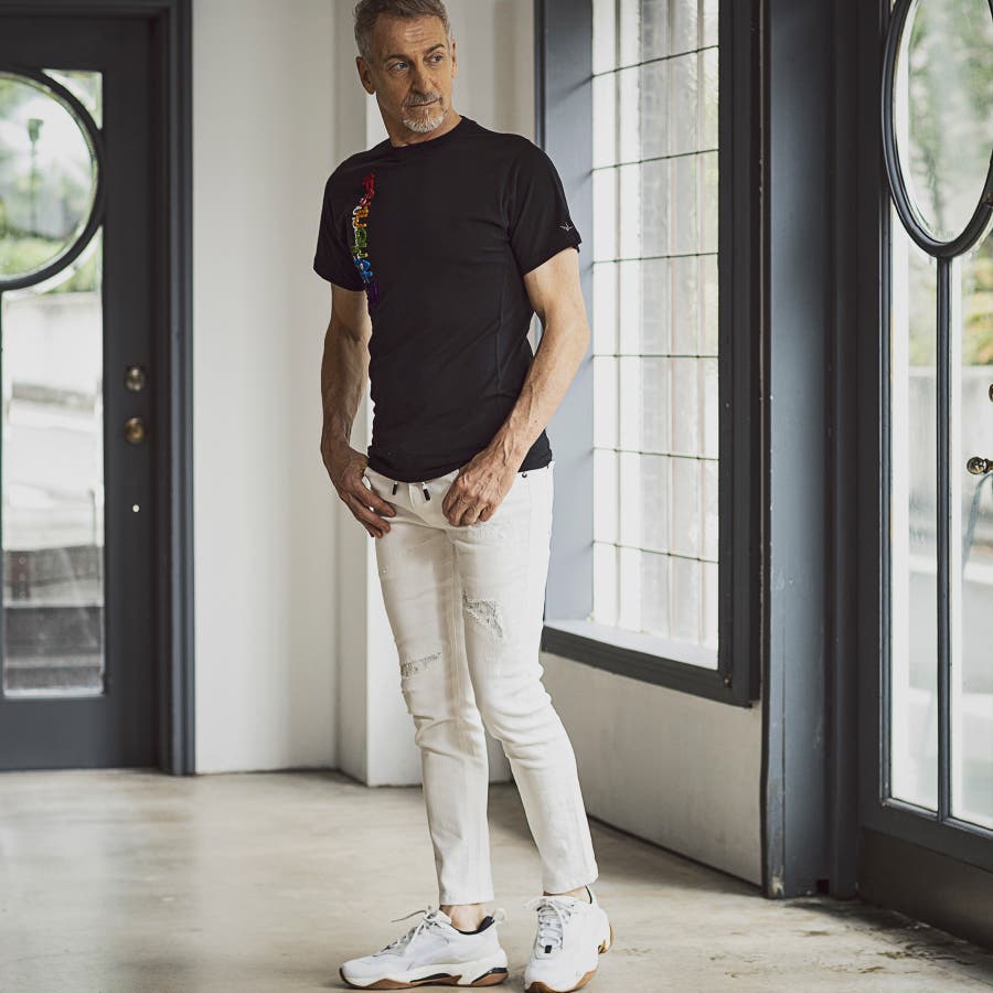 プリントの上に重ねた鮮やかな立体起毛ロゴが華やかに彩るロゴTシャツ。