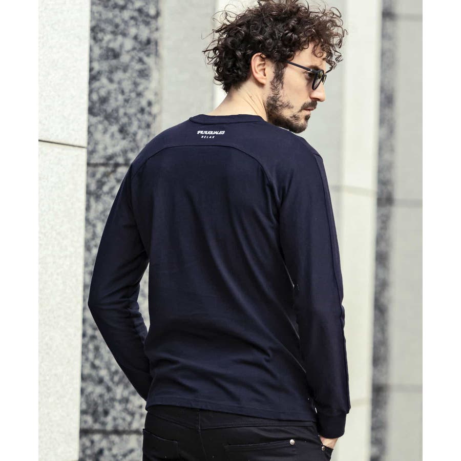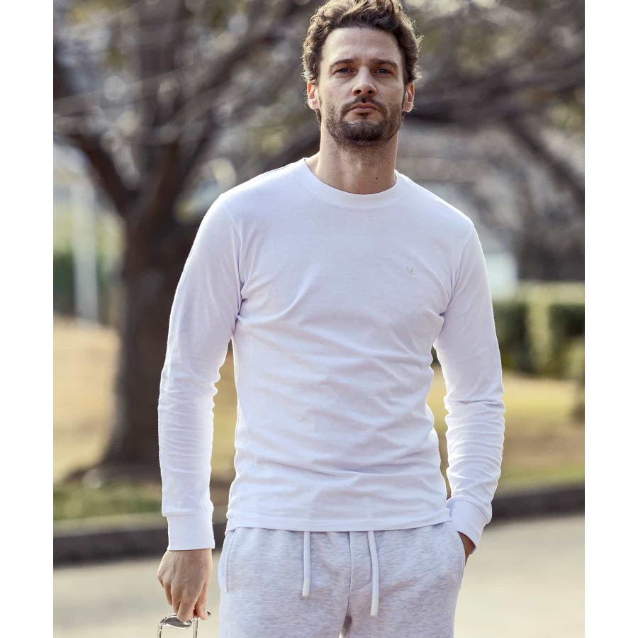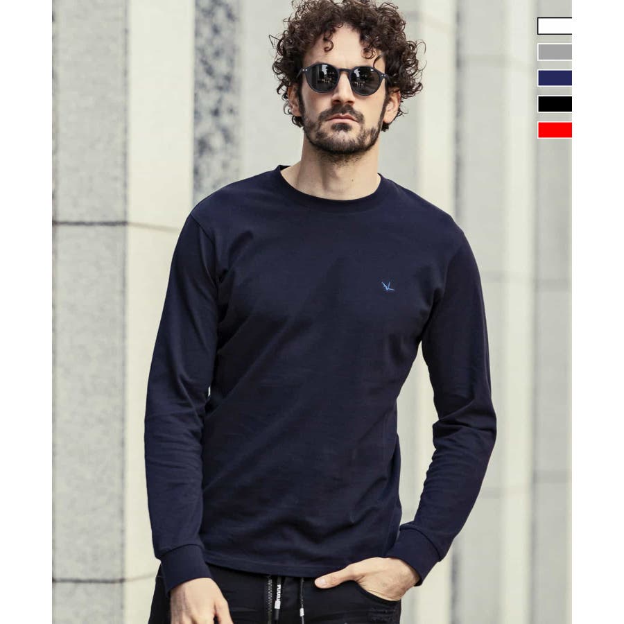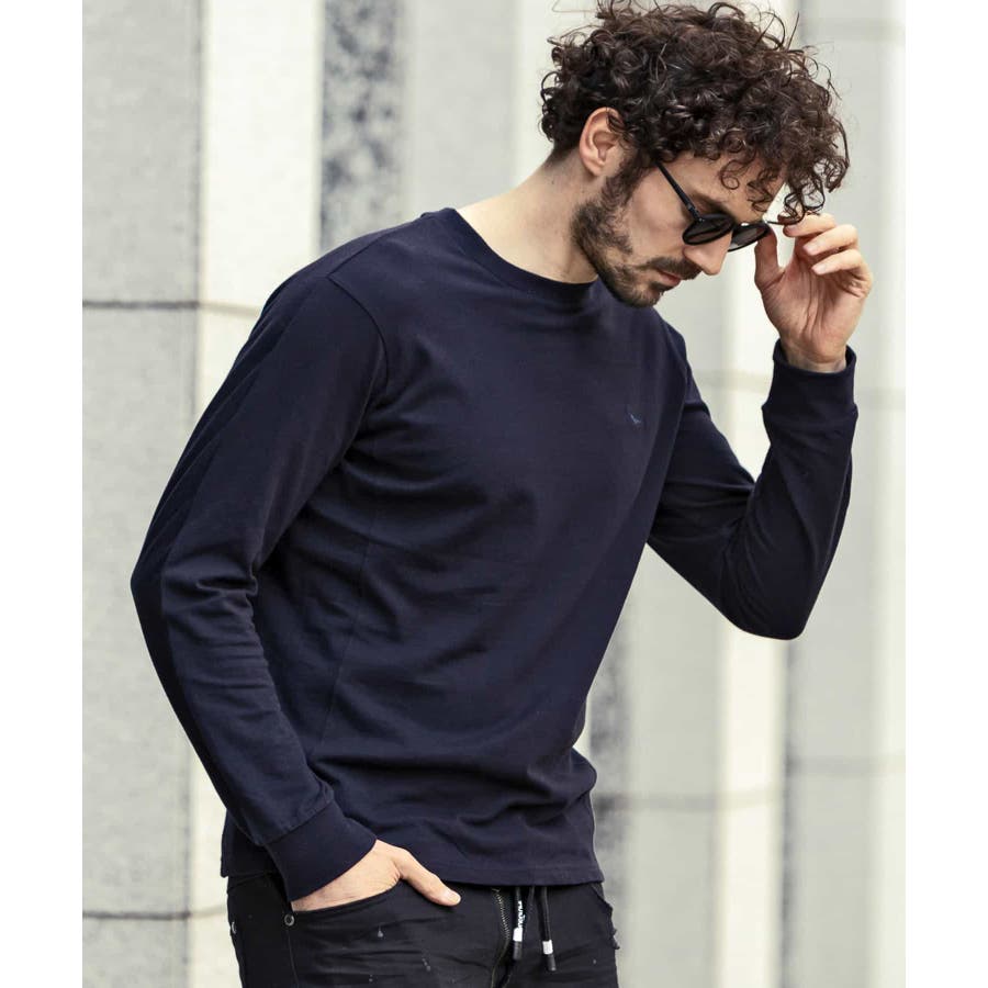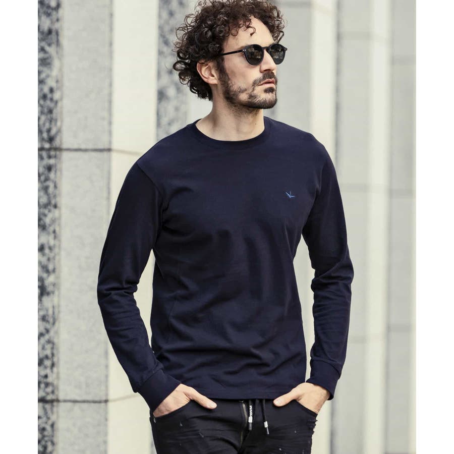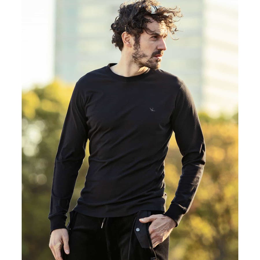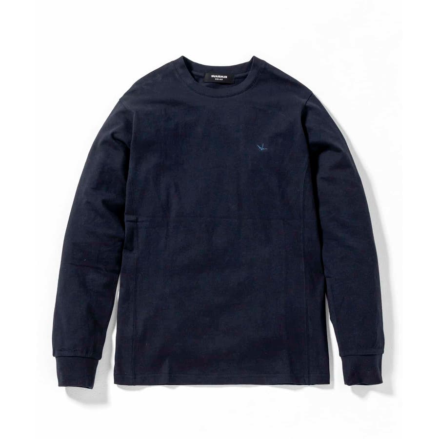 フロントに折り鶴を刺繍で配置した長袖Tシャツ。