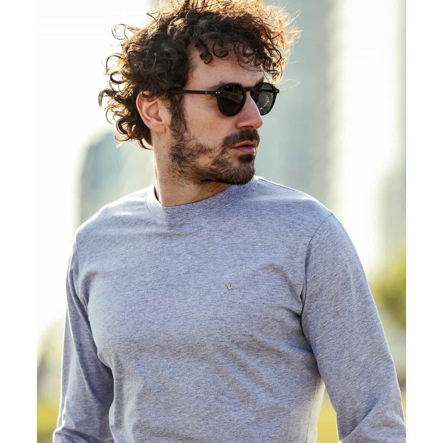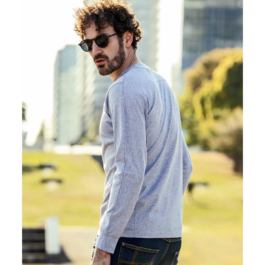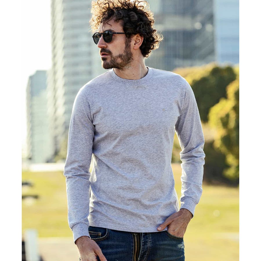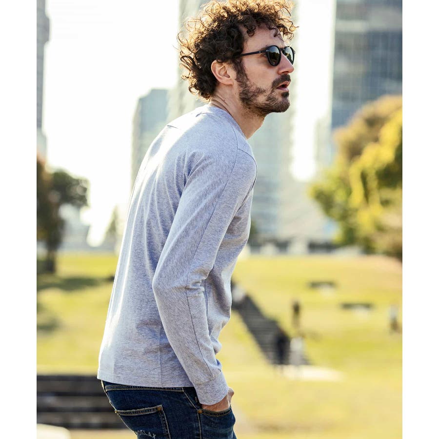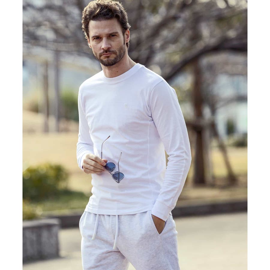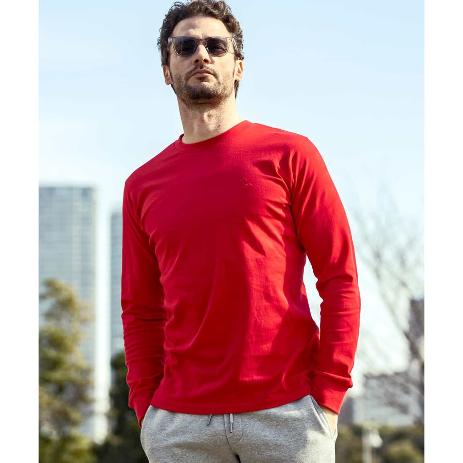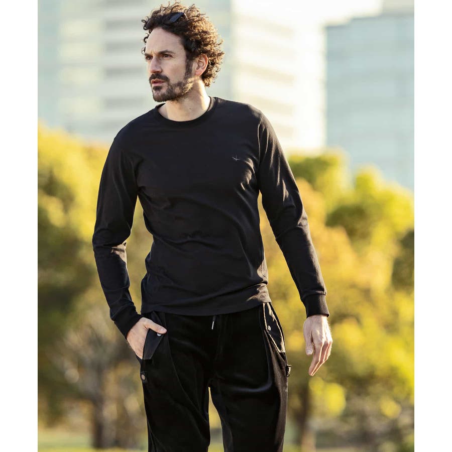 フロントに折り鶴を刺繍で配置した長袖Tシャツ。