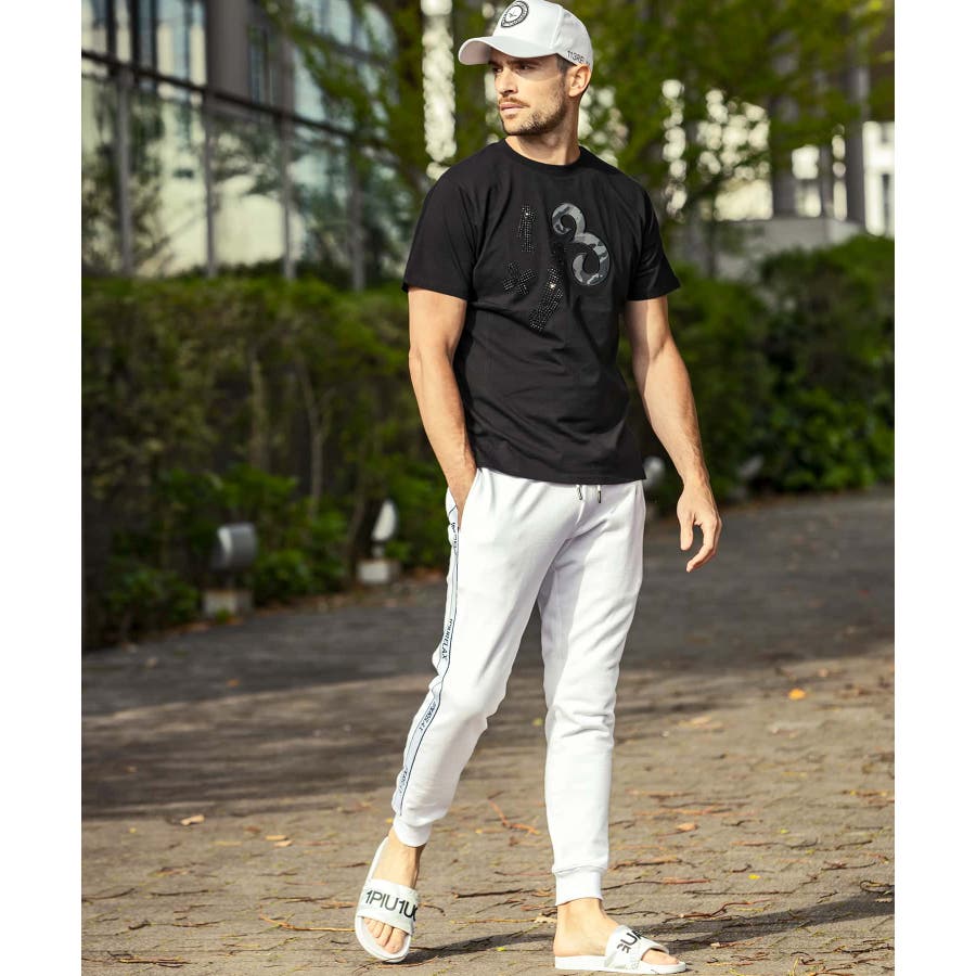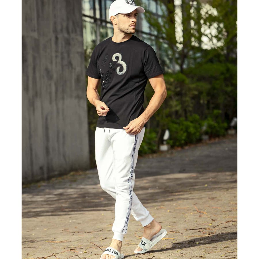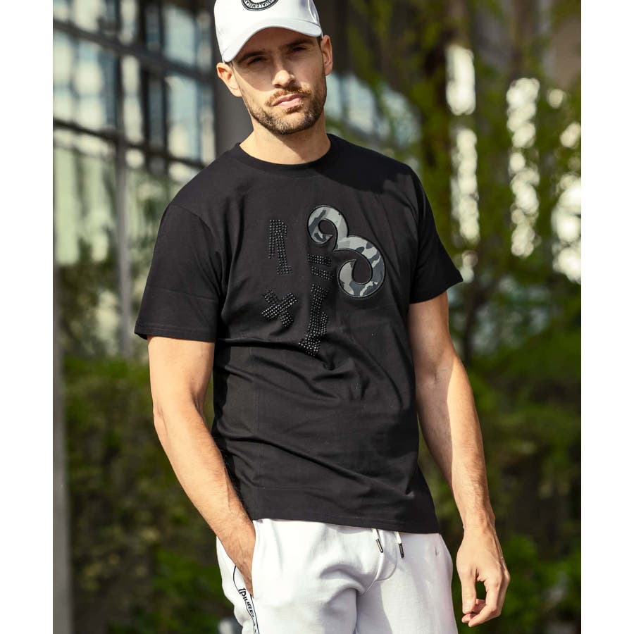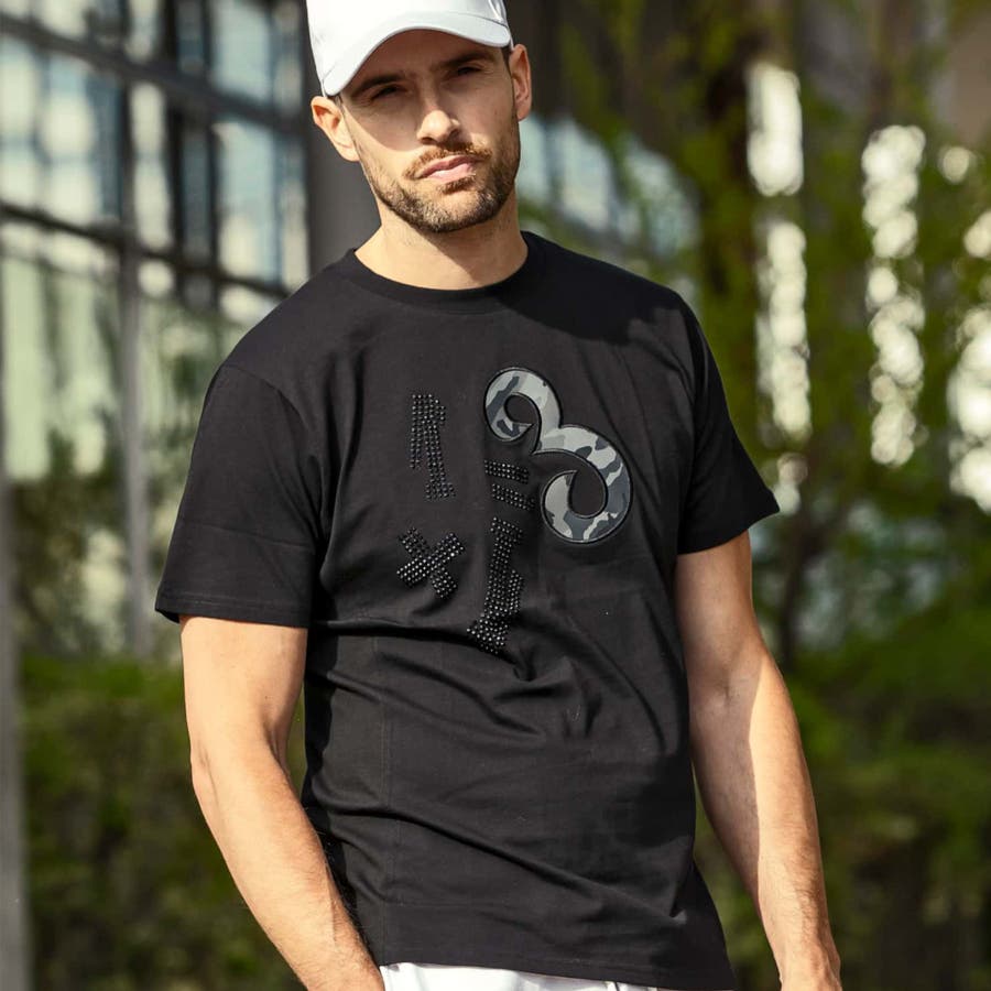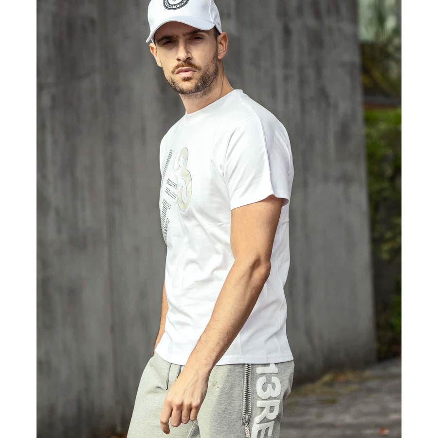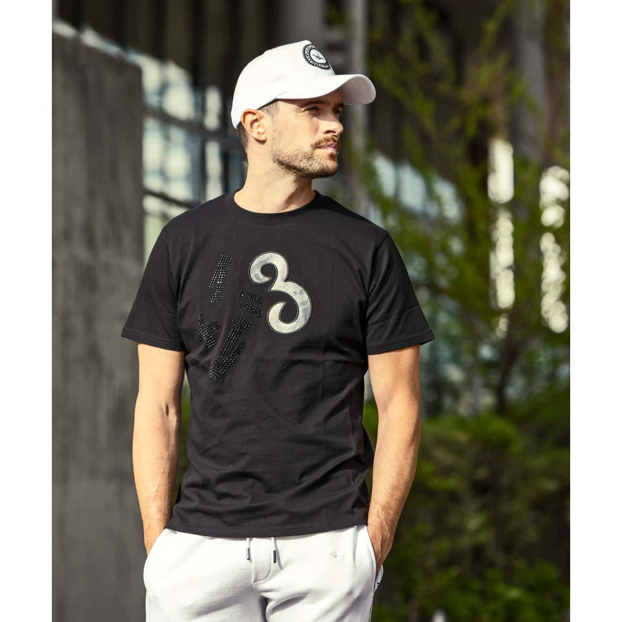 ブランド名の意を持つ「1+1=3」を配した半袖Tシャツ。