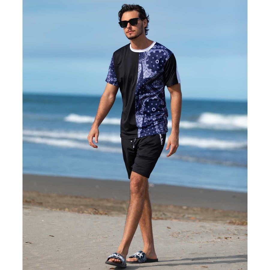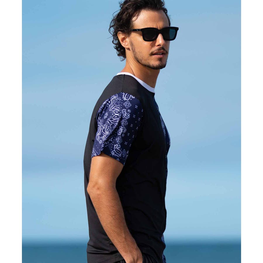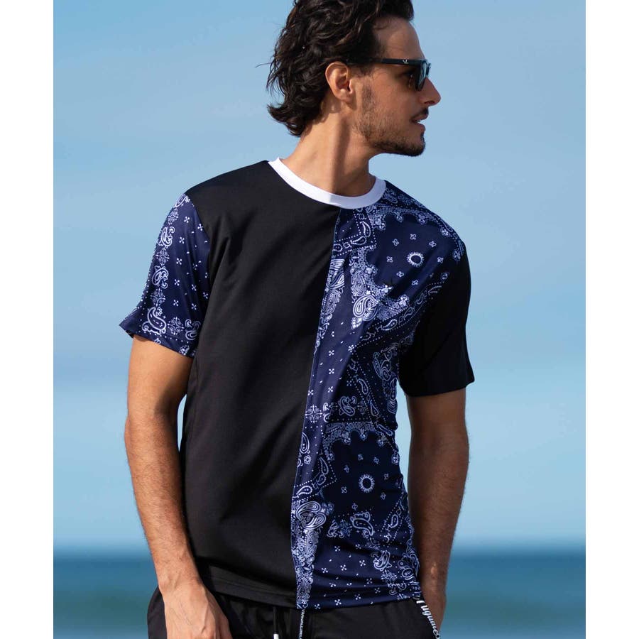 ブロッキングペイズリー半袖ラッシュガード⇒ust-24010