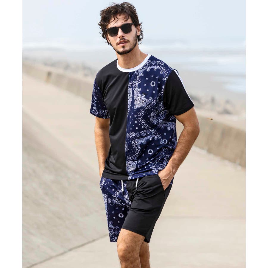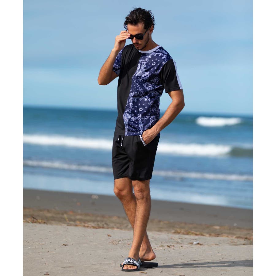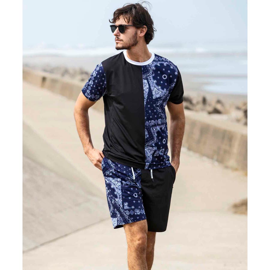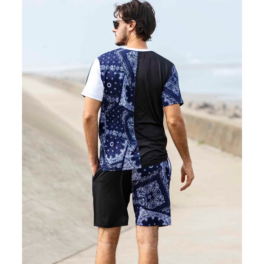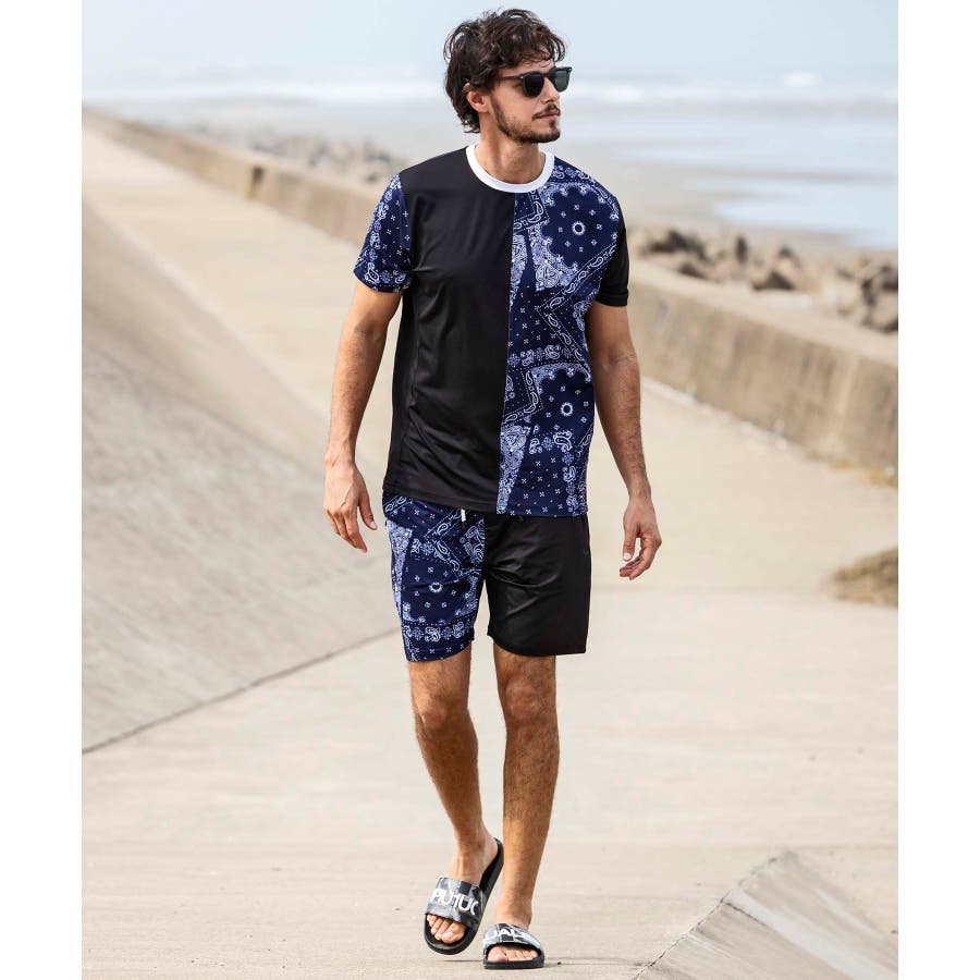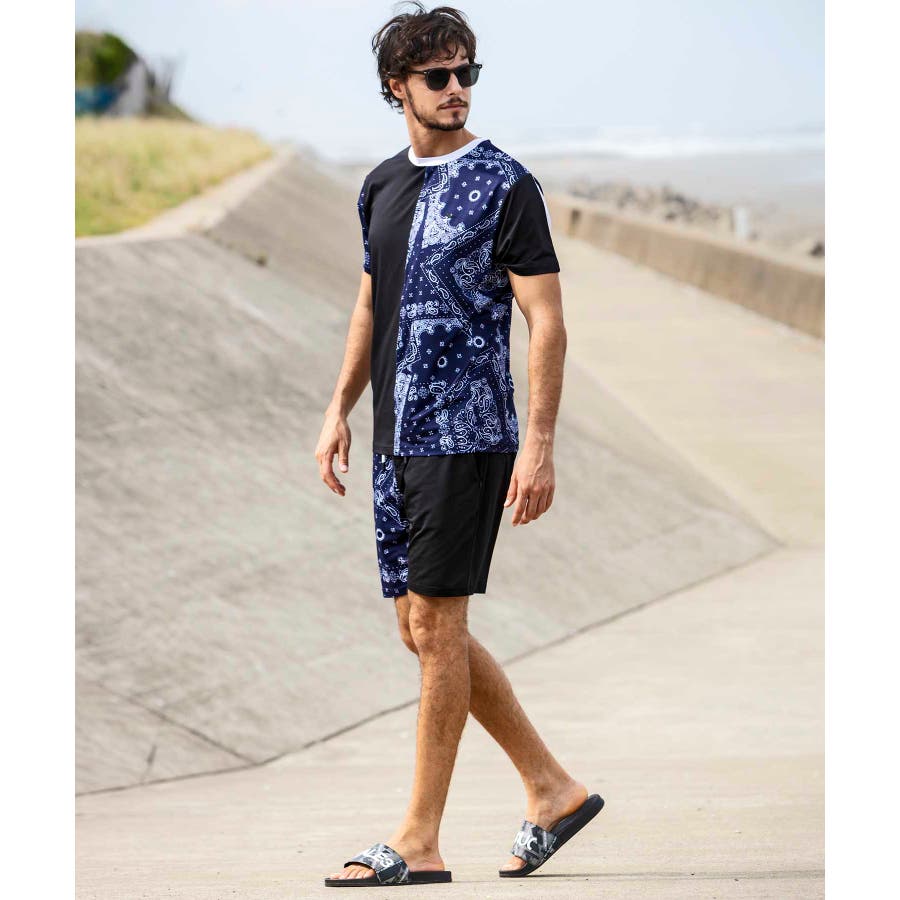 ブロッキングペイズリーラッシュガードショーツ⇒usb-24009