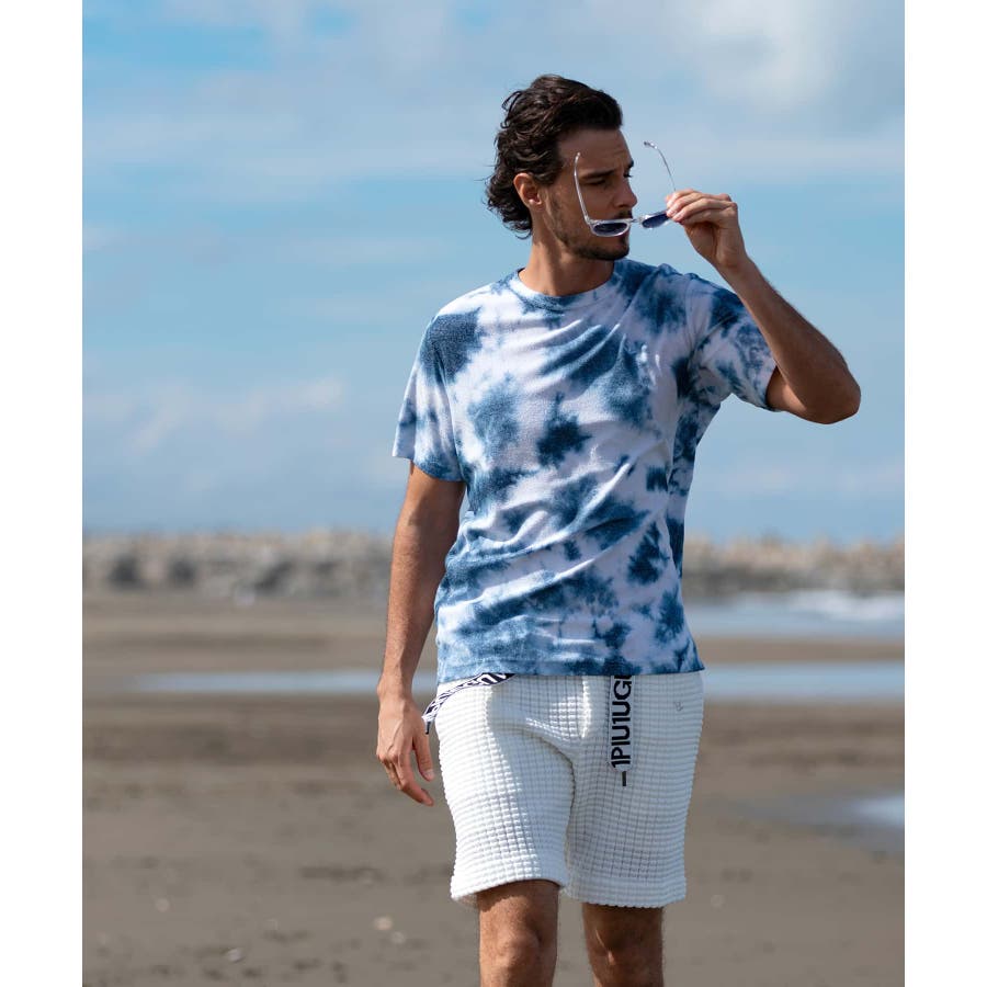 インディゴとホワイトのタイダイ柄がシーズンらしい爽快感を演出。