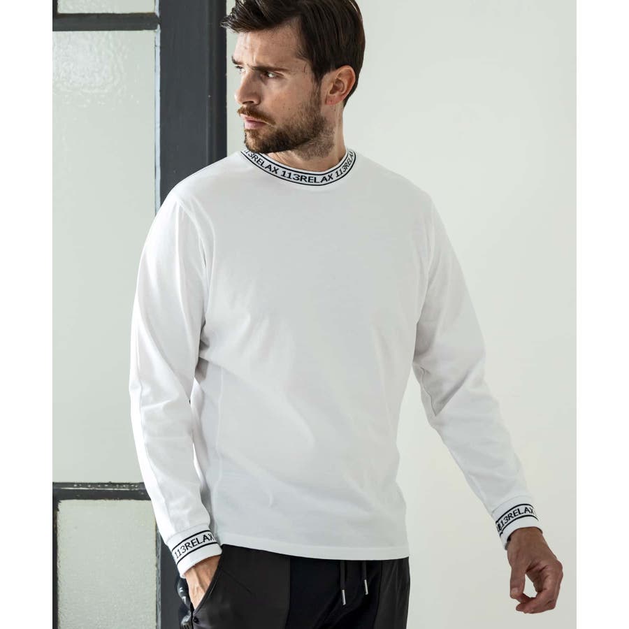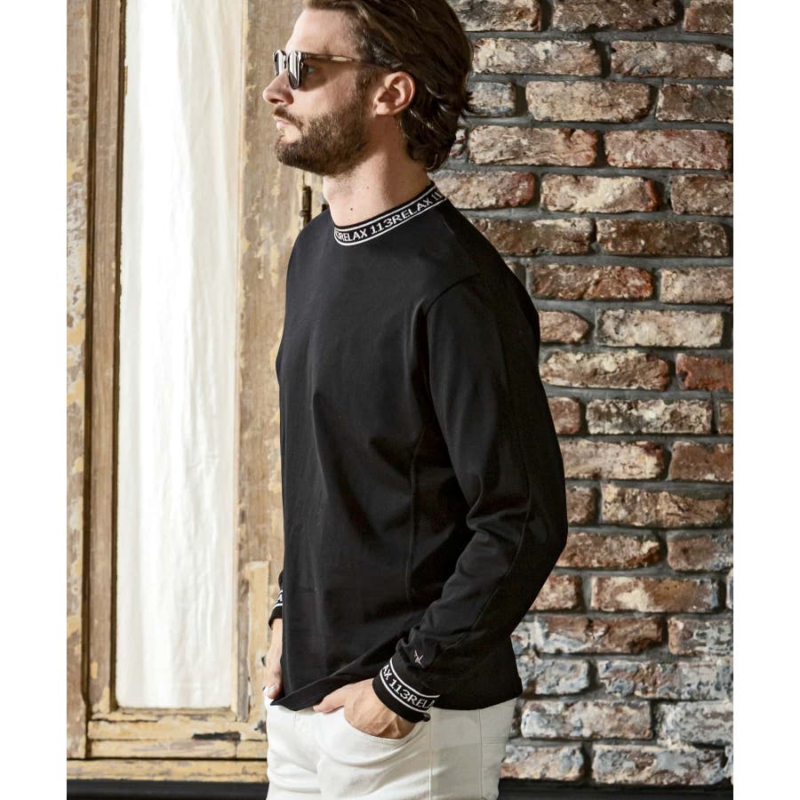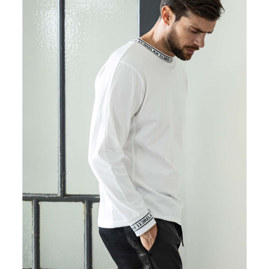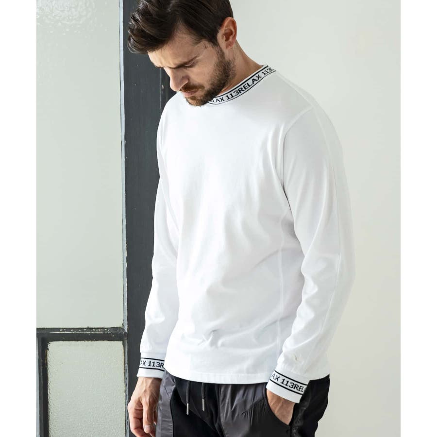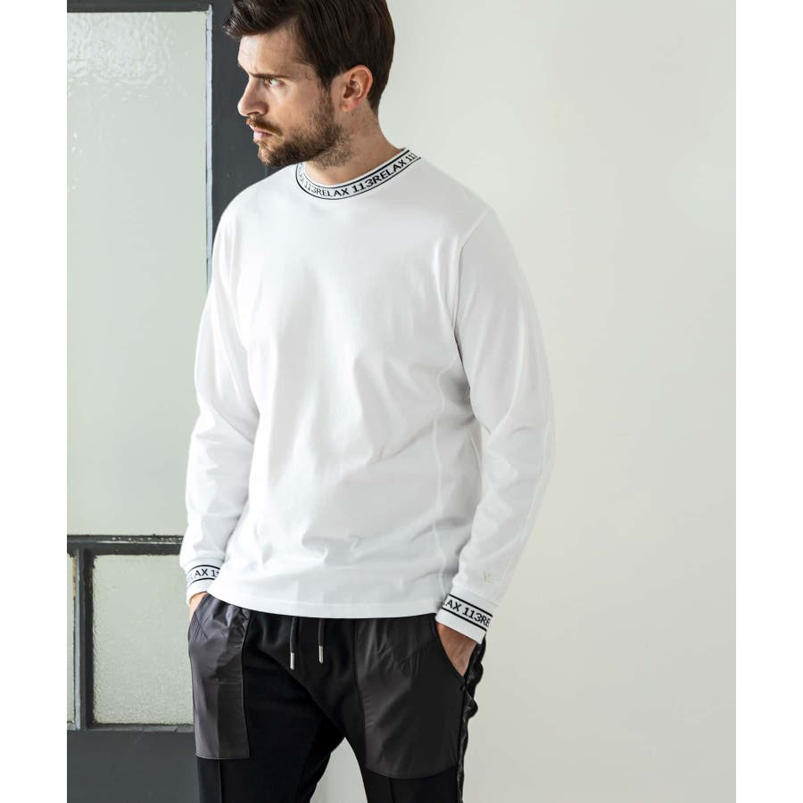 ネックにブランドロゴを印象的に配置したロングTシャツ。