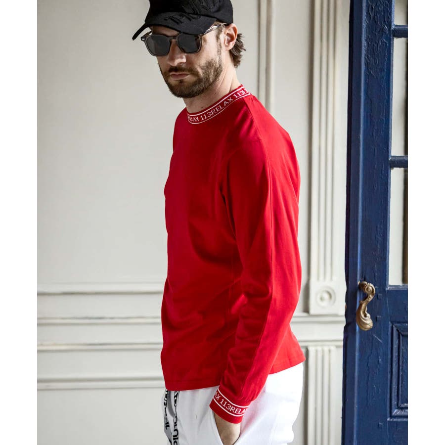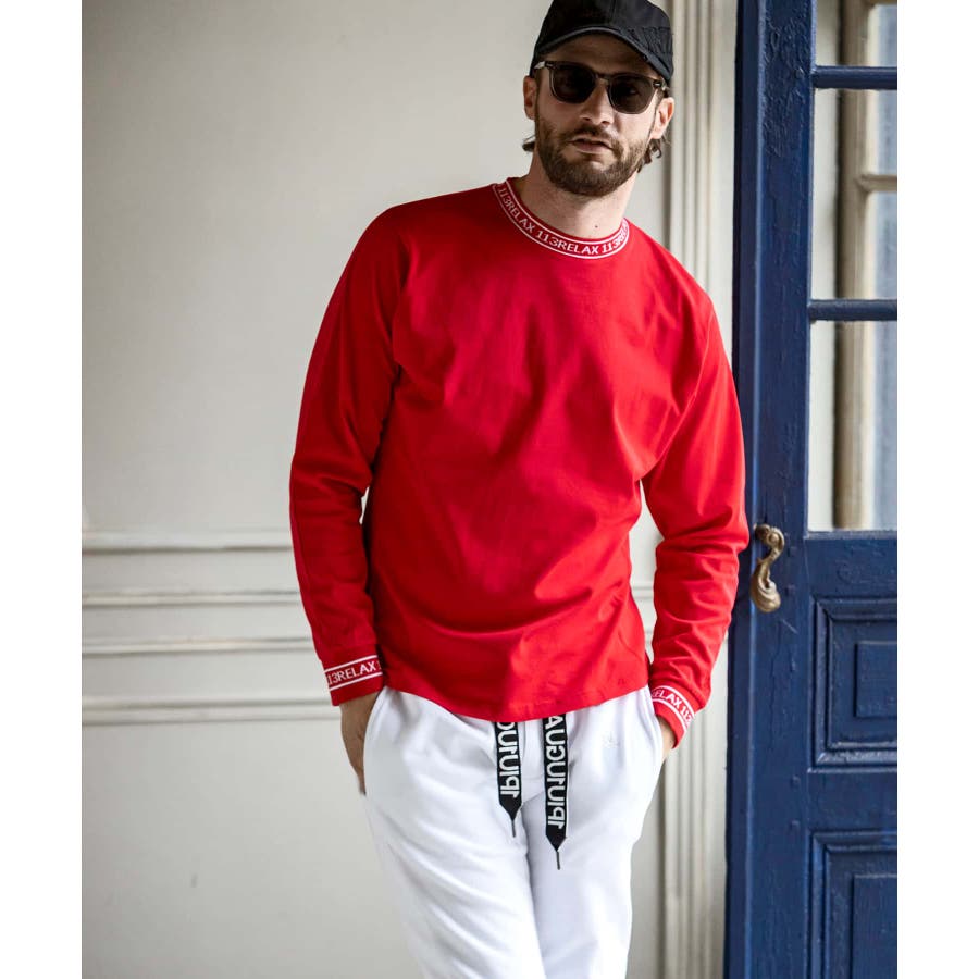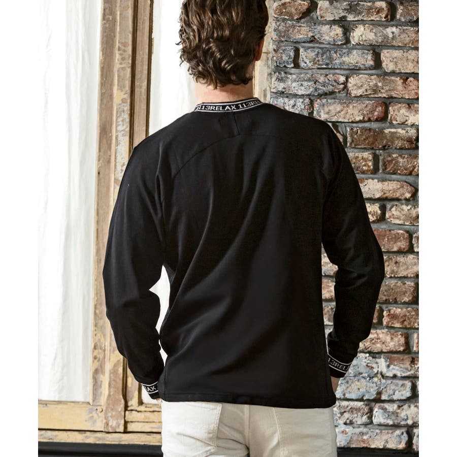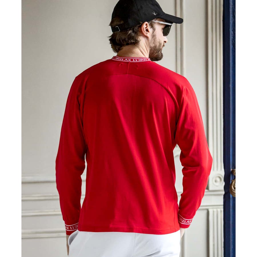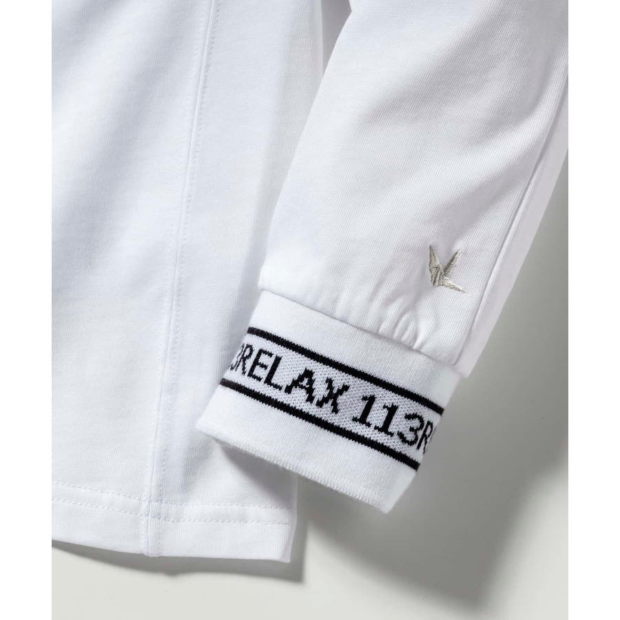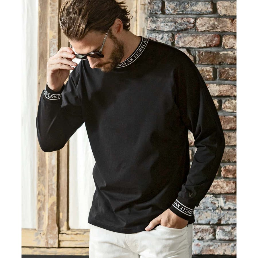 ネックにブランドロゴを印象的に配置したロングTシャツ。