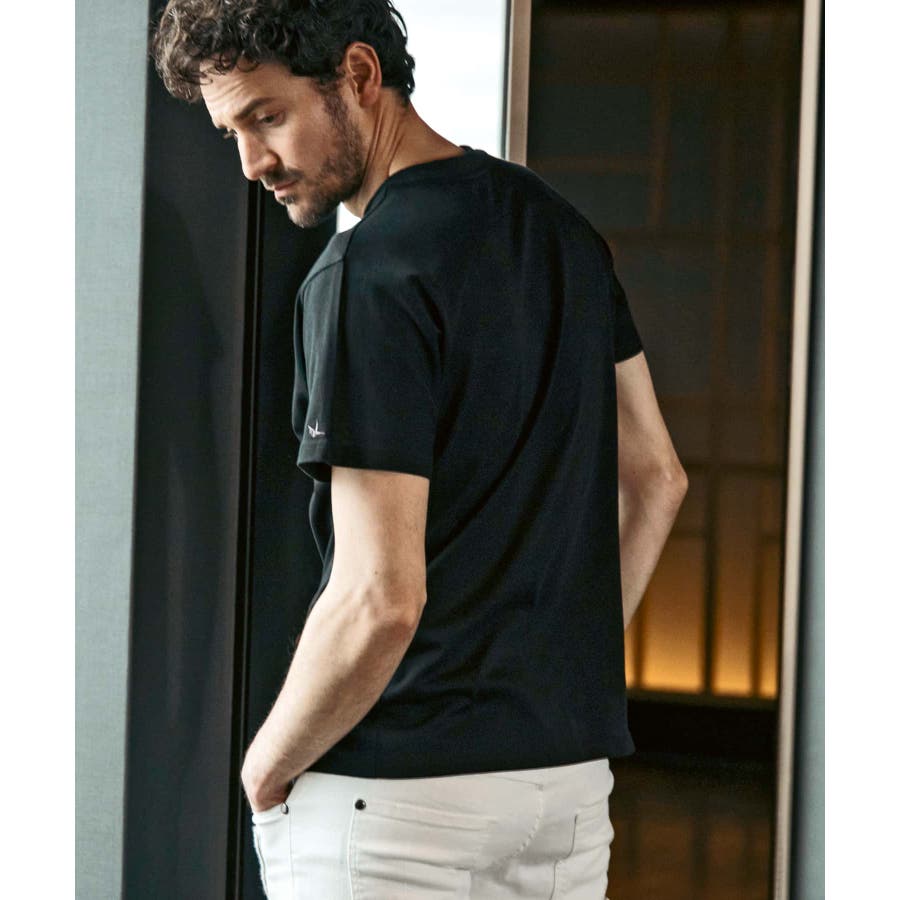 綿の繊維に艶感やハリを与える加工を施し、シルクのような豊かな光沢を生み出した生地は、さらさらと滑らかな表面感により、暑い季節にも快適な着心地を実現しています。