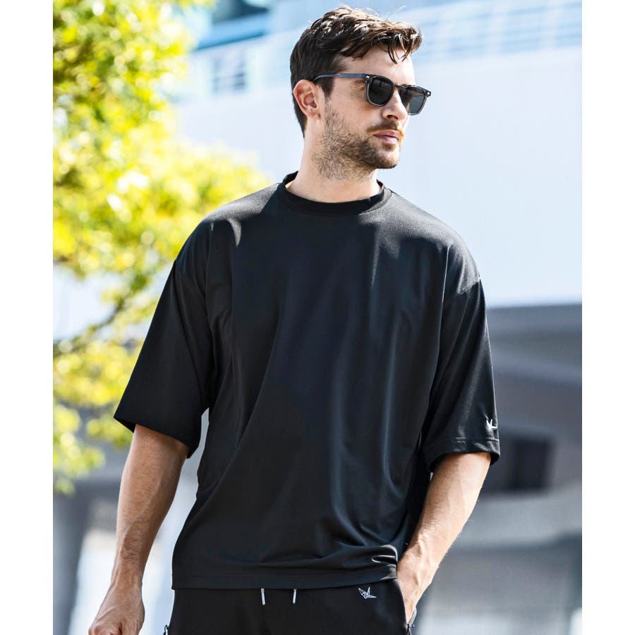 左腕にあるブランドアイコンの「折り鶴」とバックに配置したロゴがモノトーンのベースにアクセントを加えます。