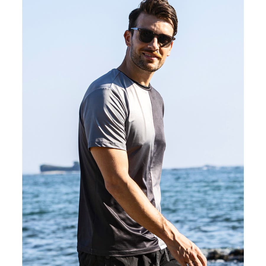 吸水速乾・UVカット機能を備えており、アクティブに適した伸縮性の高い吸水速乾混率素材を使用。