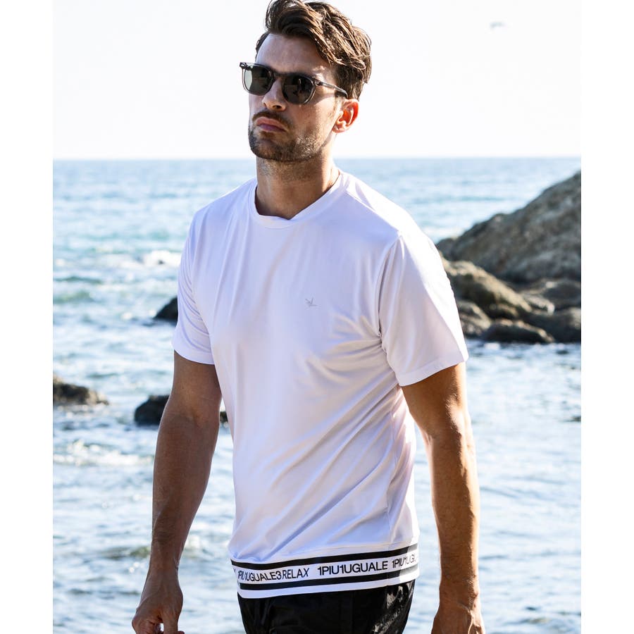 1PIU1UGUALE3 RELAXからリゾートにも最適な海辺での日焼けや擦り傷などから肌を守ってくれるラッシュガードの登場です。