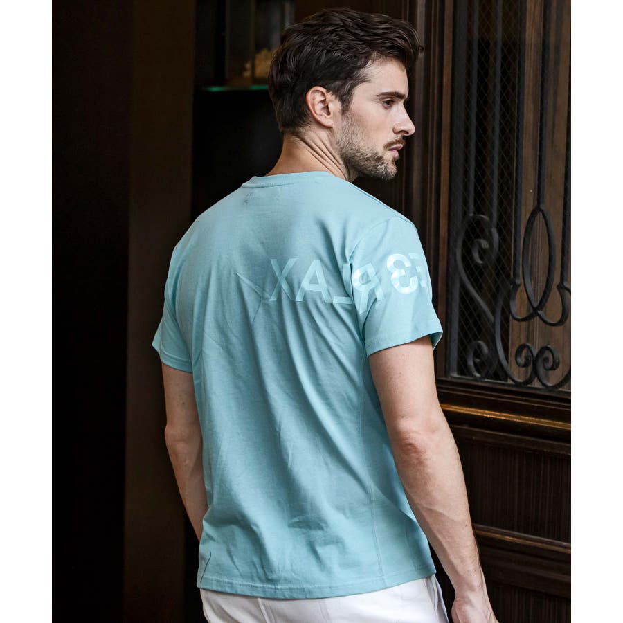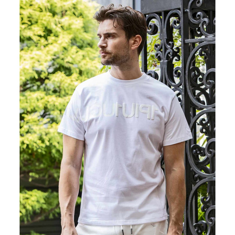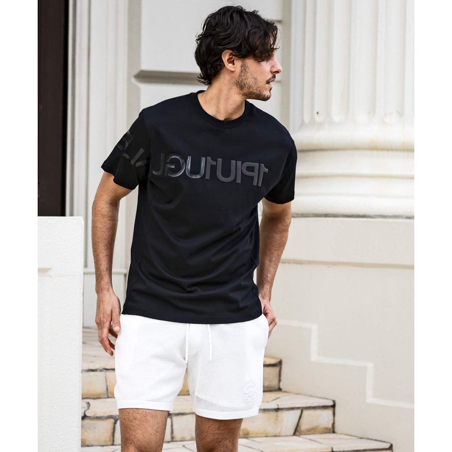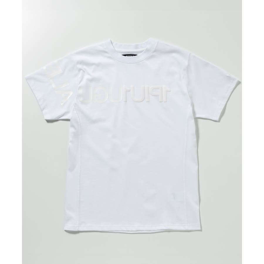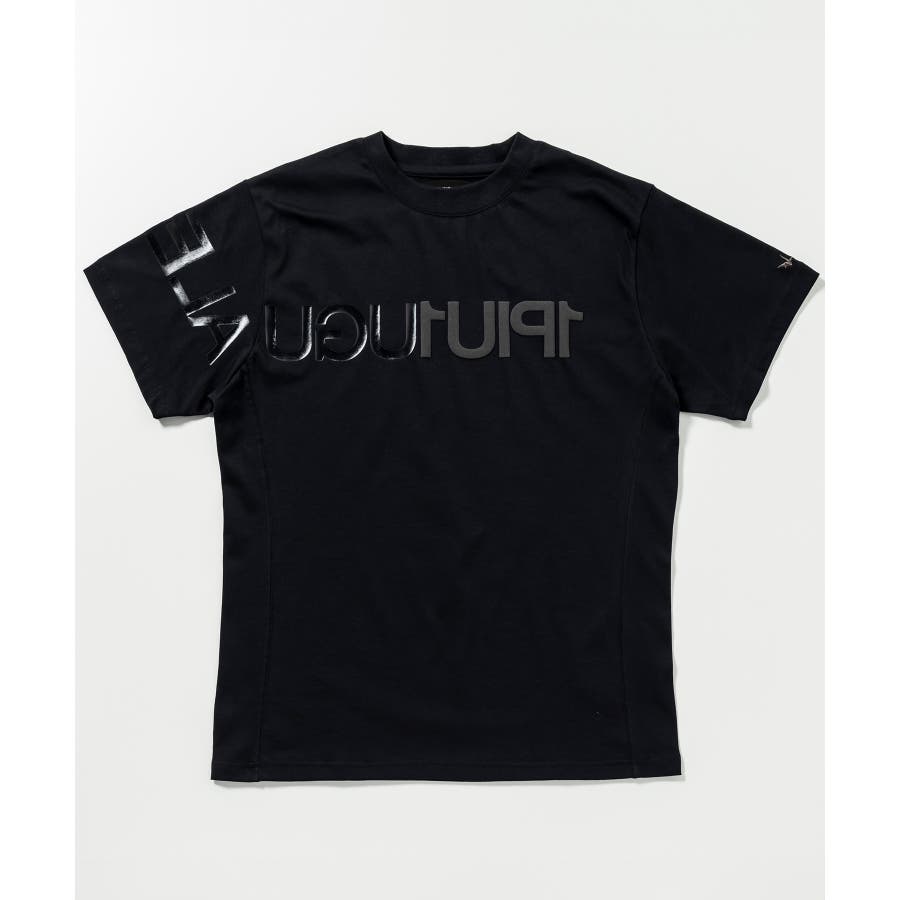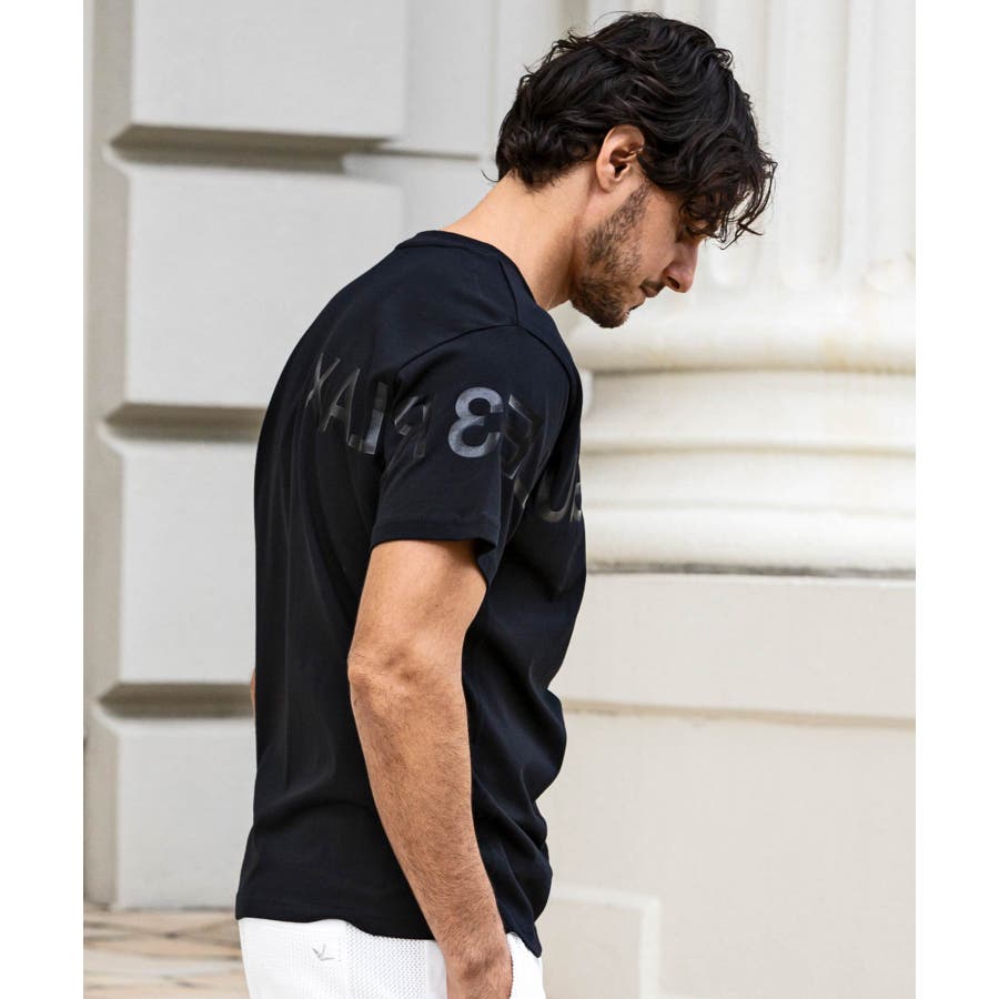 前から後ろに大胆に配置した1PIU1UGUALE3 RELAXロゴがプリント加工の凸凹により立体感を演出しています。