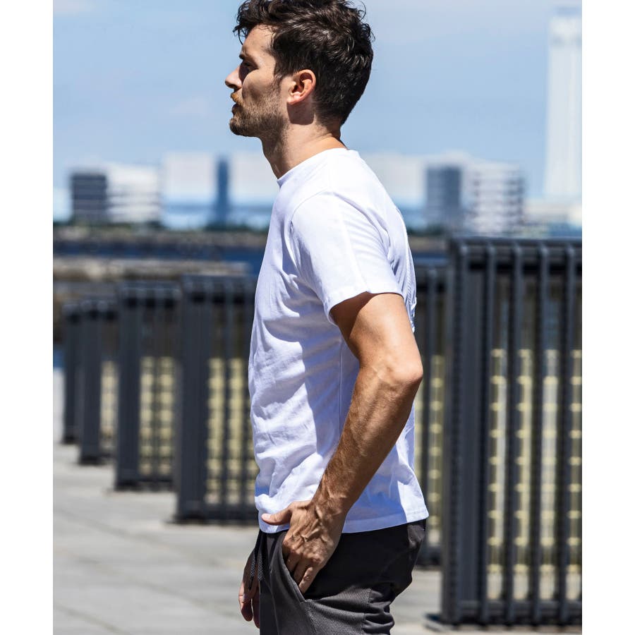 綿の繊維に艶感やハリを与える加工を施し、シルクのような豊かな光沢を生み出した半袖Tシャツ。