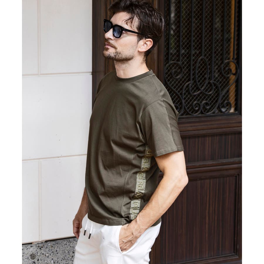 左脇に身頃同色グログランテープに、同色刺繍ロゴ加えベーシックながら目を引くアクセントとなっています。