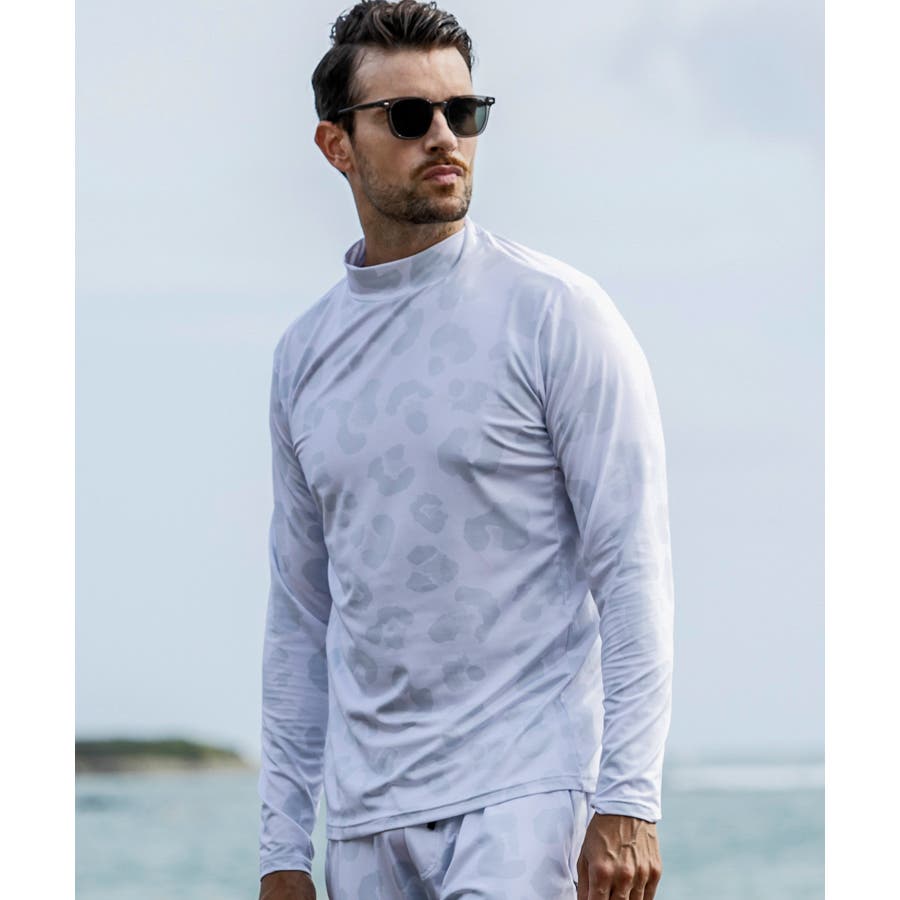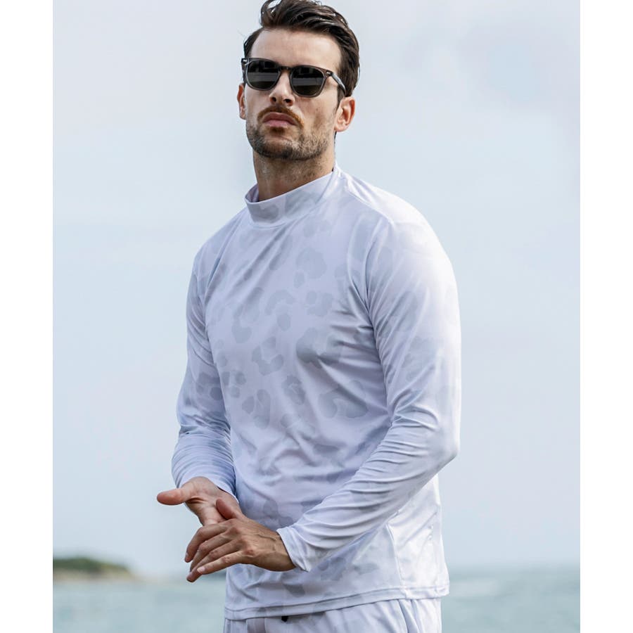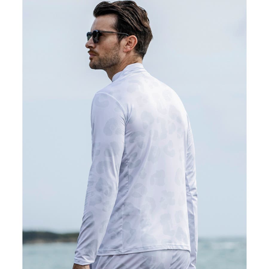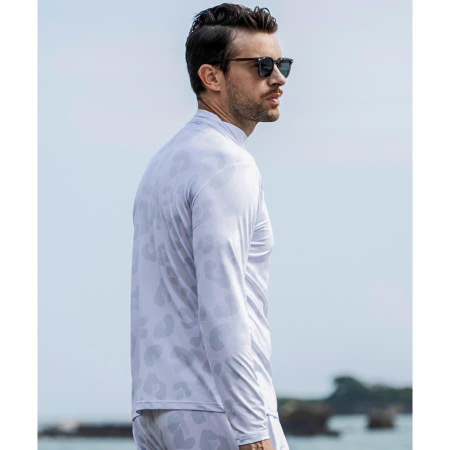 襟はモックネックで海でのサーフィンやSUP、ビーチ・プールはもちろんジム・ヨガ・ランニングなどのフィットネス、トレーニングウェアやヨガウェアにもおすすめ。