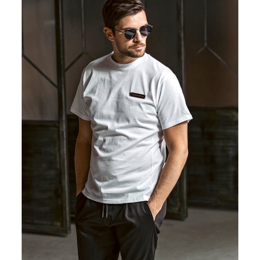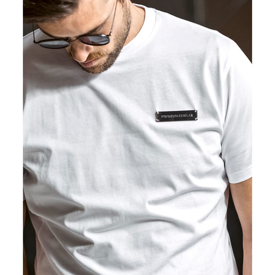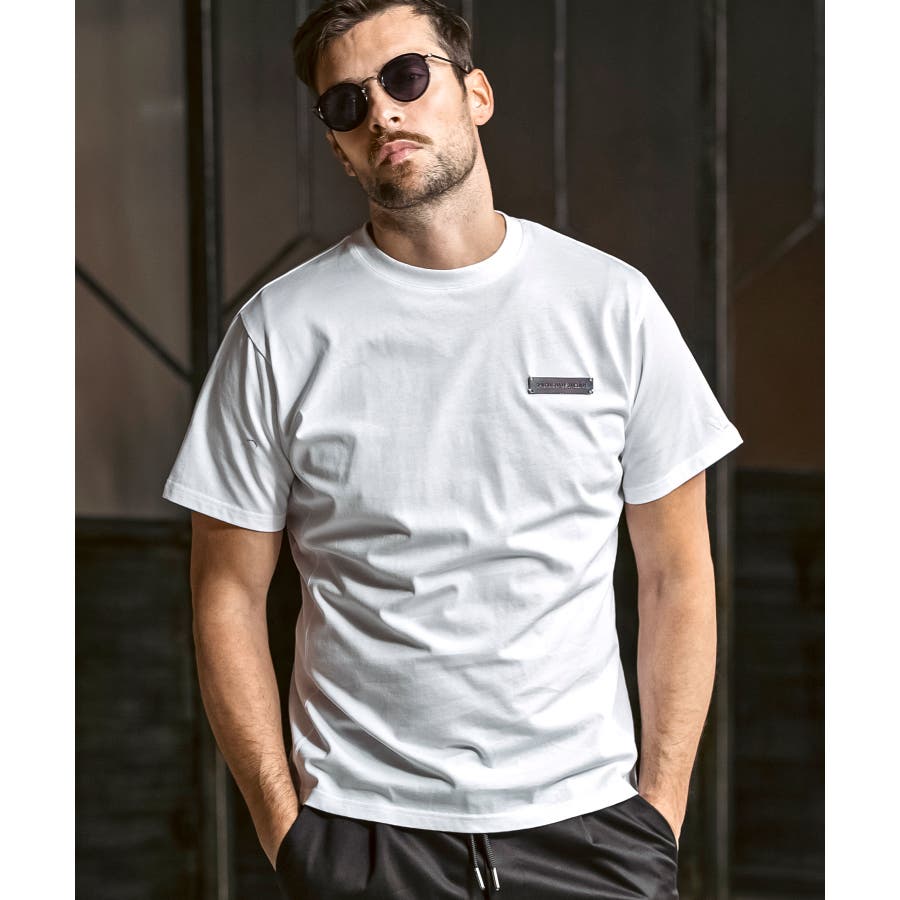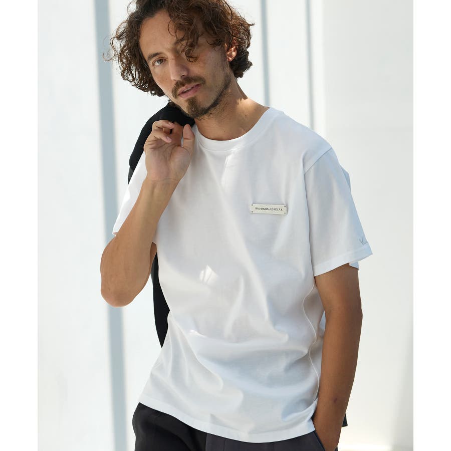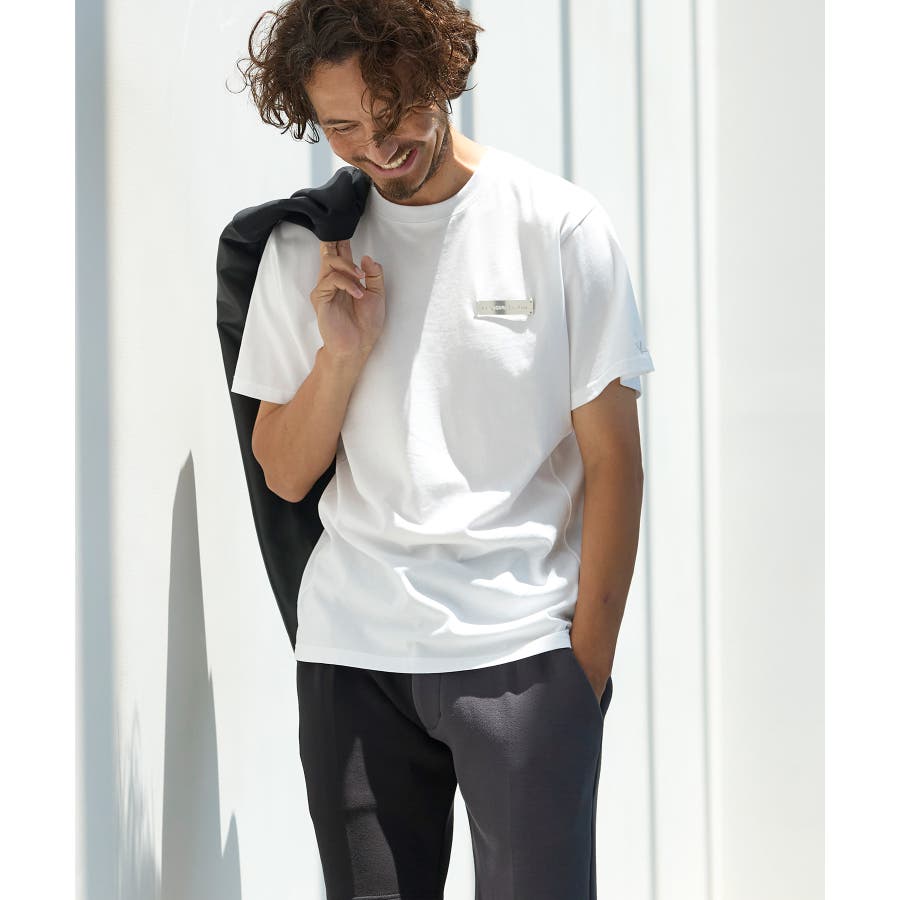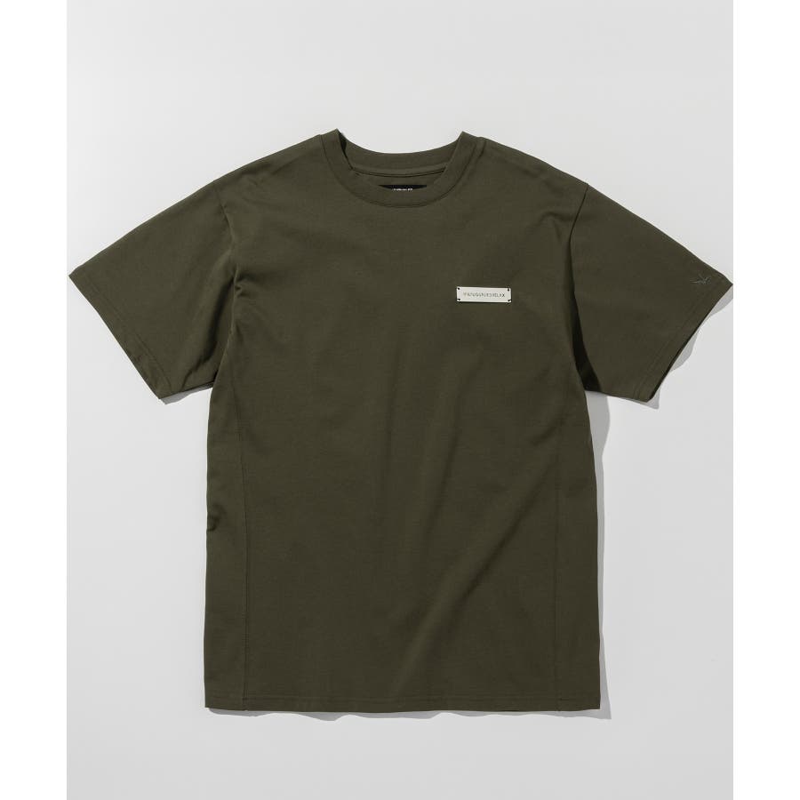 裾口にシルバープレートでブランドロゴを差し込んだ半袖カットソー。