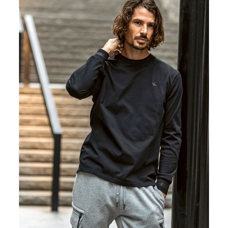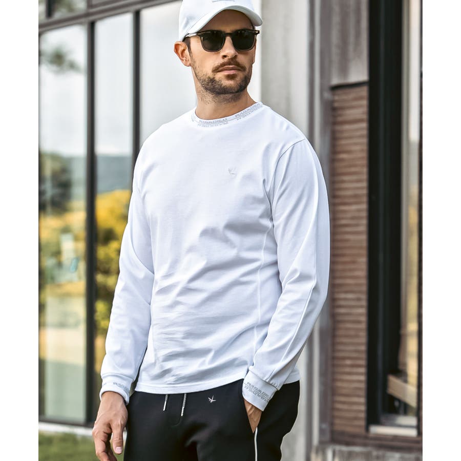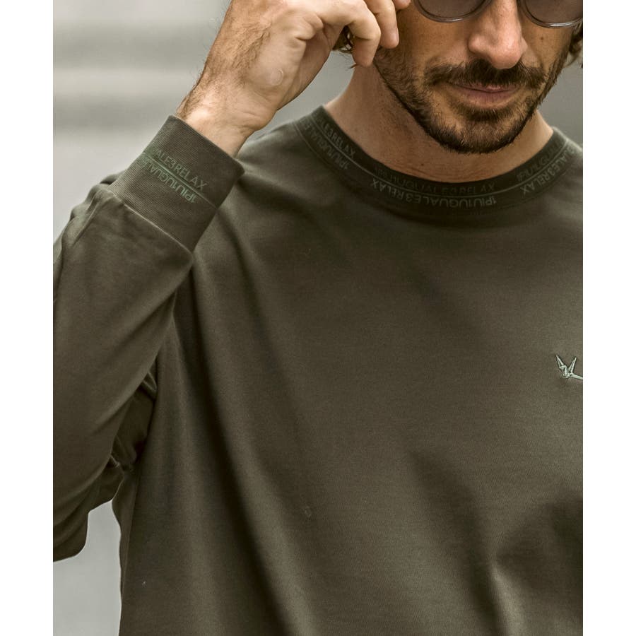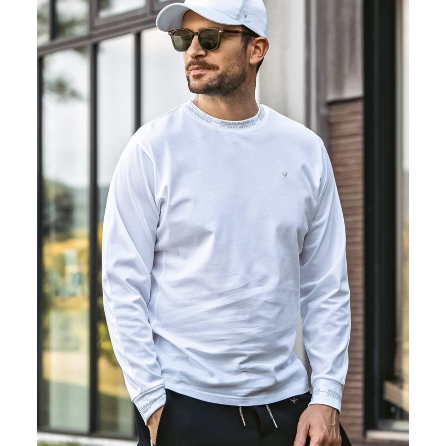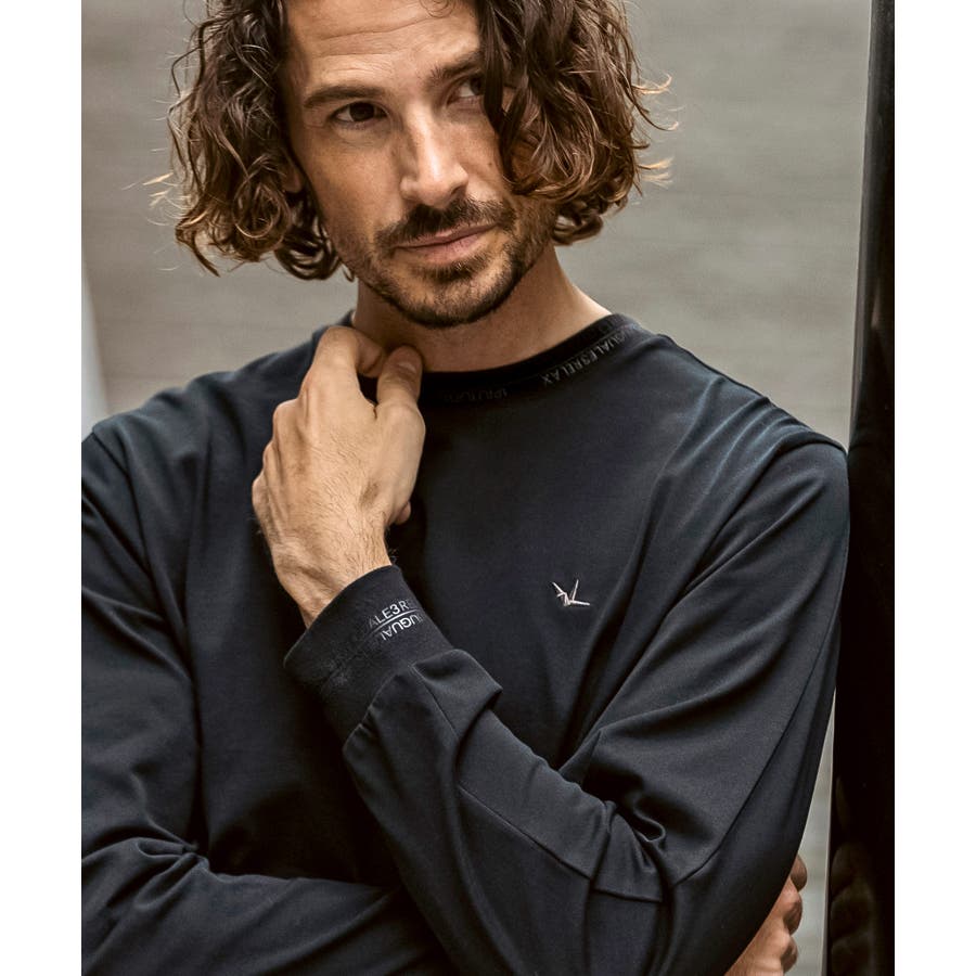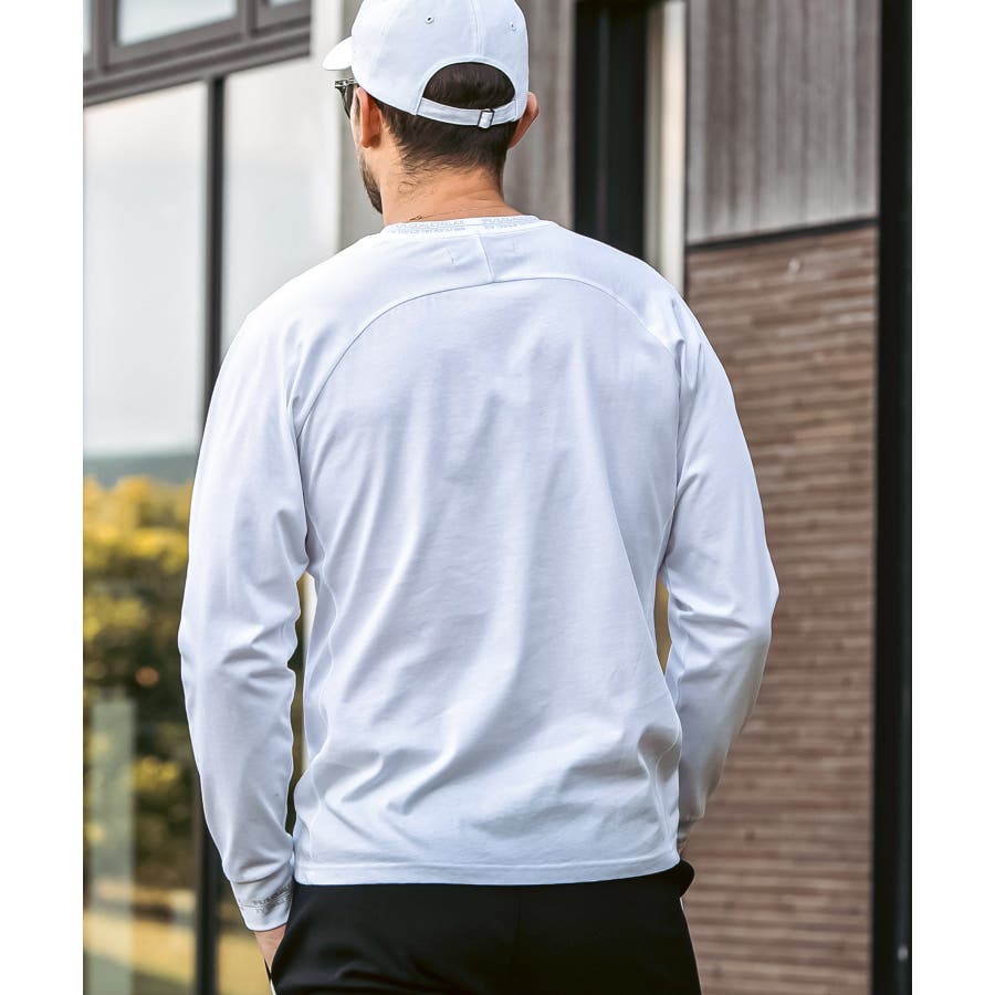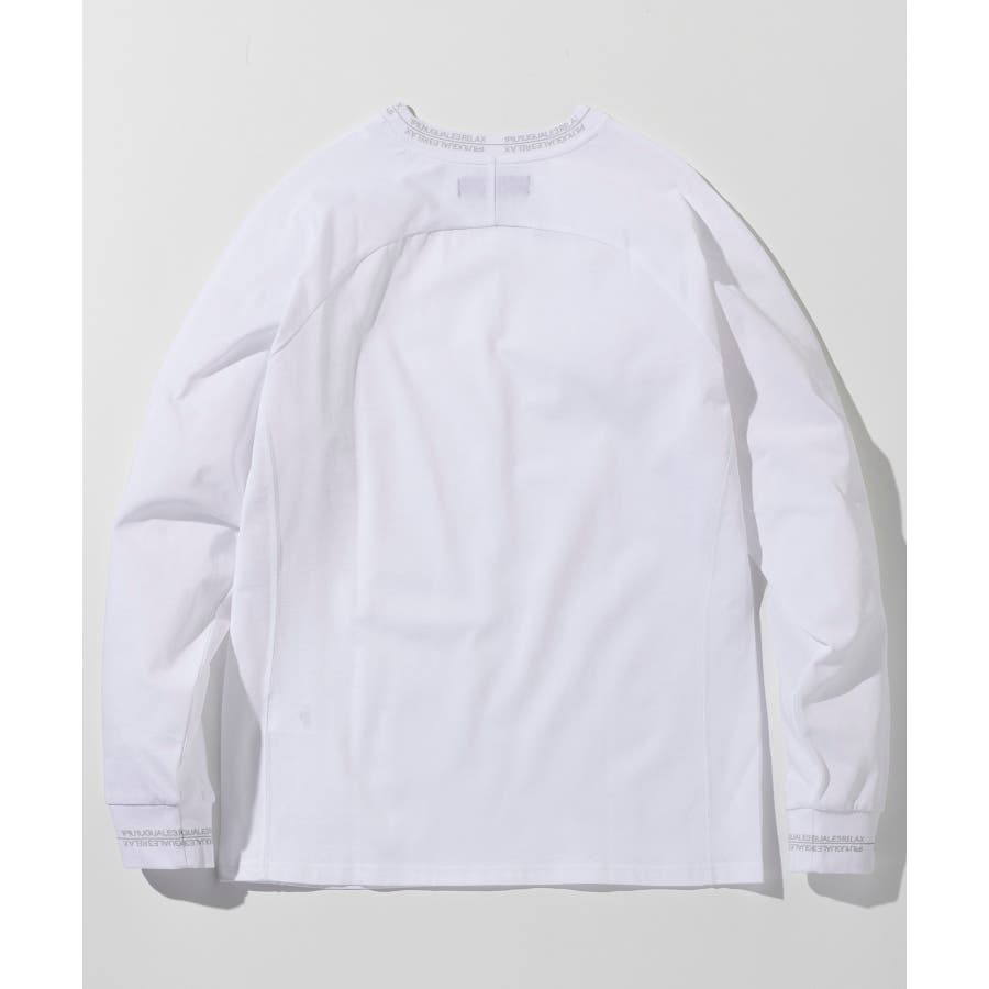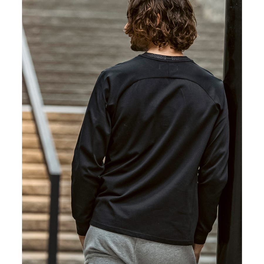 首元と袖口にブランドロゴを配置した長袖カットソー。