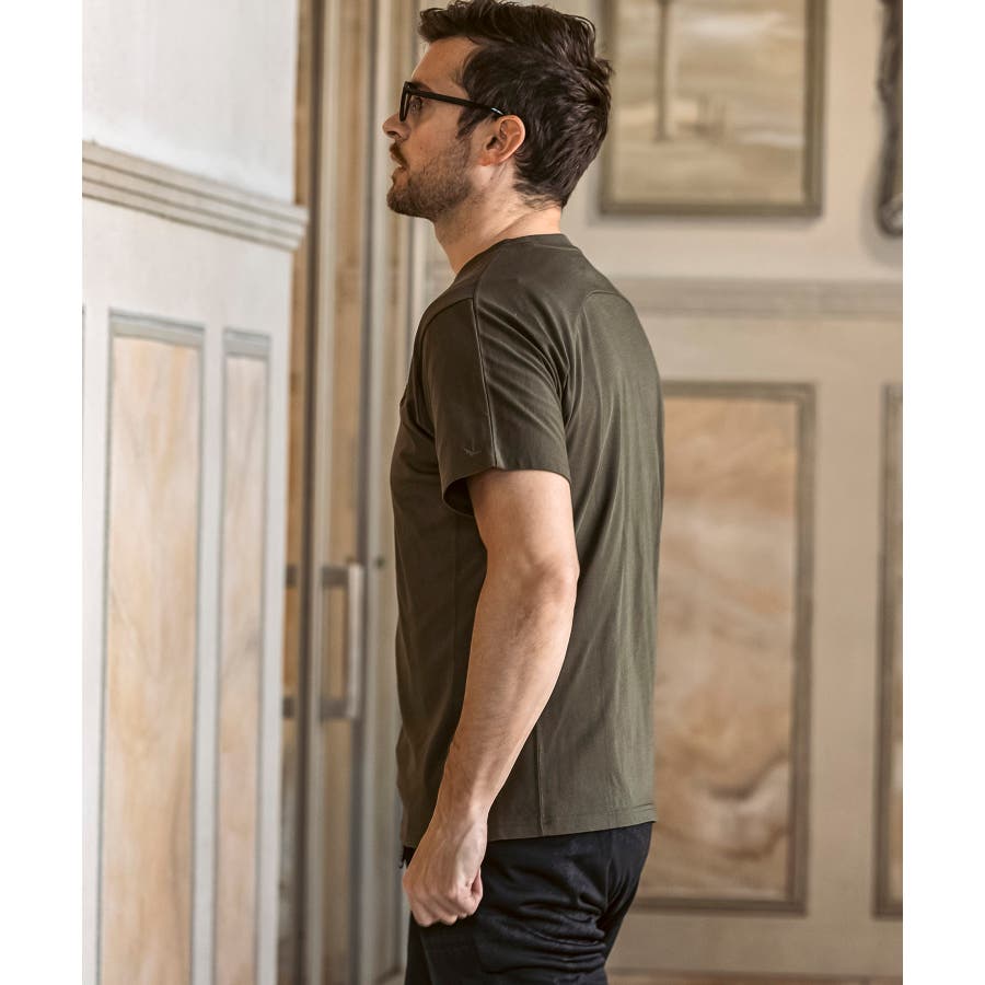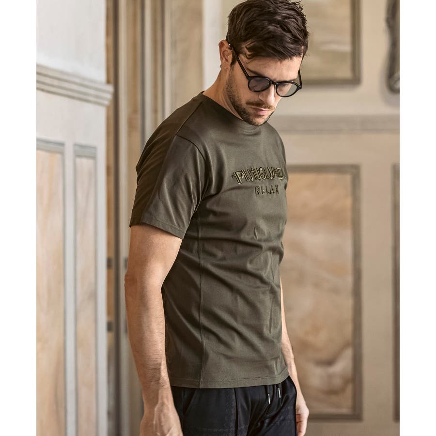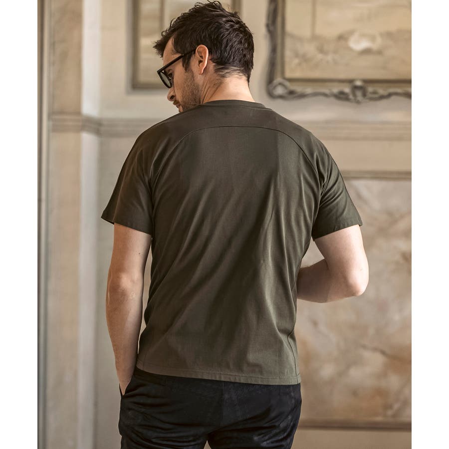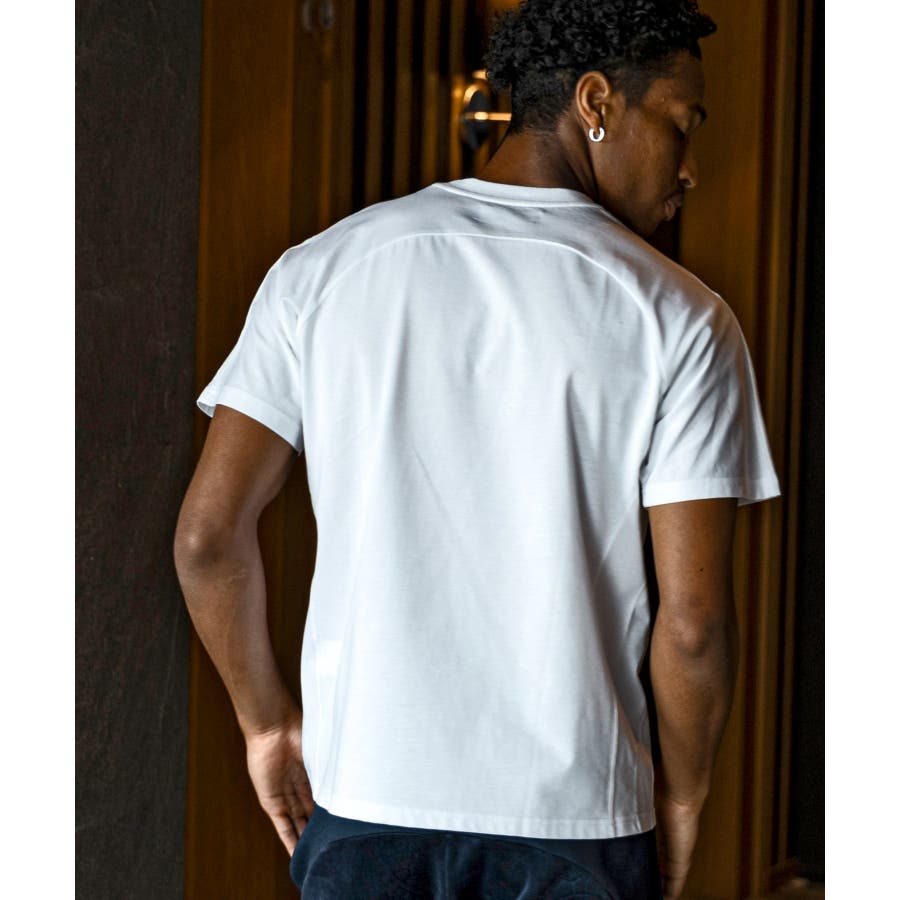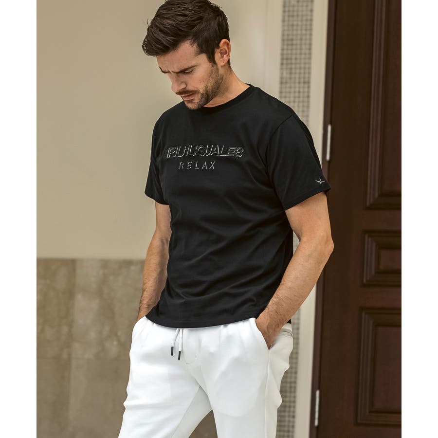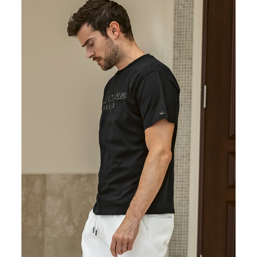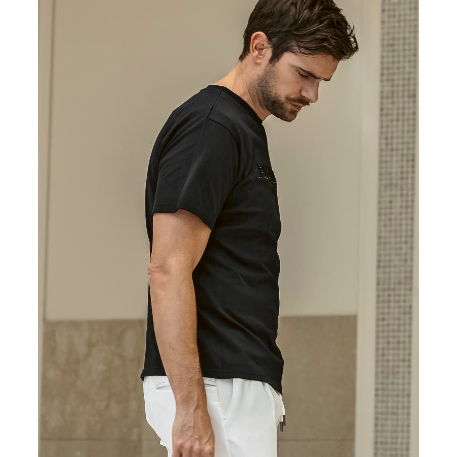 胸元に立体刺繍でブランドロゴを配置した半袖カットソー。