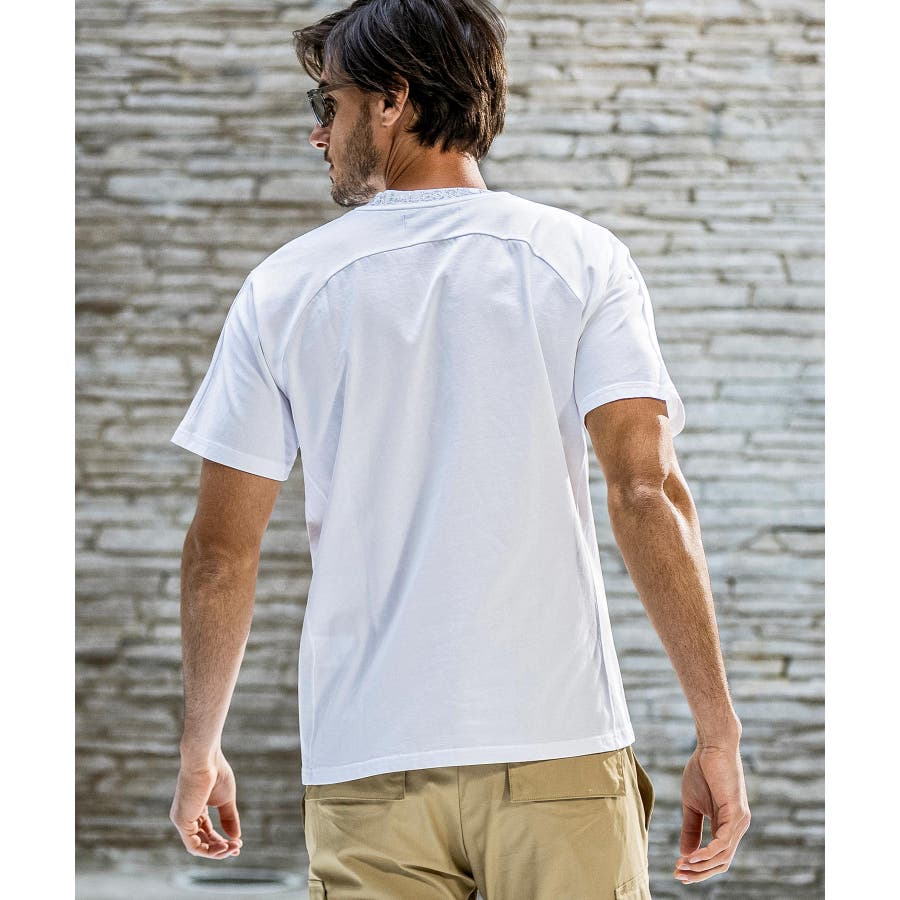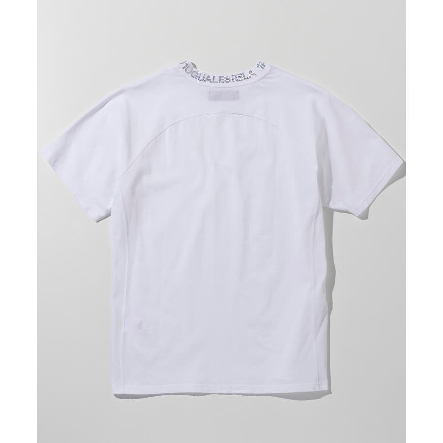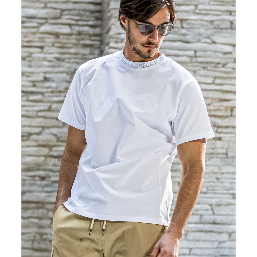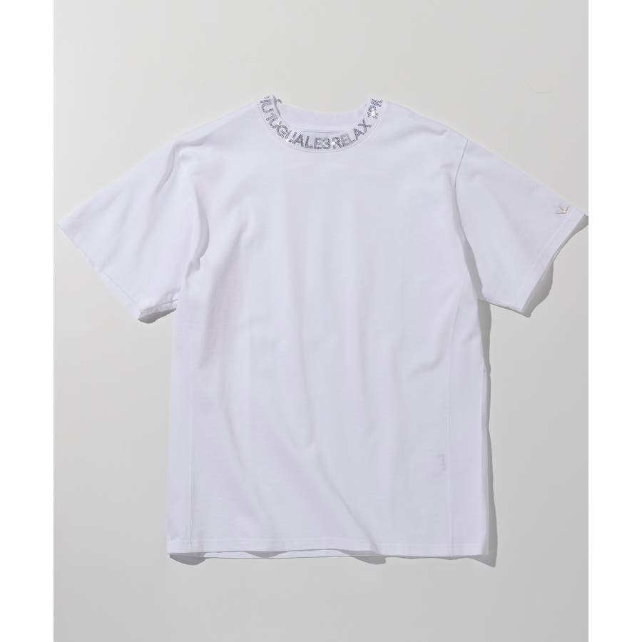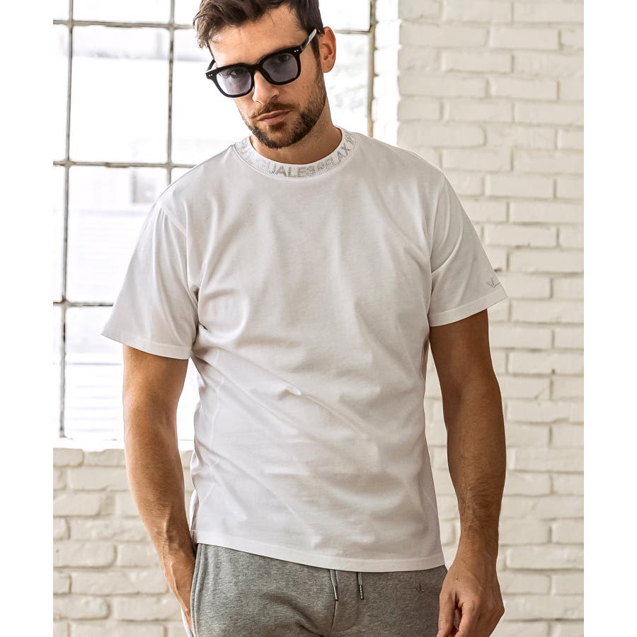 首元にブランドロゴをライン状に配置した半袖カットソー。
