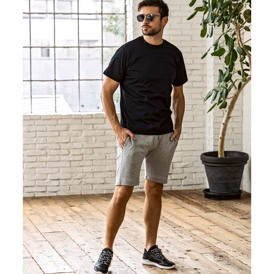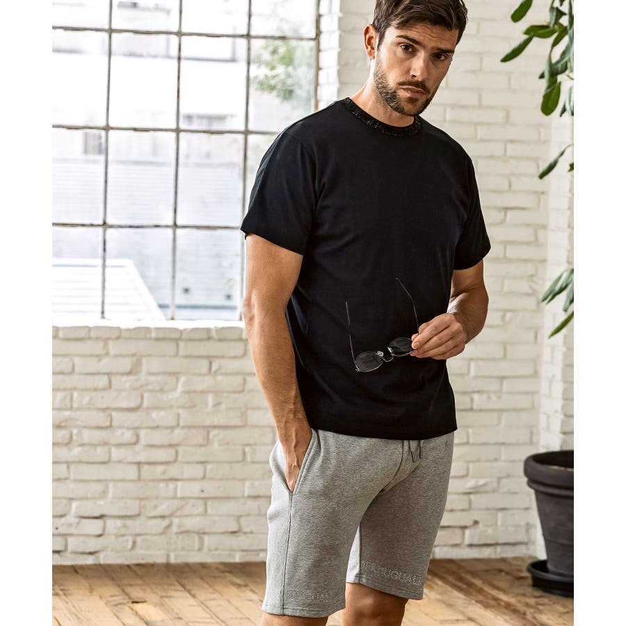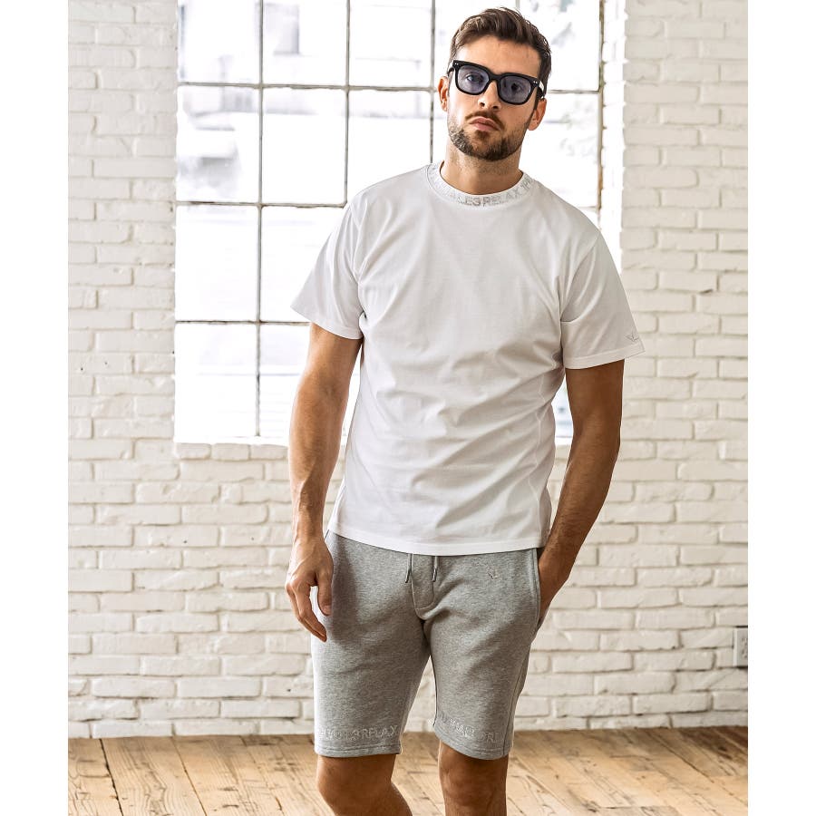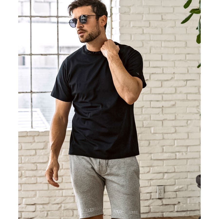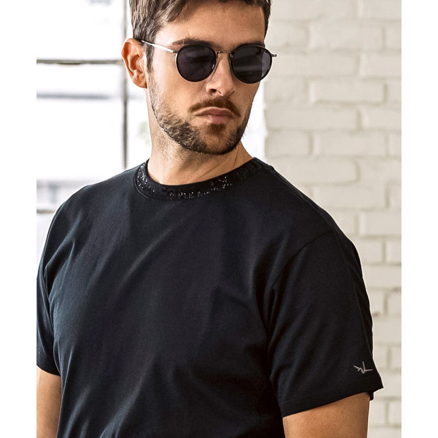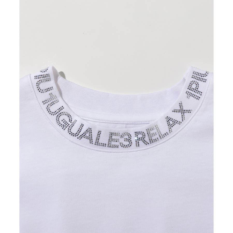 首元にブランドロゴをライン状に配置した半袖カットソー。