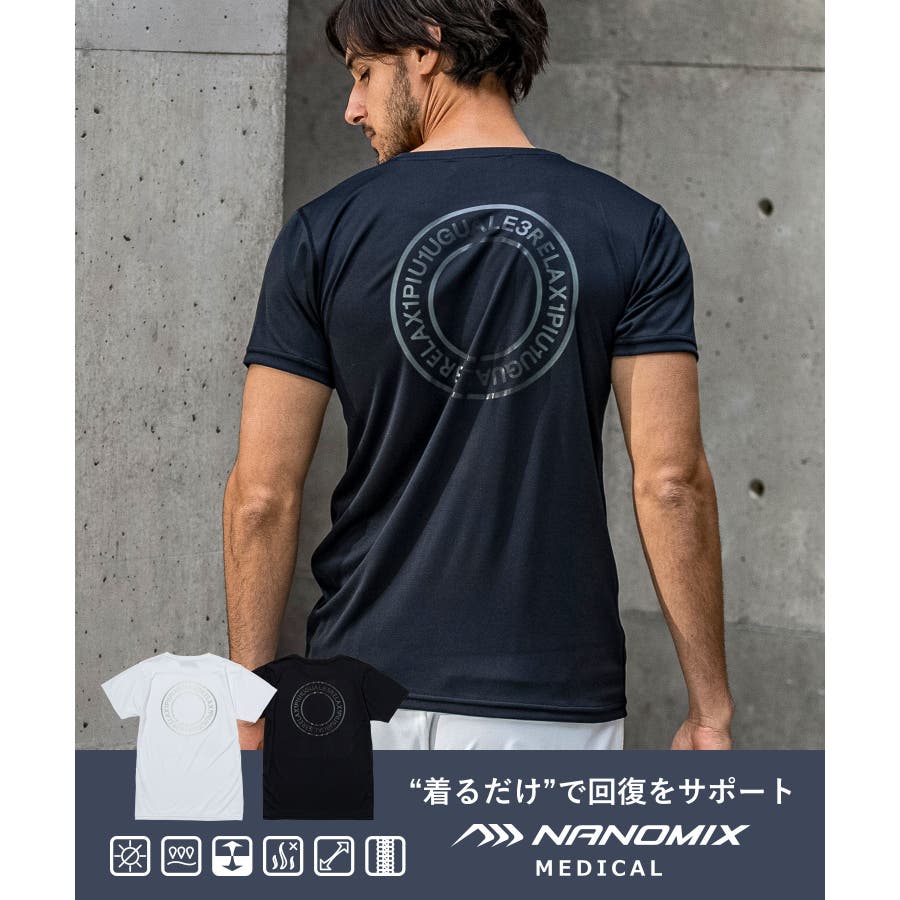 この二つの素材を生地に織り込む特殊技法により肌への浸透性を高め、二つの効果を同時に、かつ恒久的に与えることのできる画期的なメディカルウェア素材として開発された「NANOMIX(ナノミックス)」を採用。