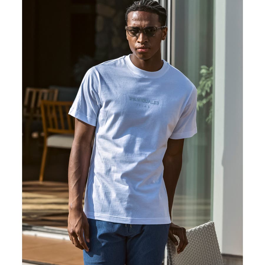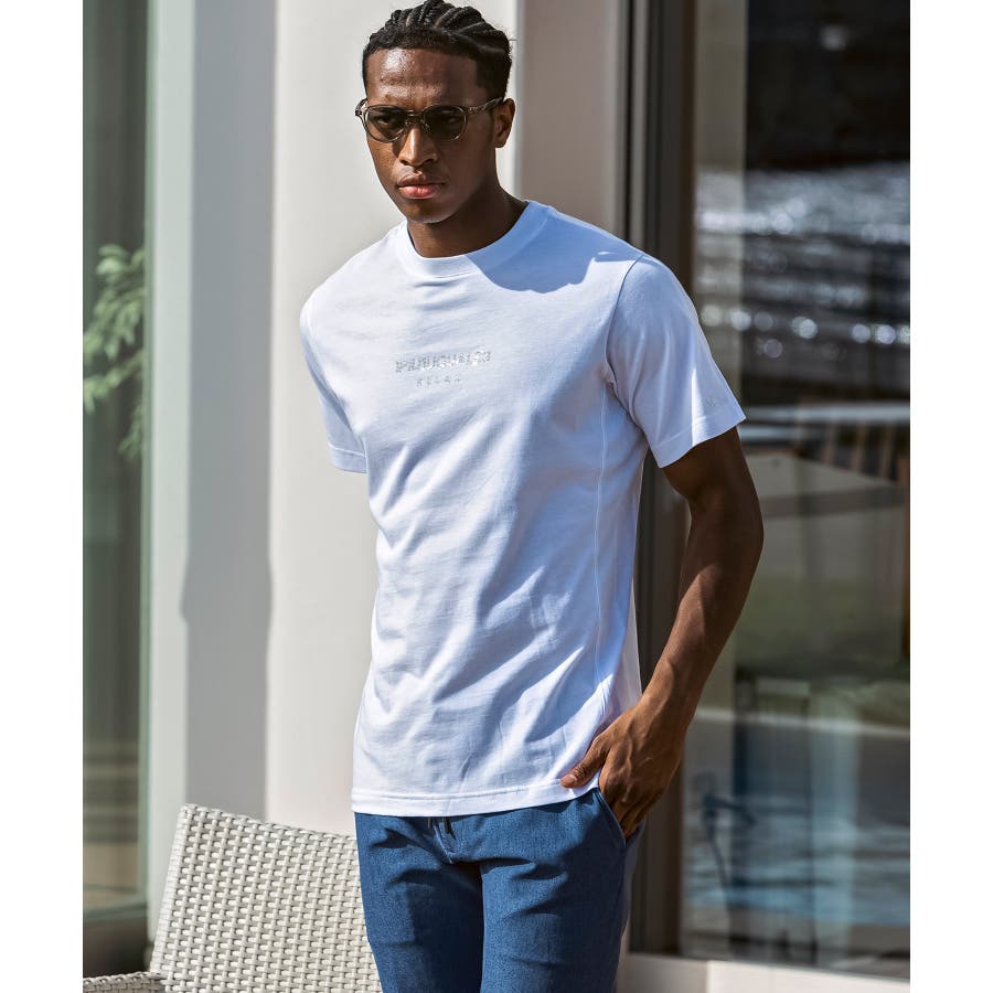 フロントにブランドロゴを配置したベーシックな表情の半袖カットソー。