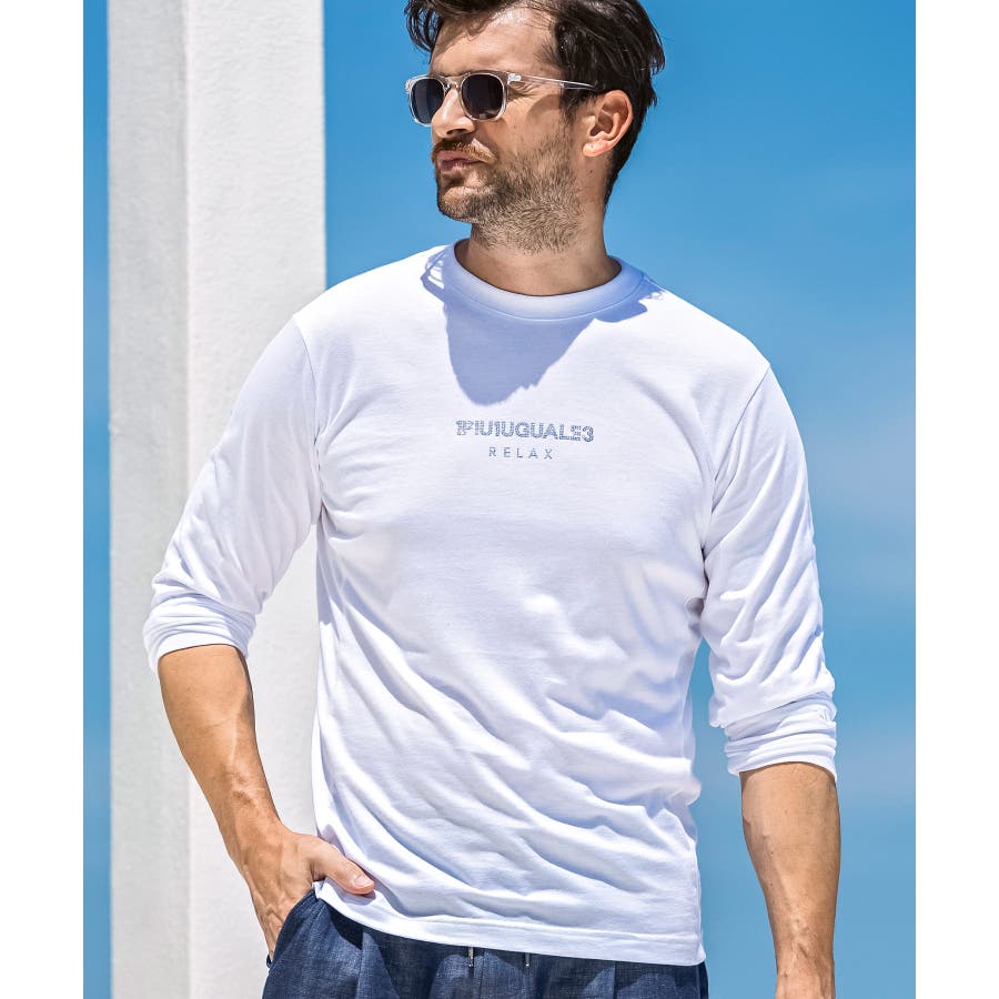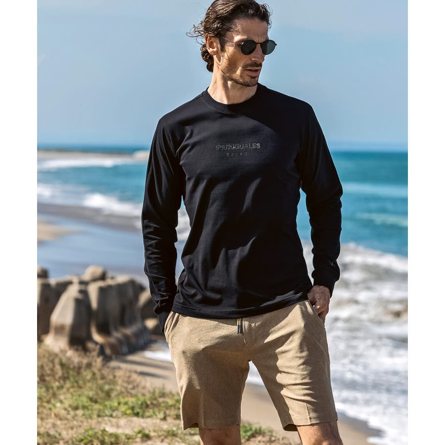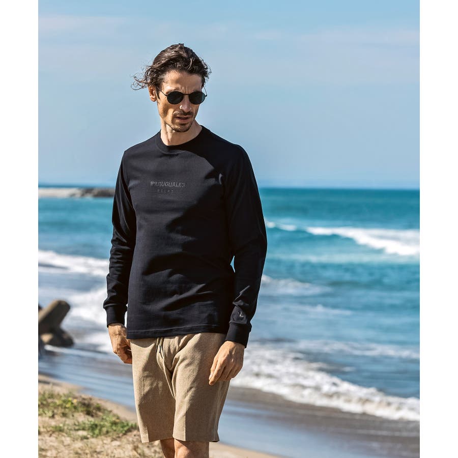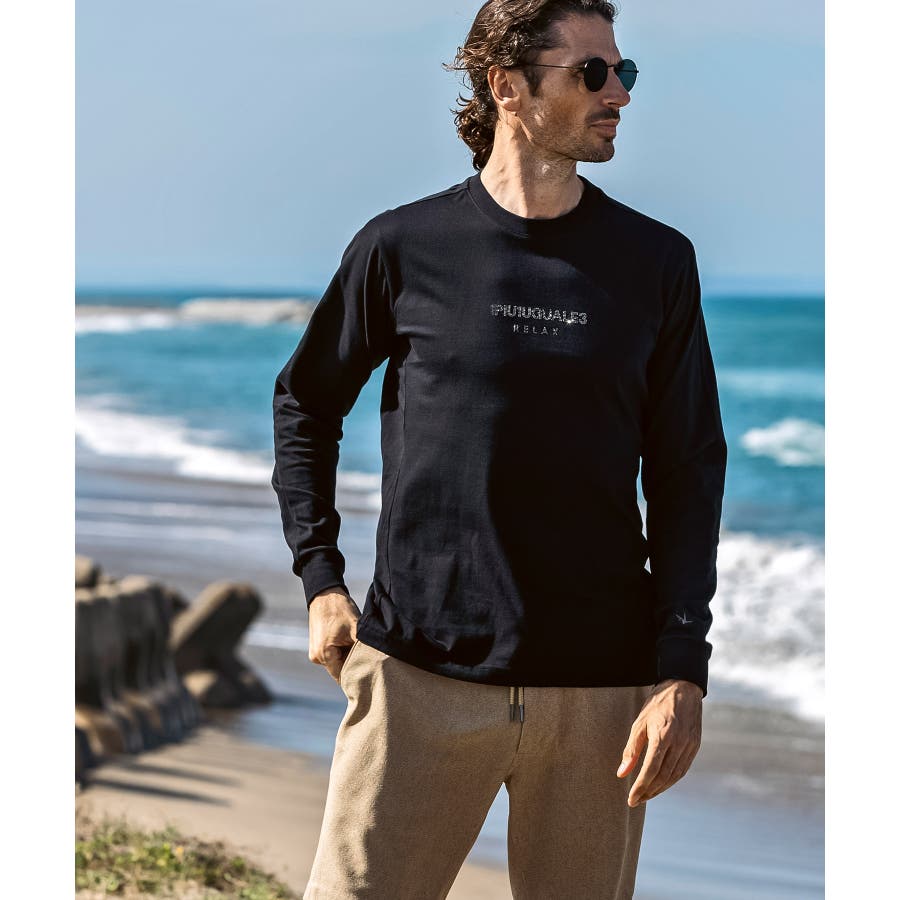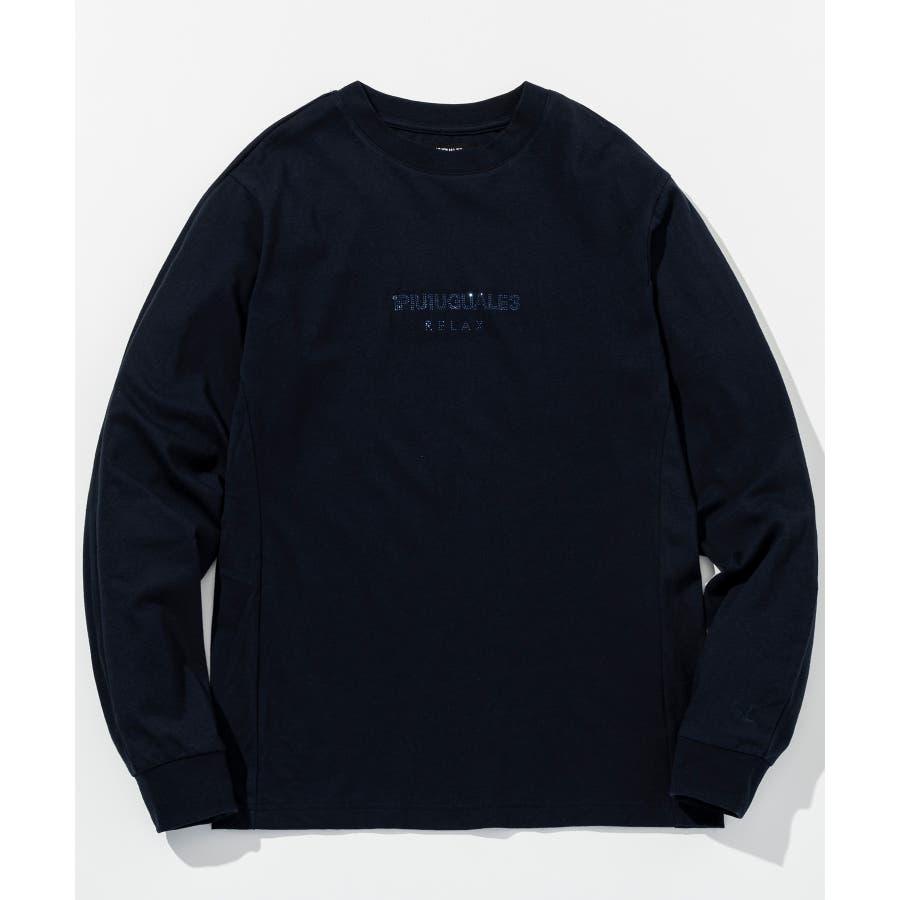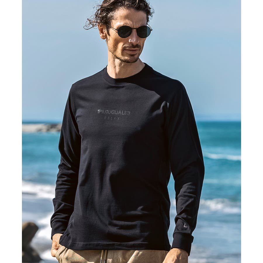 フロントにブランドロゴを配置したベーシックな表情の長袖カットソー。
