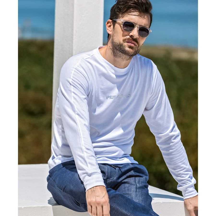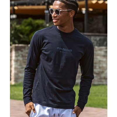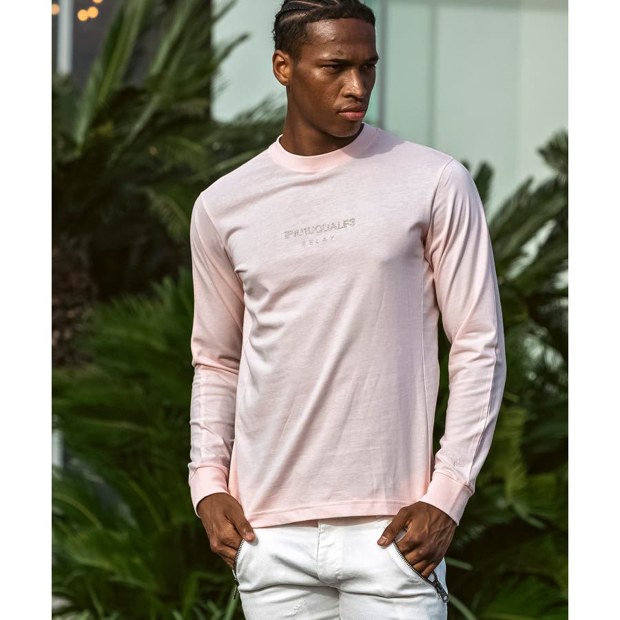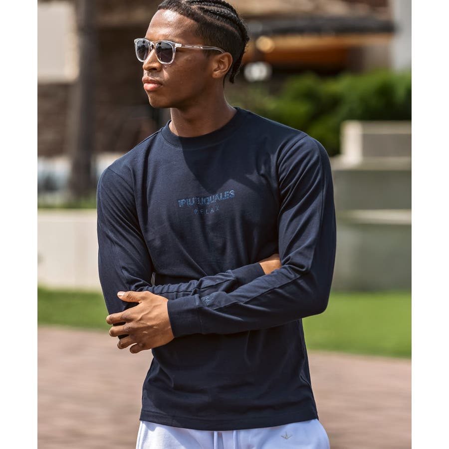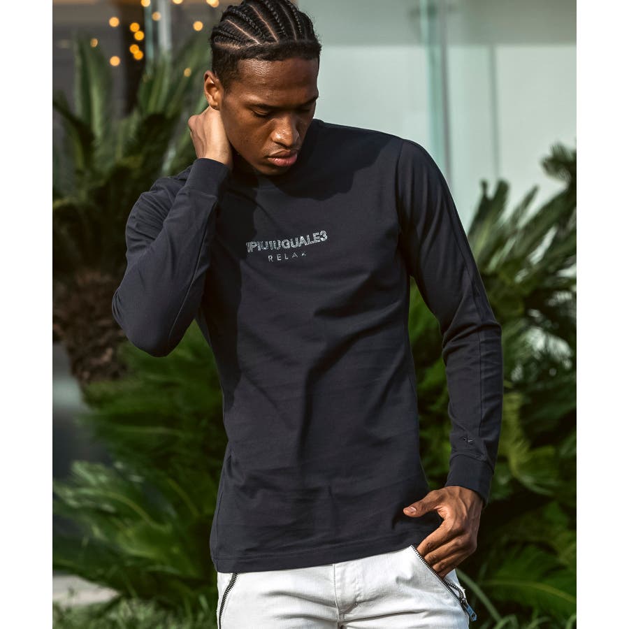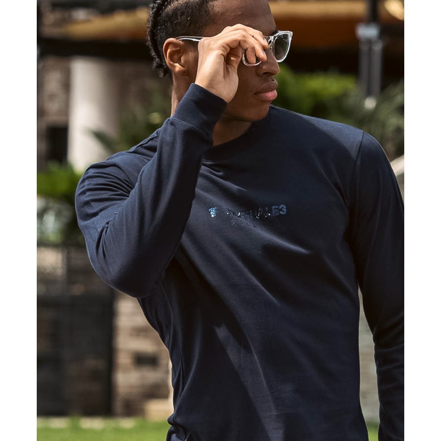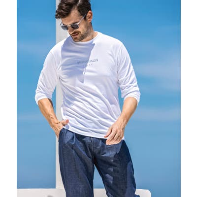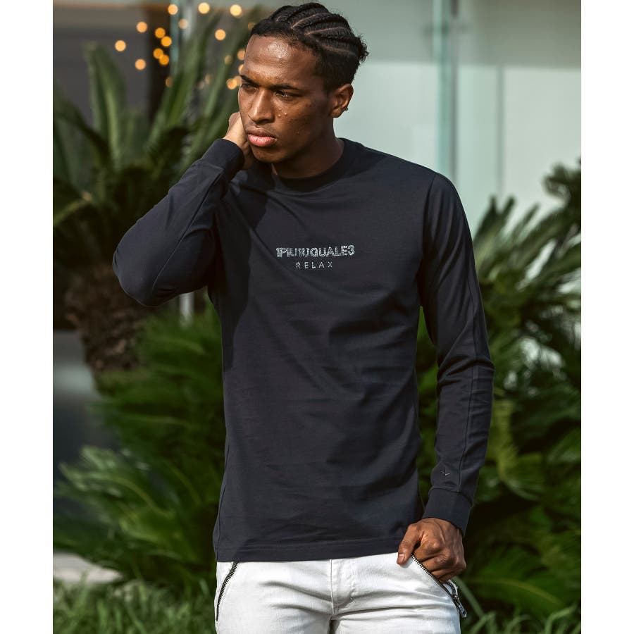 フロントにブランドロゴを配置したベーシックな表情の長袖カットソー。