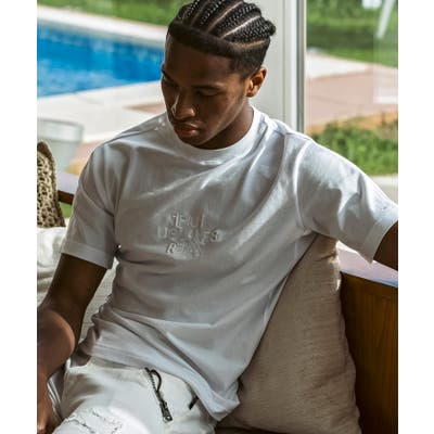 フロントにブランドロゴを配置したベーシックな表情の半袖カットソー。
