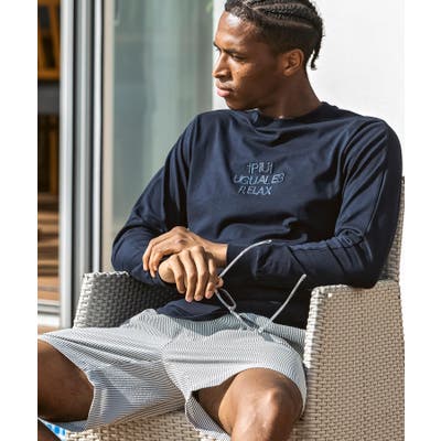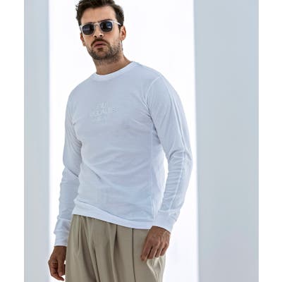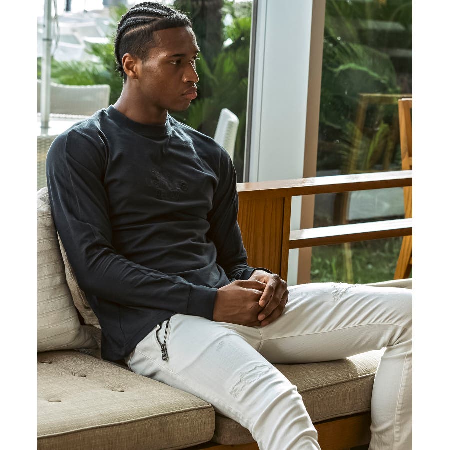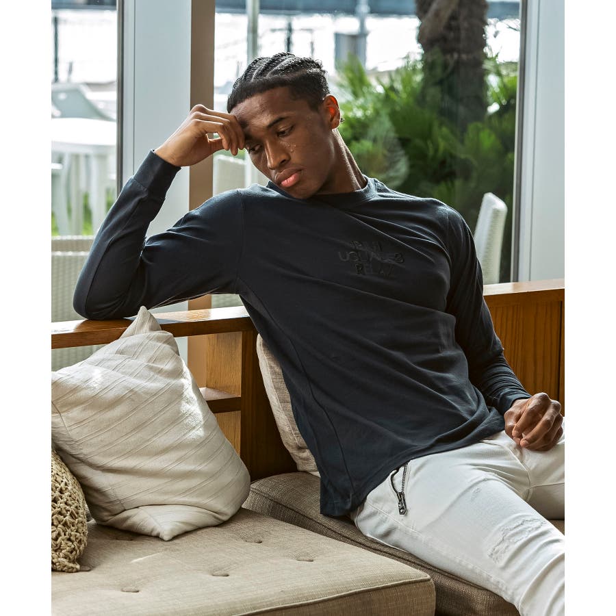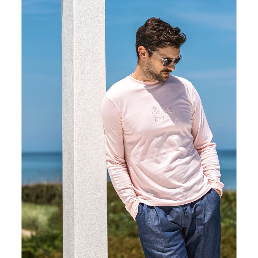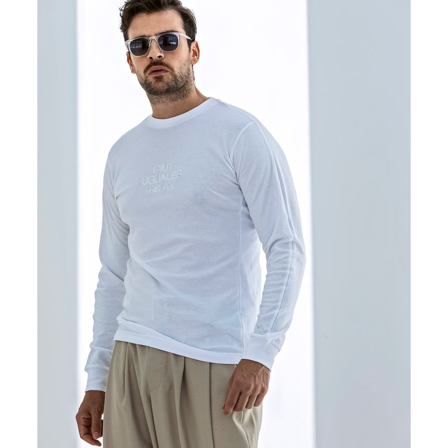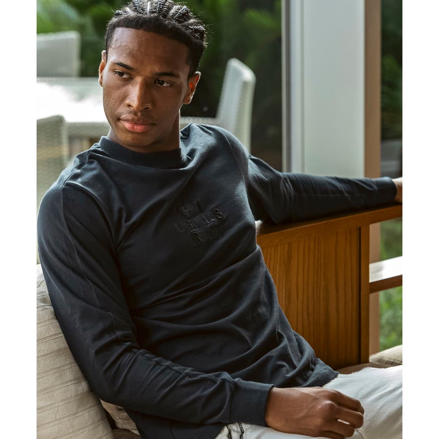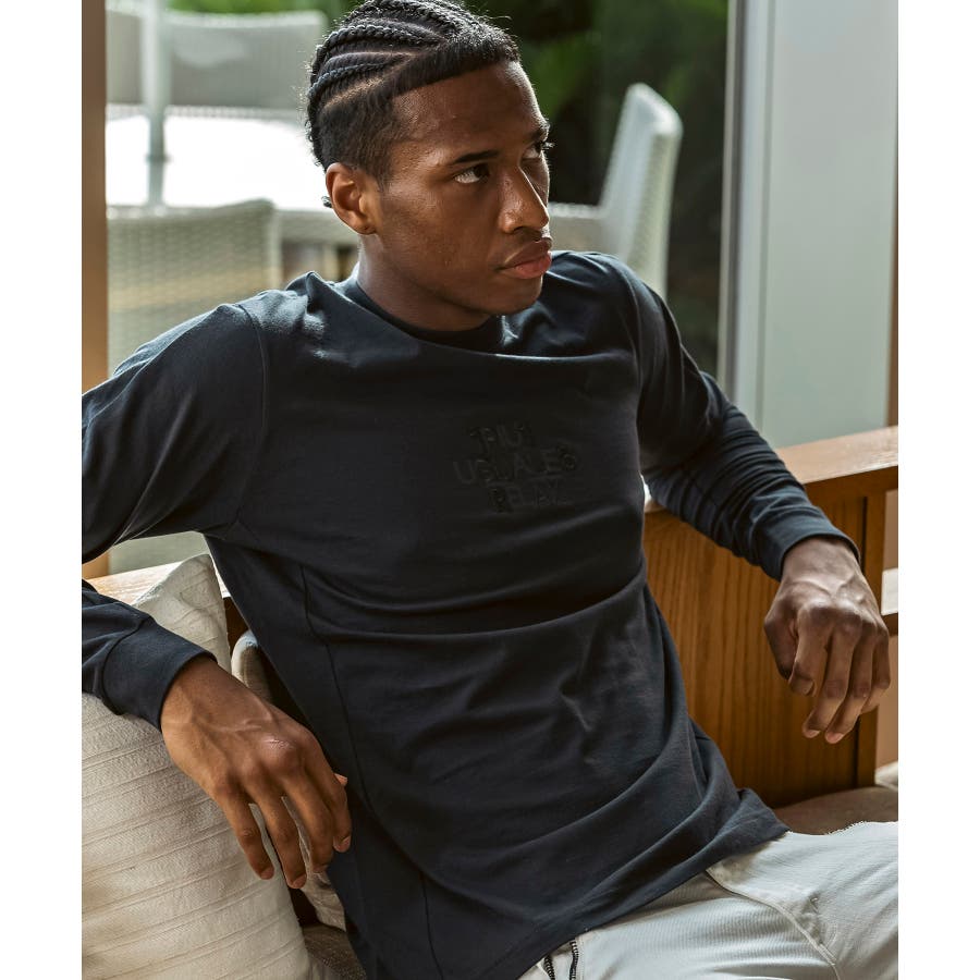 フロントにブランドロゴを配置したベーシックな表情の長袖カットソー。